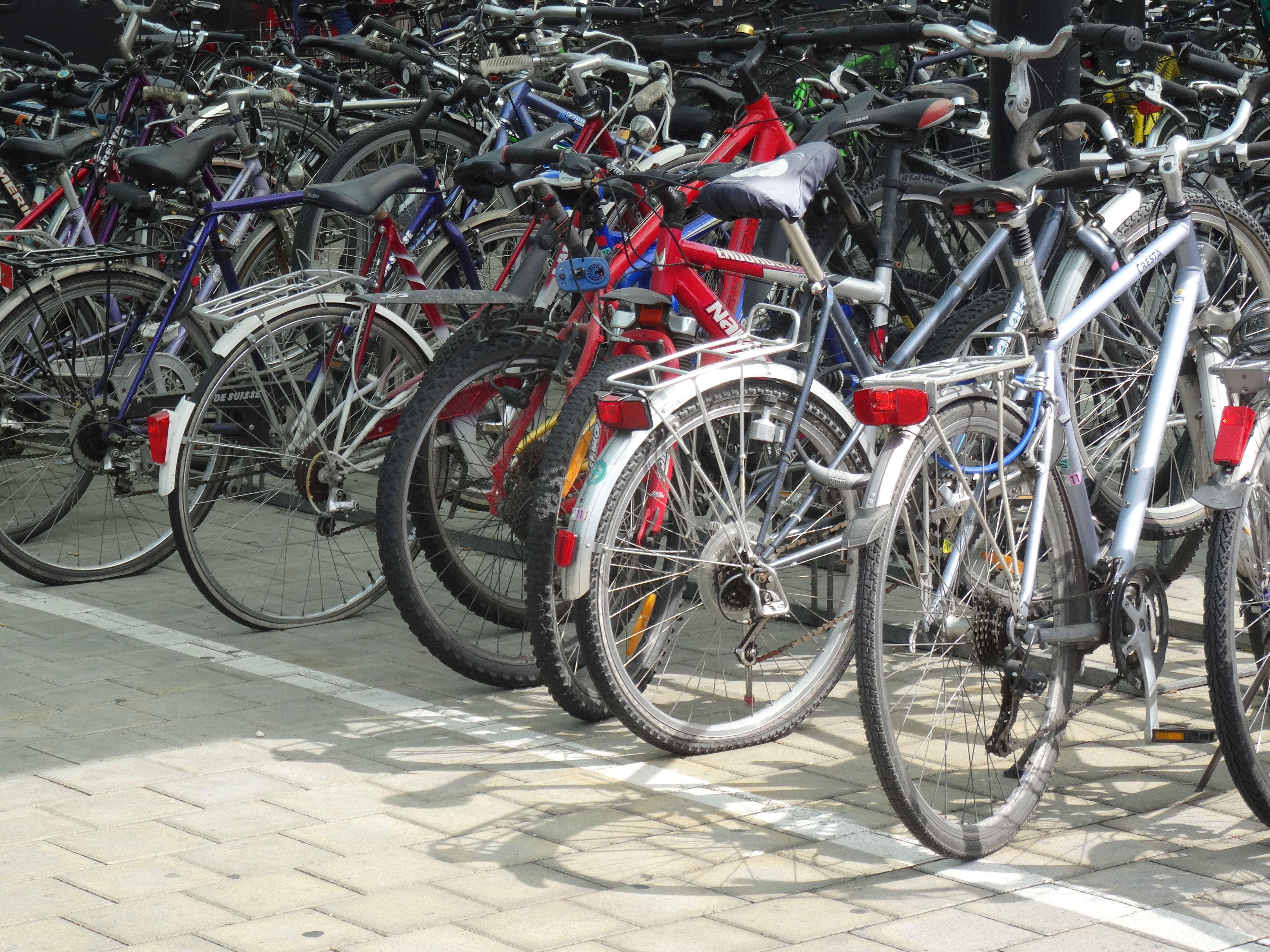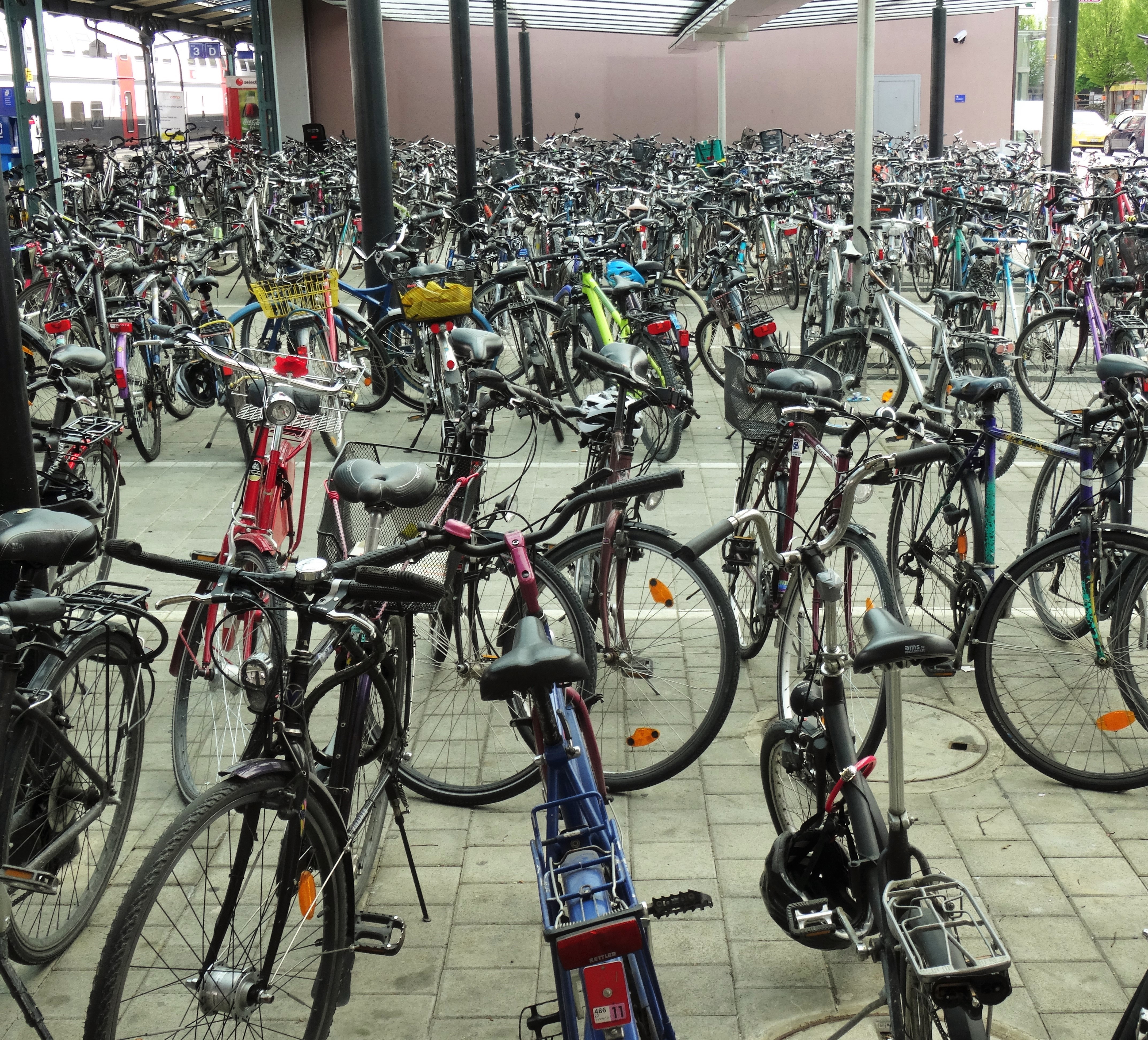 Da stehen sie alle, ob mit oder ohne Luft im Reifen. Besser ist wenn man sein Rad abschliesst, sonst kann es durchaus passieren, dass man den Heimweg zu Fuss antreten muss.