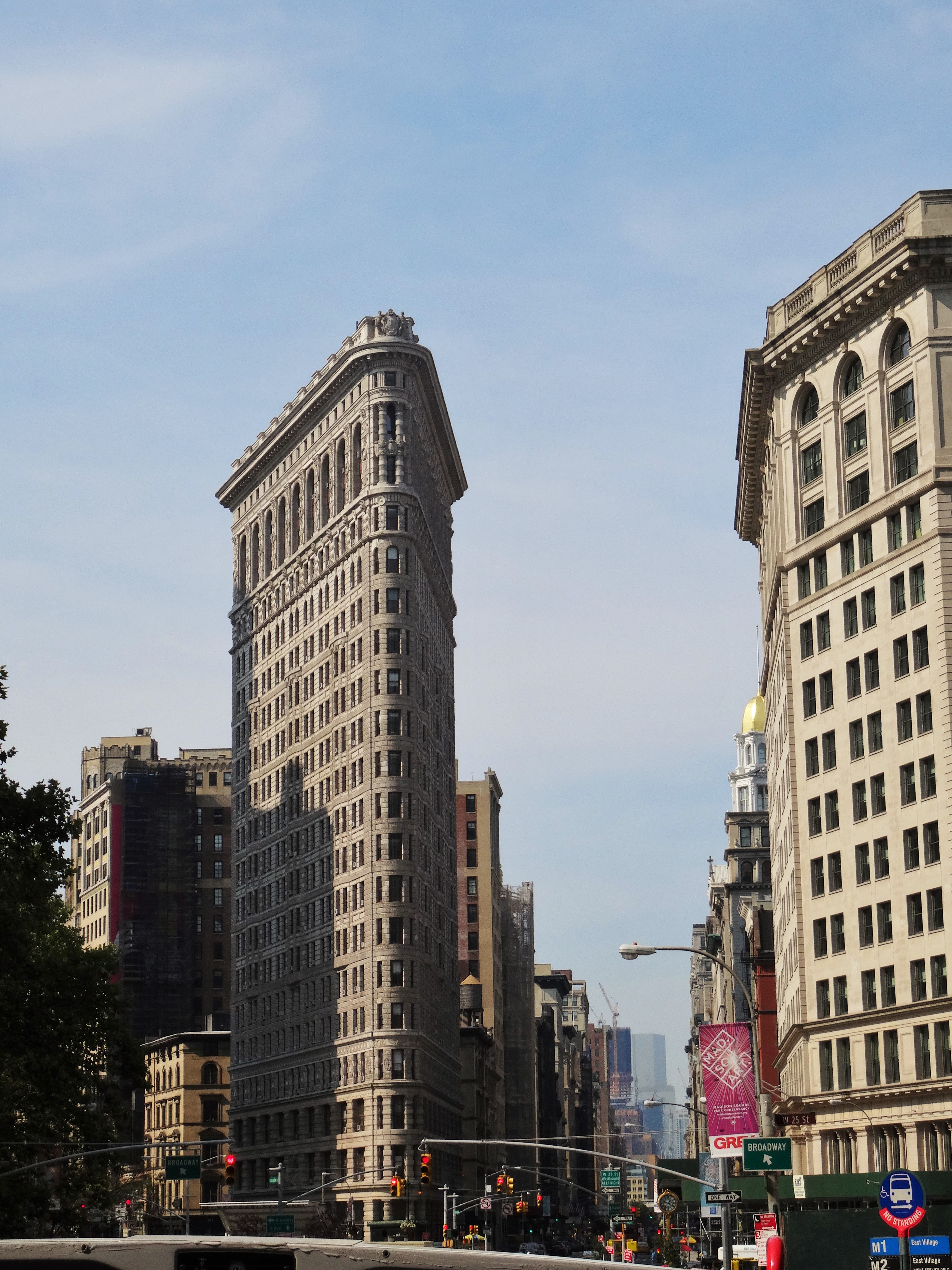 Auf Reisen entdecke ich immer gerne die Architektur anderer Länder und Epochen. Ein ganz spezielles Gebäude ist das Flatiron Building, ein Wahrzeichen in New York. Im Spitz ist es gerade 2.50 m breit und trennt die berühmten Strassen Broadway und 5th Ave.