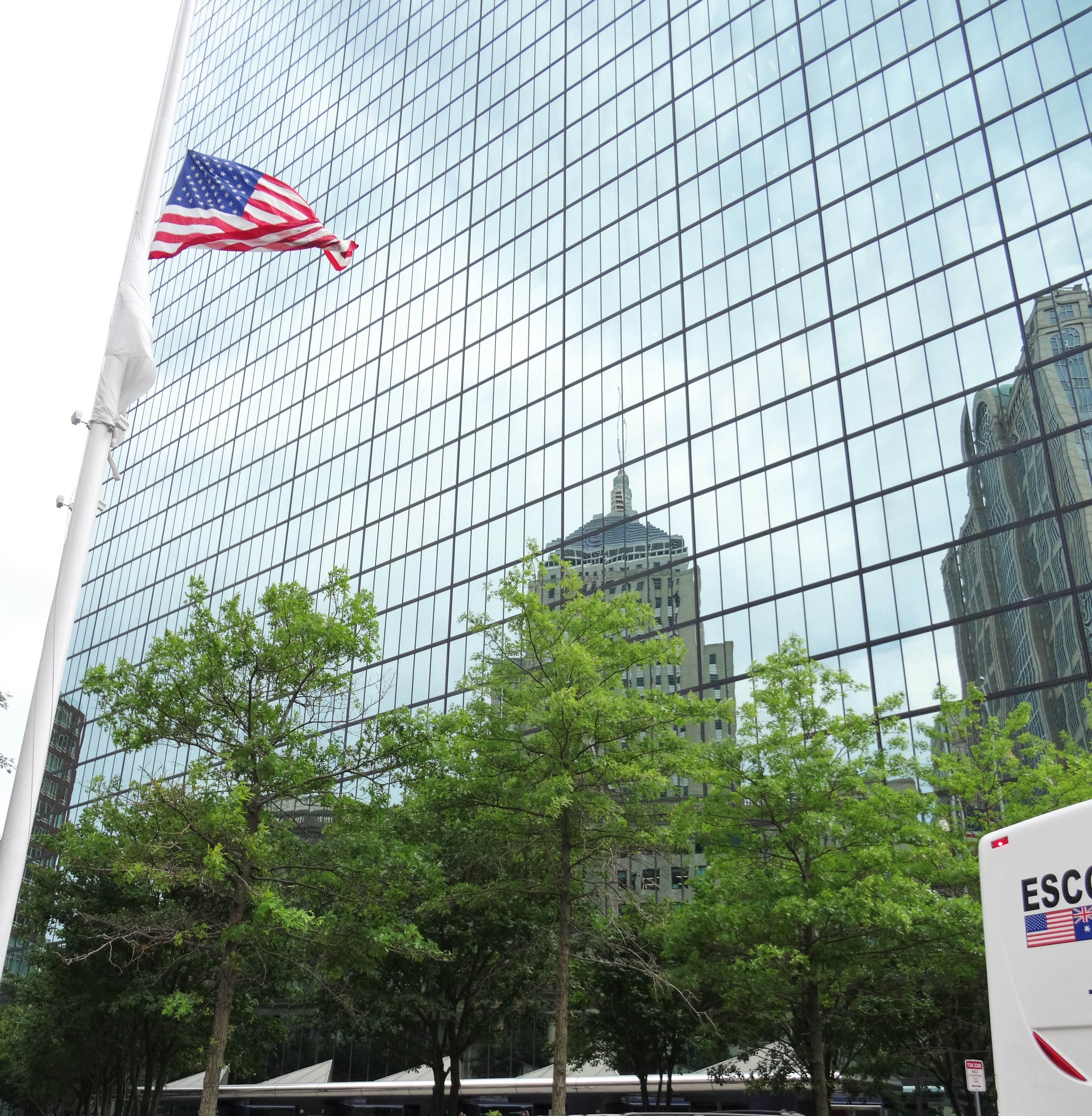 In Amerikas Innenstädte gibt es einige Häuser mit Glasfassaden. Wenn sich die umliegenden Gebäude im Glas spiegeln, sieht das ganz toll aus.