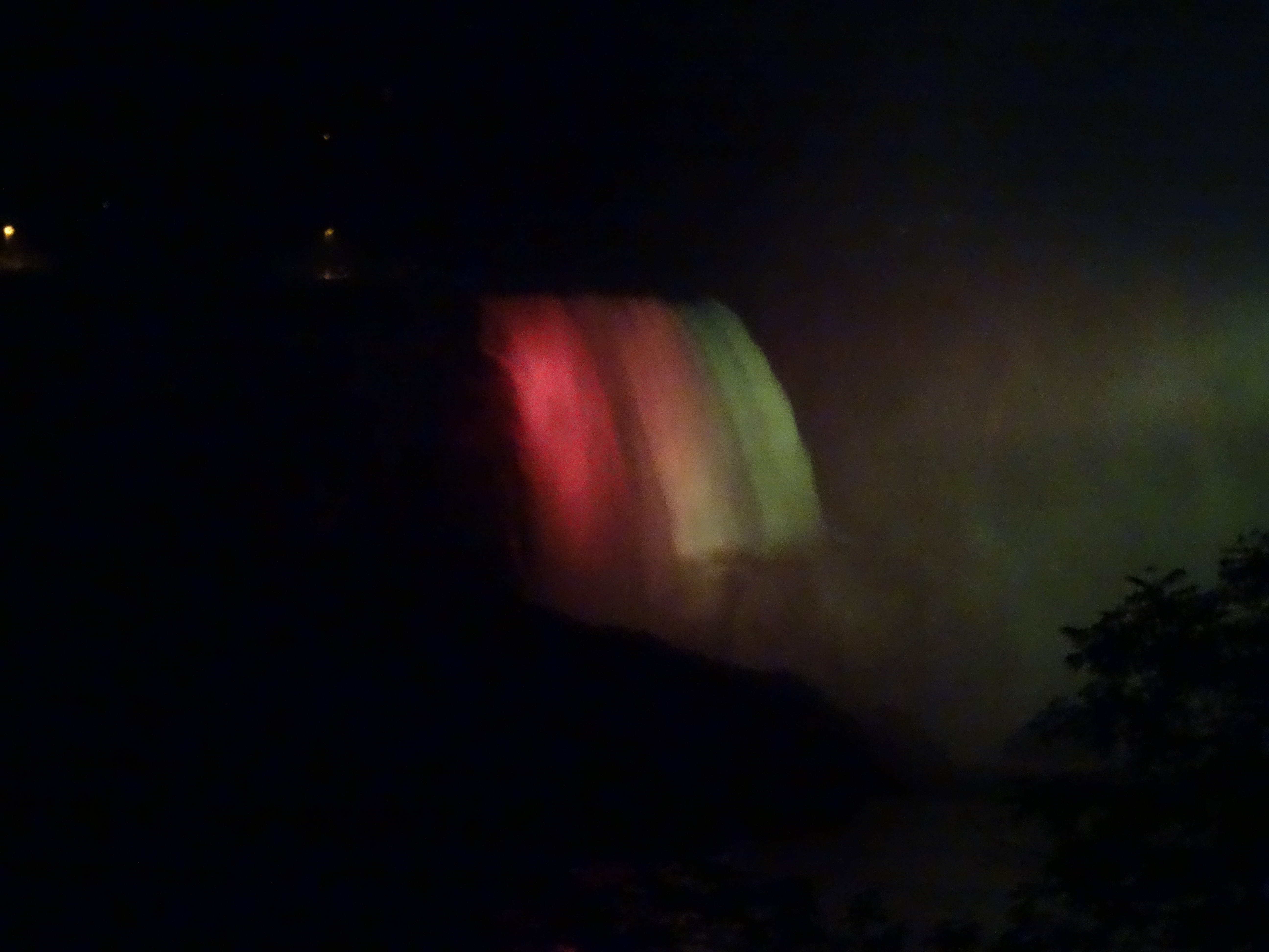 Wenn es dunkel ist, werden die Fälle mit verschiedenen Farben beleuchtet. Was nochmals ein ganz anderes Spektakel ist.