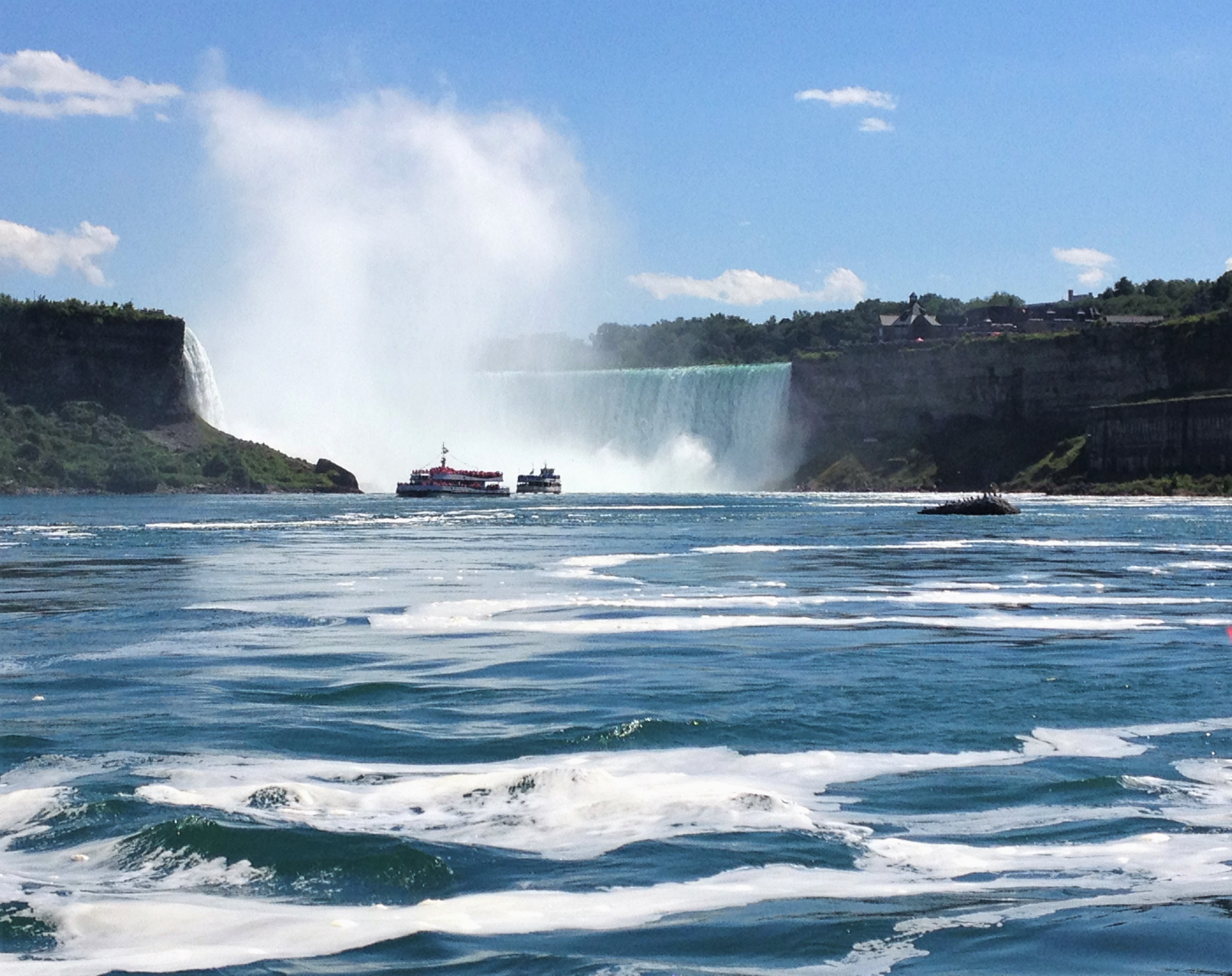 Auf unserer Reise diesen Sommer besuchten wir auf Wunsch meines Mannes die Niagarafälle. Im Vorfeld stellt man sich vor, wie es aussehen könnte, aber vor Ort ist es noch viel eindrücklicher und gigantischer als man sich das je hätte vorstellen können. Der Kanadische Hufeisenfall, durch den die Grenze zwischen der USA und Kanada verläuft, hat eine Kantenbreite von 792 m und eine Fallhöhe über 50 Meter. Quelle