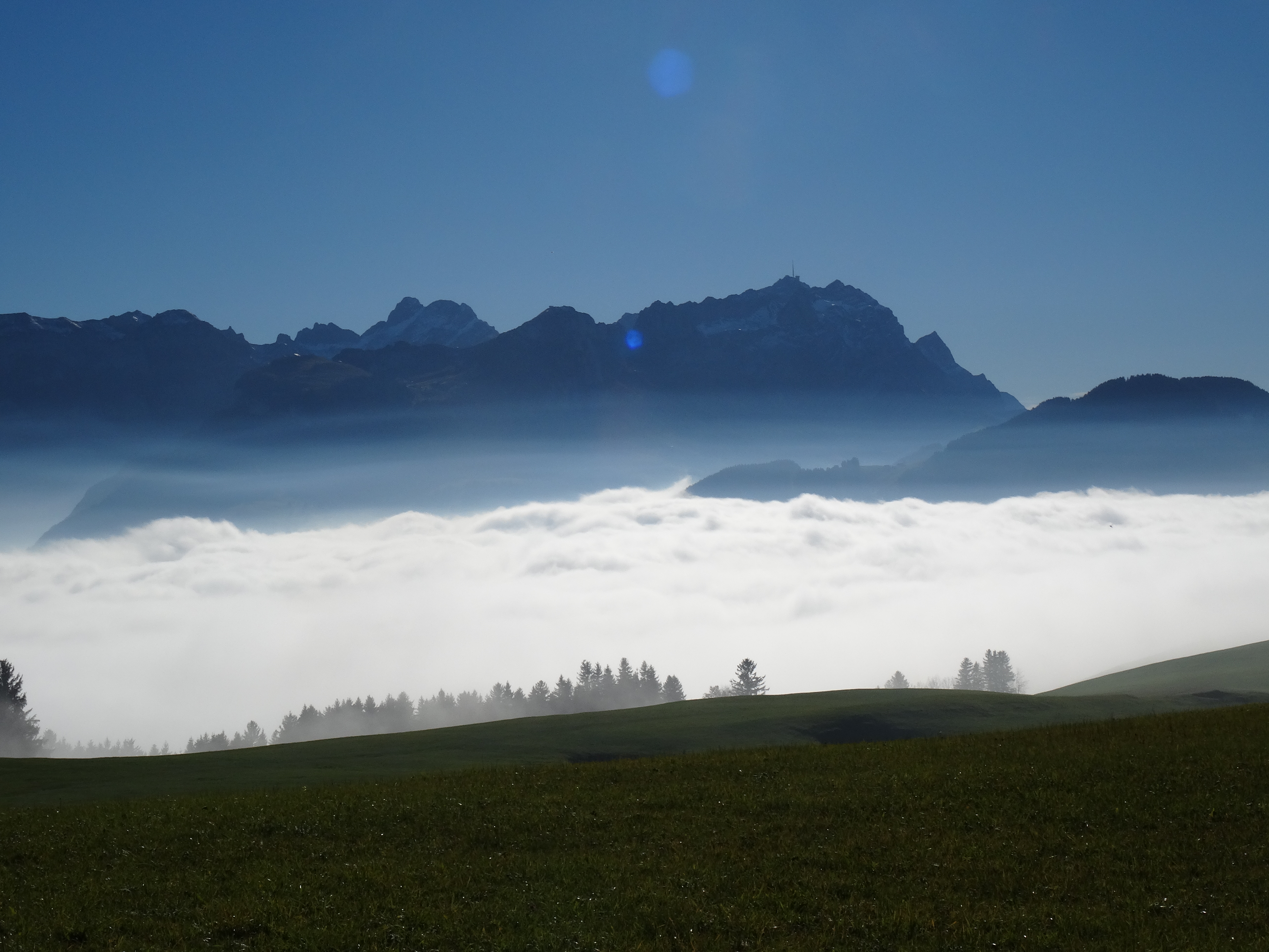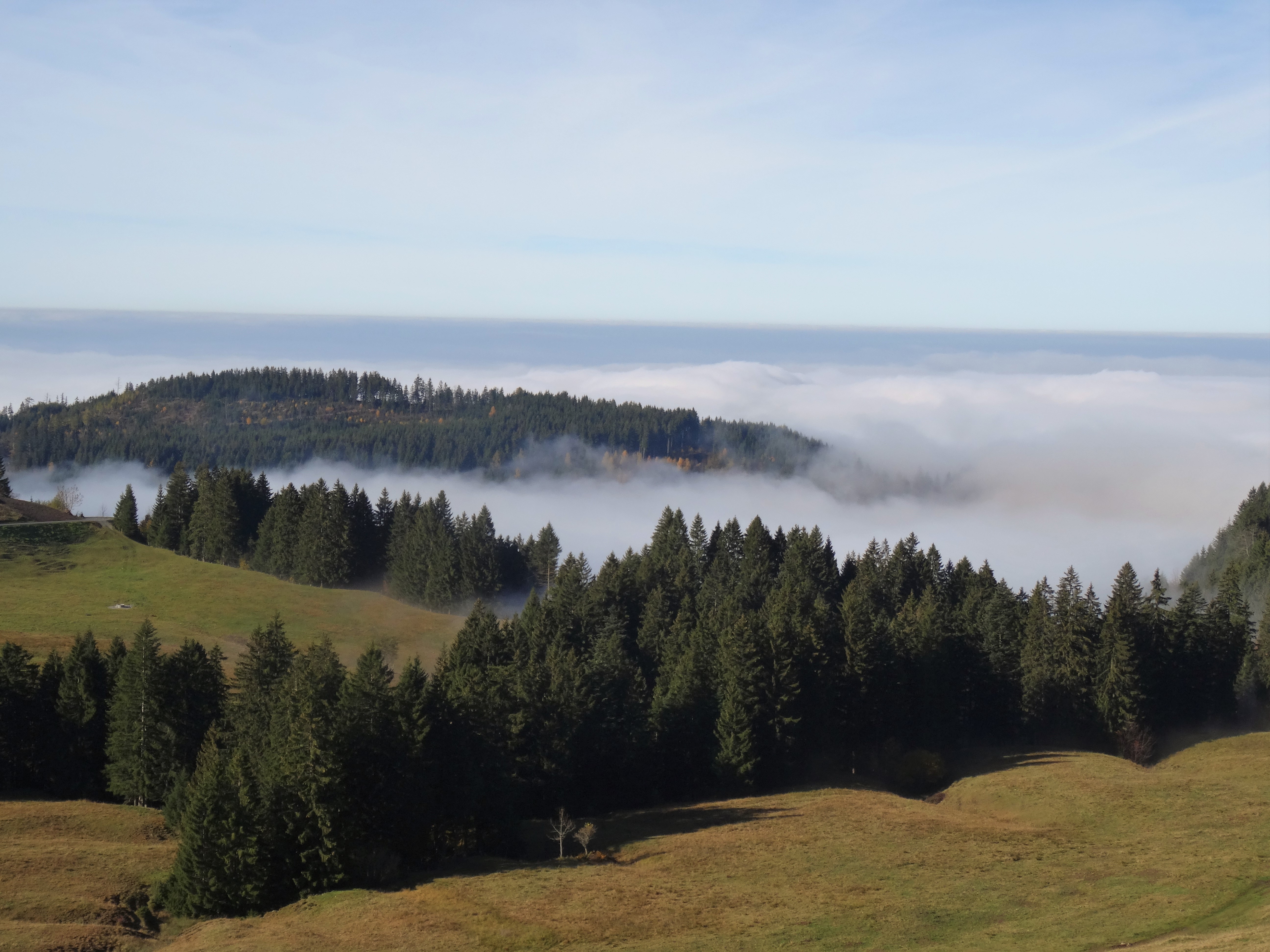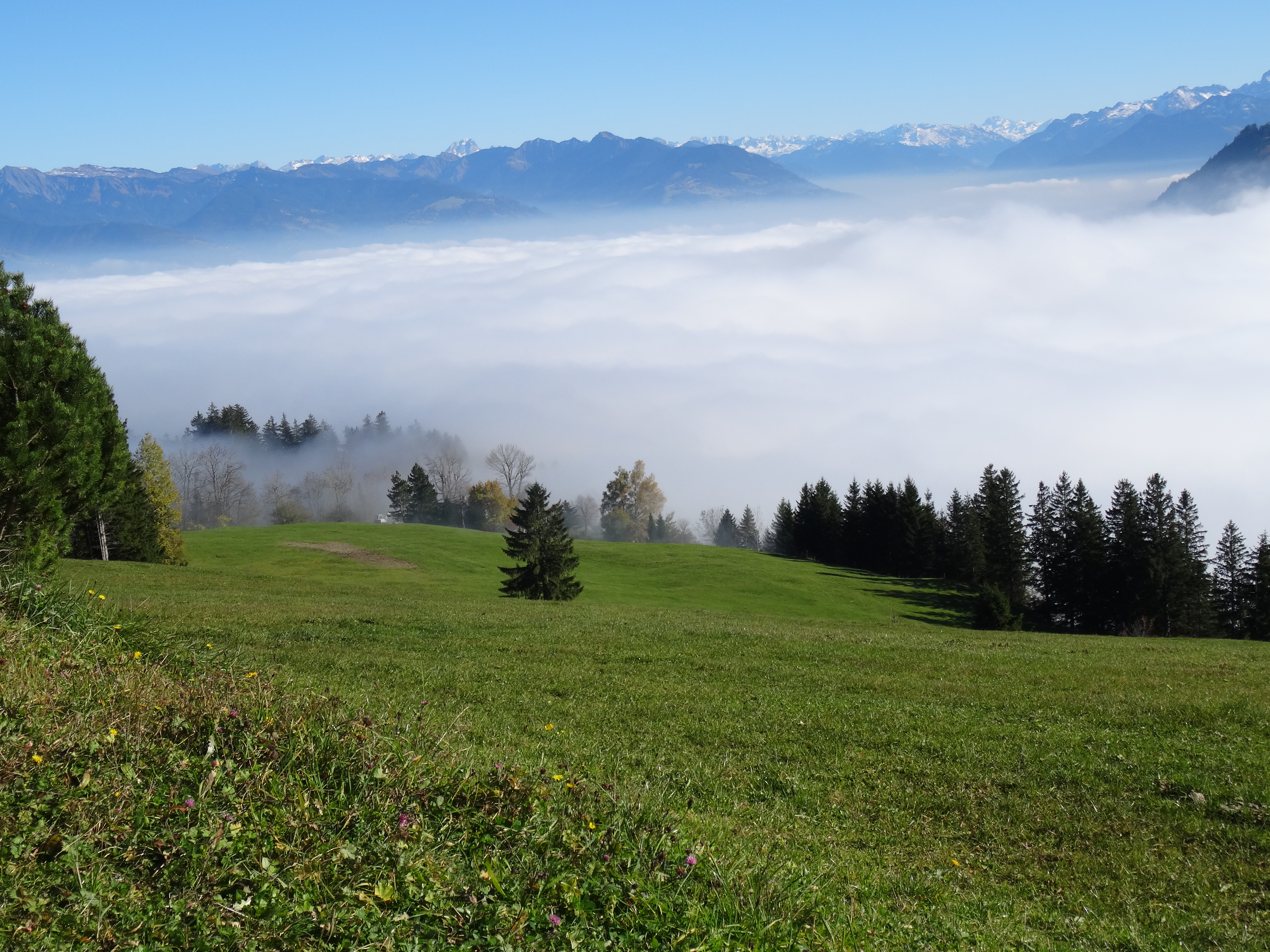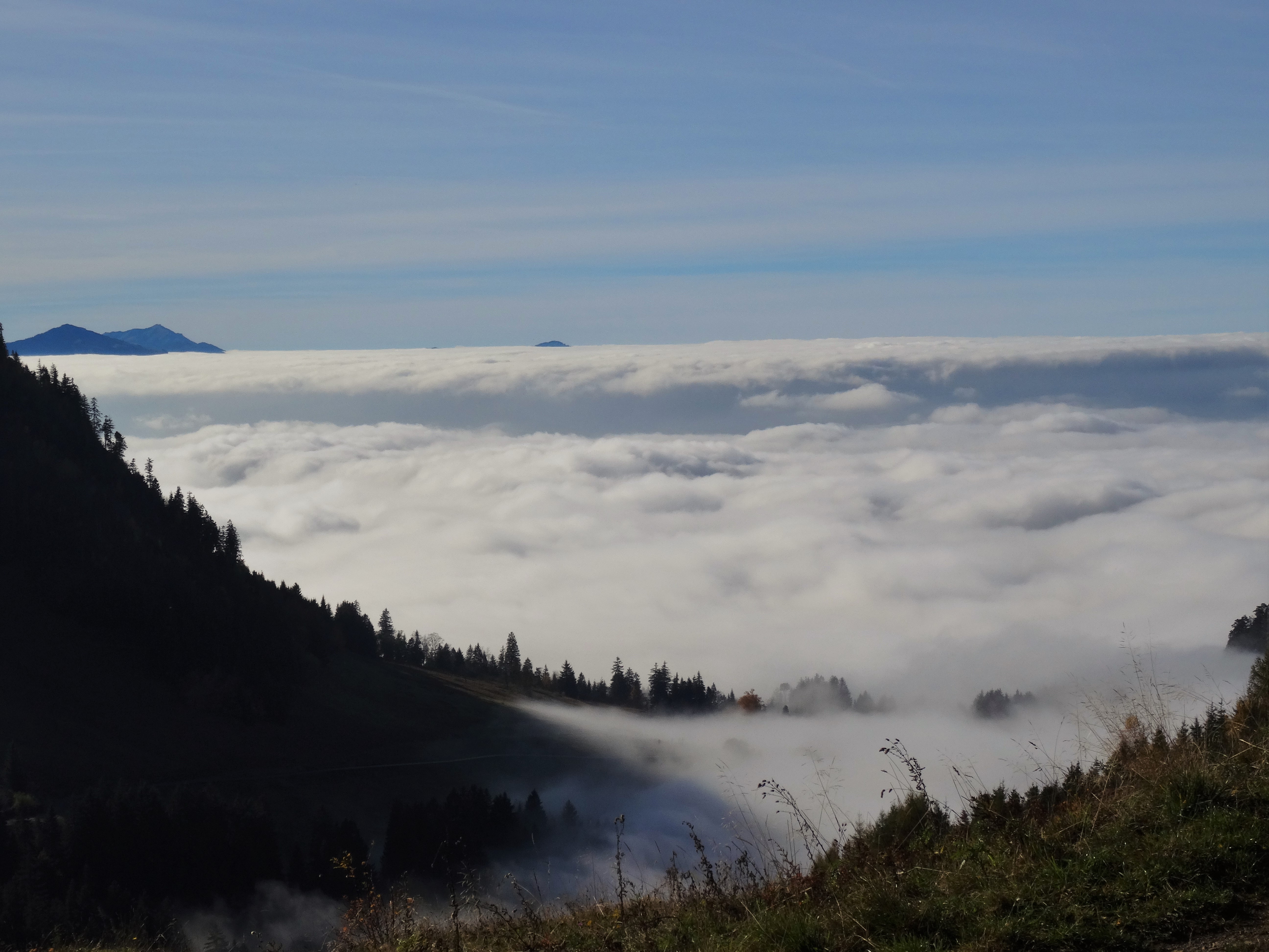 Klasse, wie der Nebel so im Tal hängt und oben eine fantastische Fernsicht im Sonnenschein. Das sind richtig starke Natur-Impressionen aus den Bergen.