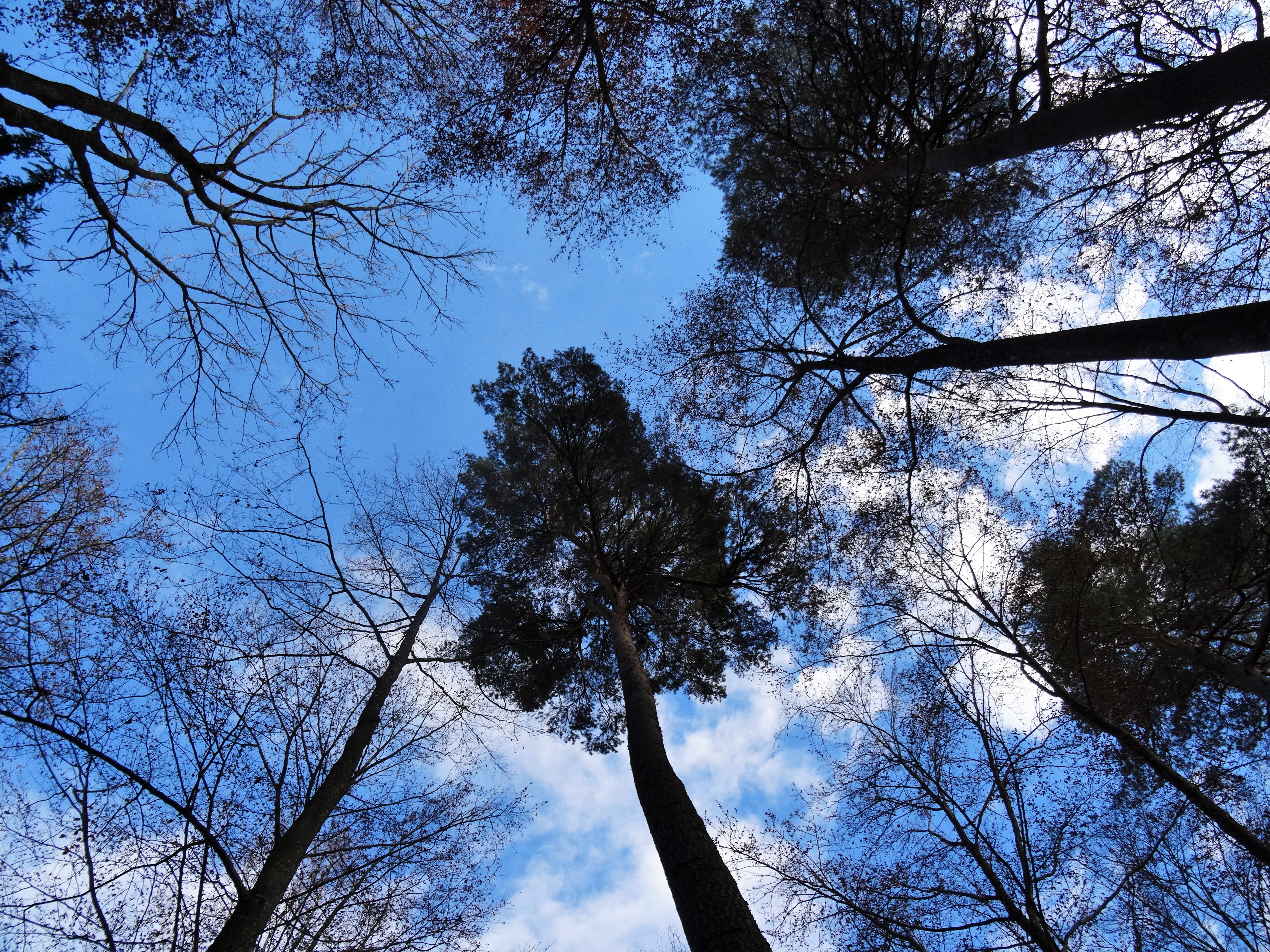 Jetzt im November ist die Sicht, den Bäumen empor, in den Himmel wieder frei. Fast bei allen Bäumen hat sich das Blätterdach gelichtet. In die Baumkronen nach Oben schauen habe ich schon immer gerne gemacht. Nahezu Kerzengerade wachsen diese Bäume über 10 Meter in die Höhe.