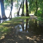 Einen Blick nach Links zur Uferböschung zeigt wie der Wasserstand zurück ging.