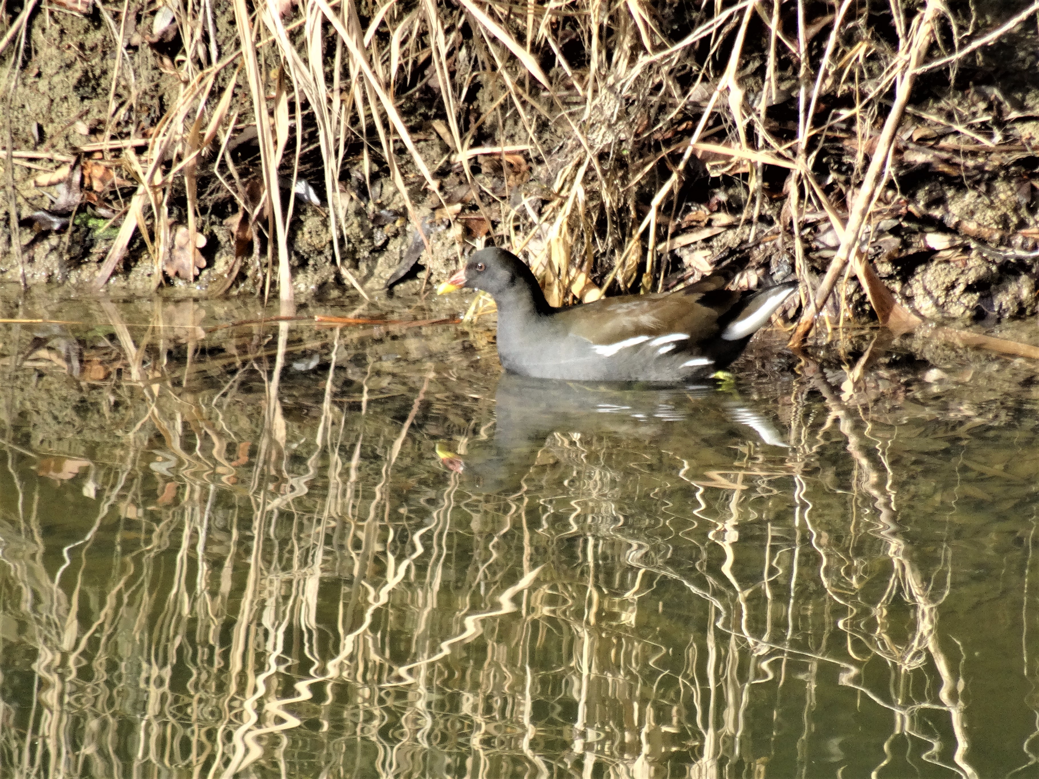 Es sind nicht gerade die farbigsten oder die niedlichsten Tiere, die es gibt. Trotzdem war meine Freude gross, als ich die Teichhühner erblickte. Sie nisten am liebsten im Dickicht am Rand von Teichen, Seen oder Flüssen und verraten sich meist nur durch ihre gutturalen Rufe. Im Winter sind sie leichter zu beobachten, da sie ihren deckungsreichen Lebensraum verlassen und auf Wiesen, in Parks oder an offenen Gewässern erscheinen. Quelle