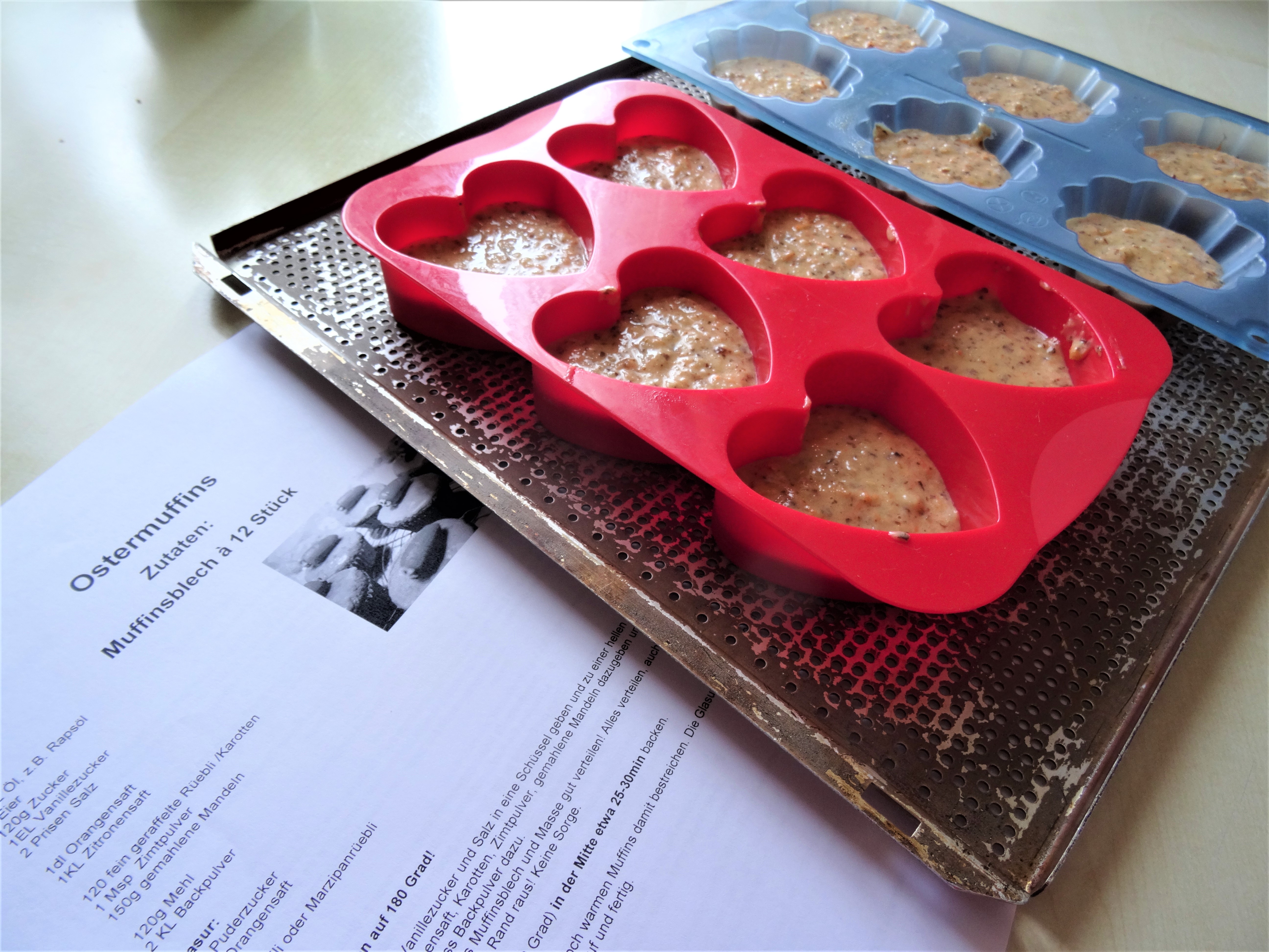 Diese Woche feierten wir den Geburtstag von meinem Mann. Zum Kaffee backte ich die Ostermuffins nach einem Rezept von Rita. Das ist das schöne, wenn man beim Bloggen und Lesen von anderen Blogs so viele Ideen und Anregungen findet. So erging es mir, als Rita von ihrem Schafe schären Tag schrieb und dabei die Karottenmuffins vorstellte. Die sahen so lecker aus, dass ich mir das Rezept ausdruckte. Die Zubereitung ist sehr einfach und ging schnell.