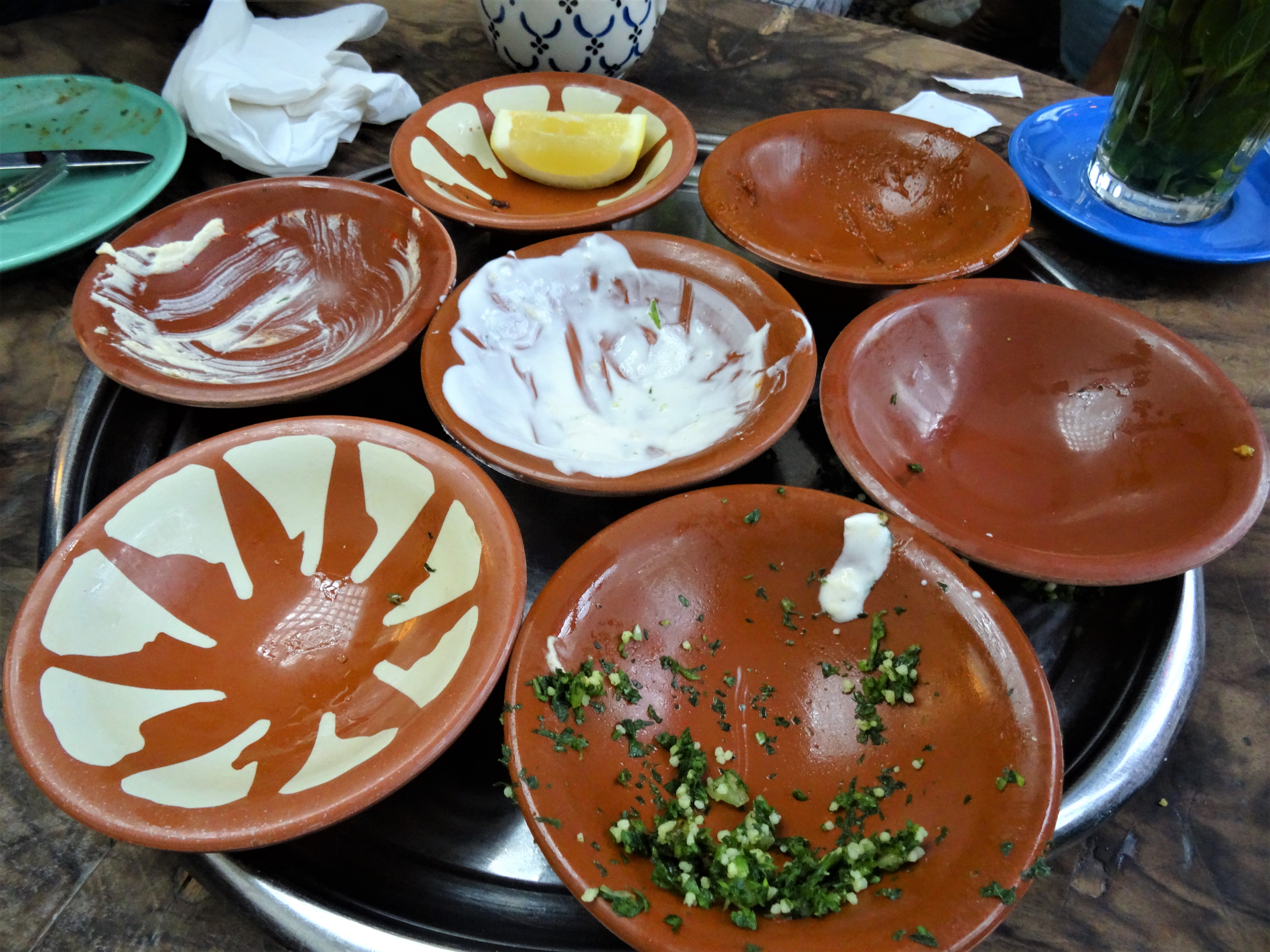 Die Apéroplatte mit den verschiedenen Mezze mit Humus, Falafel, Moussaka, Samosa, Taboulé, Fatayer und Joghurt war sehr köstlich. Und alles war frisch zubereitet.