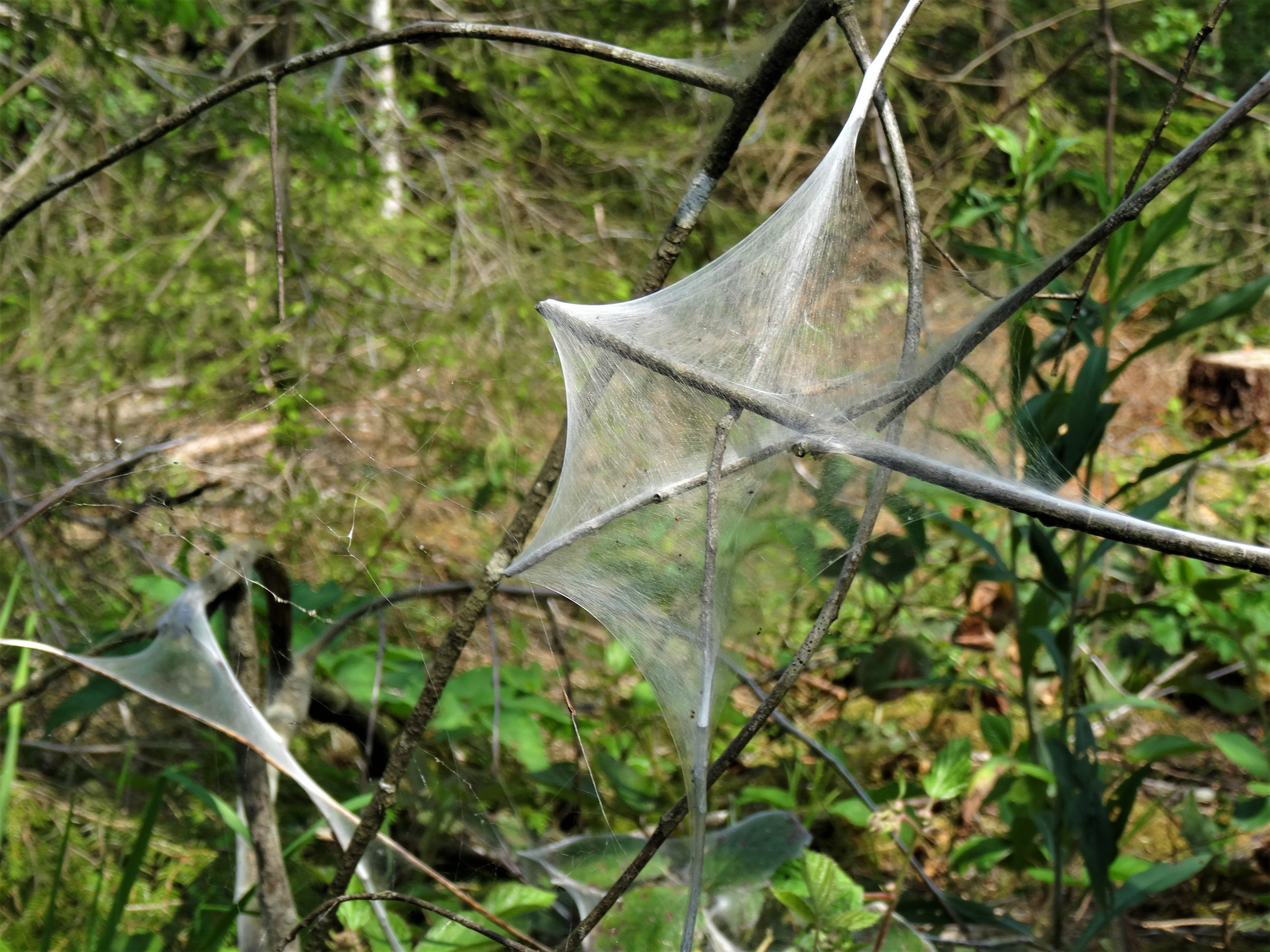 Es sind wahre Kunstwerke in der Natur. In einem der spinnennetzartigen Gewebe können hunderte Larven leben. Nur eine Raupe sah ich nicht.