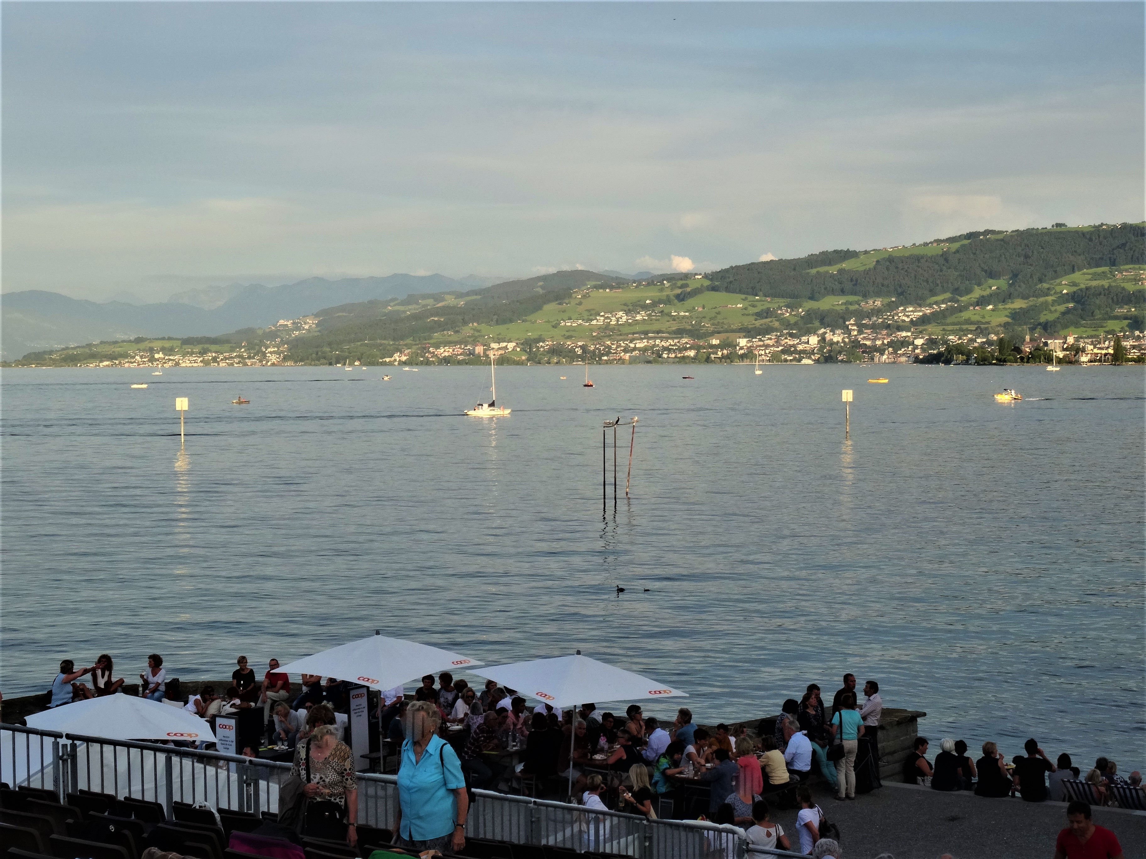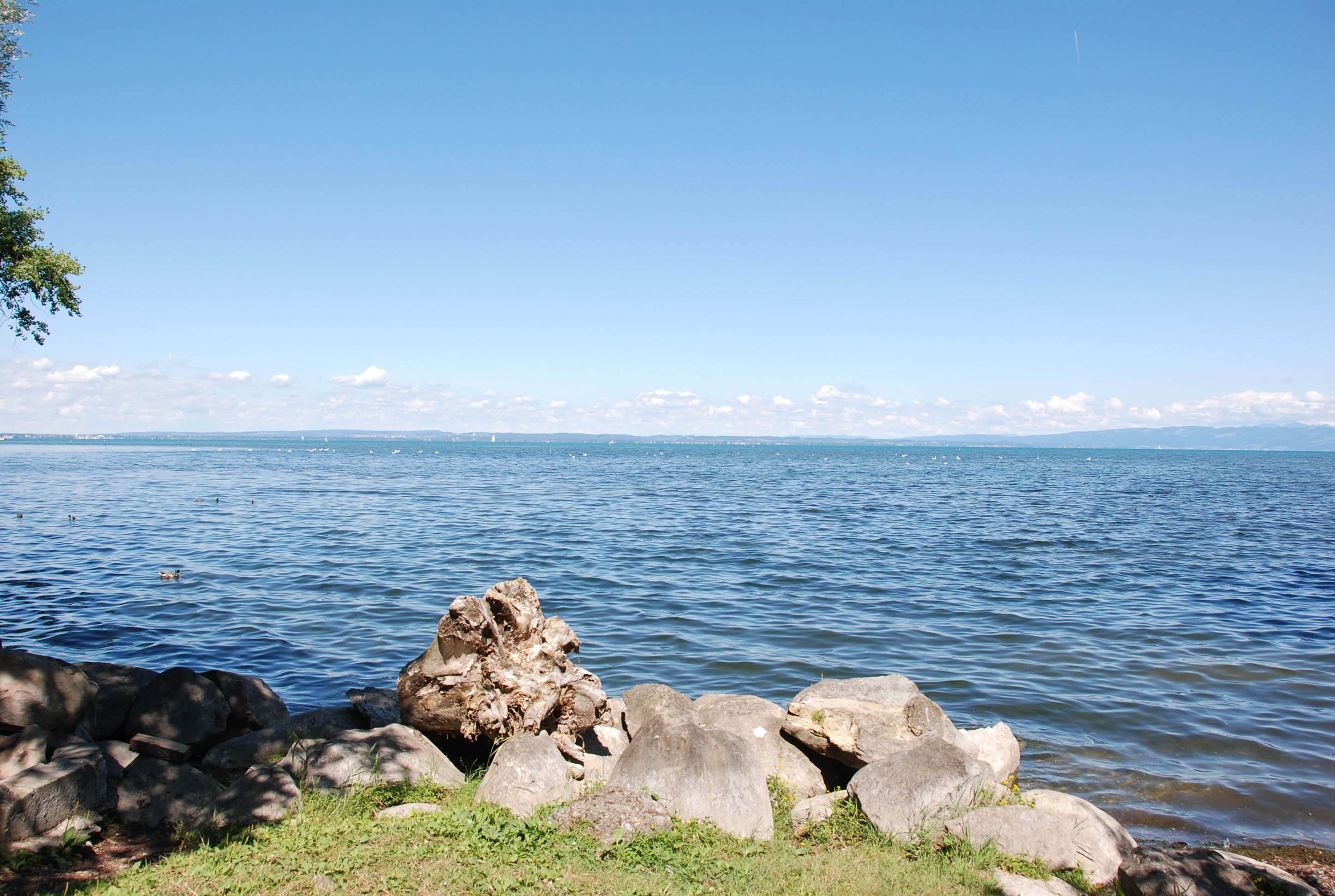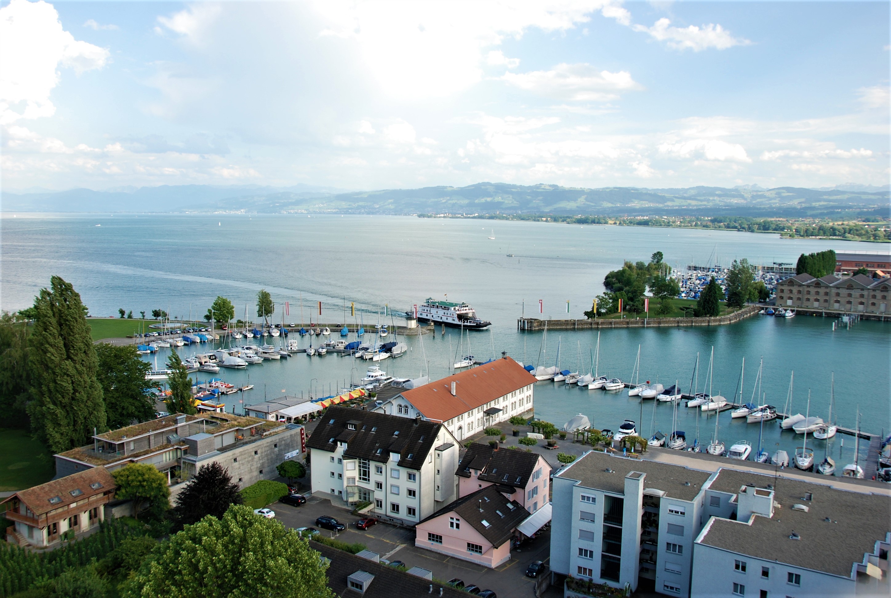Die Aussicht auf den See und die Hafenanlage, wo gerade eine Fähre ankommt, war fantastisch aus luftiger Höhe.