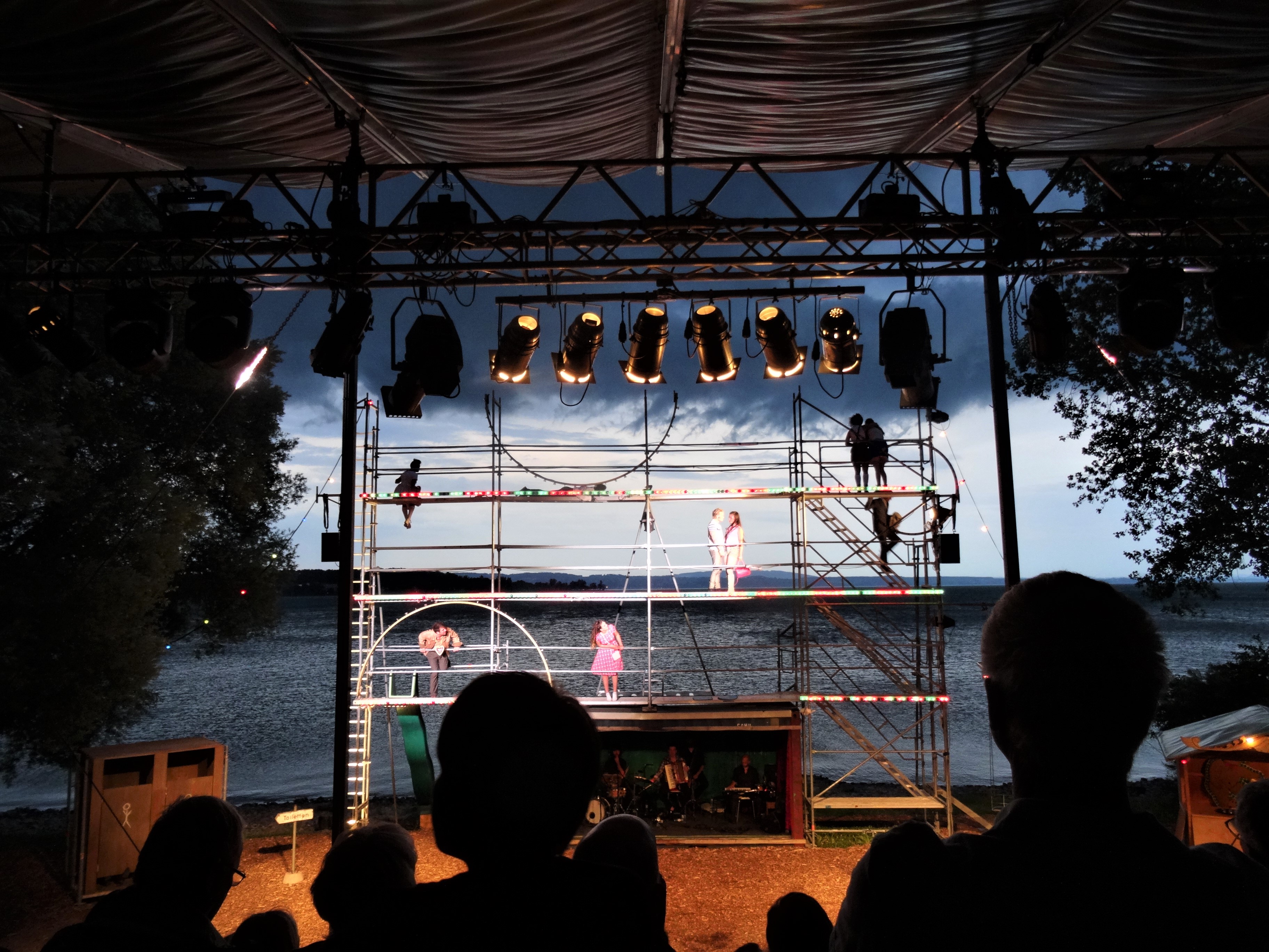 Einen Besuch im See-Burgtheater ist für uns jedes Jahr ein gesetzter Termin im Sommer. Dieses Jahr brauchten wir jedoch zwei Anläufe. Der erste Termin viel buchstäblich ins Wasser. Es gibt eine gedeckte Tribüne und eigentlich wird bei jedem Wetter gespielt. Als wir beim ersten Besuch da waren, zog aber ein Unwetter mit Sturmböen über Kreuzlingen auf, da war es niemandem mehr wohl auf der Tribüne. Wir waren alle erlöst als es in der Pause hiess, dass die Vorstellung abgebrochen wird. Zum Glück waren die Tickets für eine zweite Vorstellung gültig.