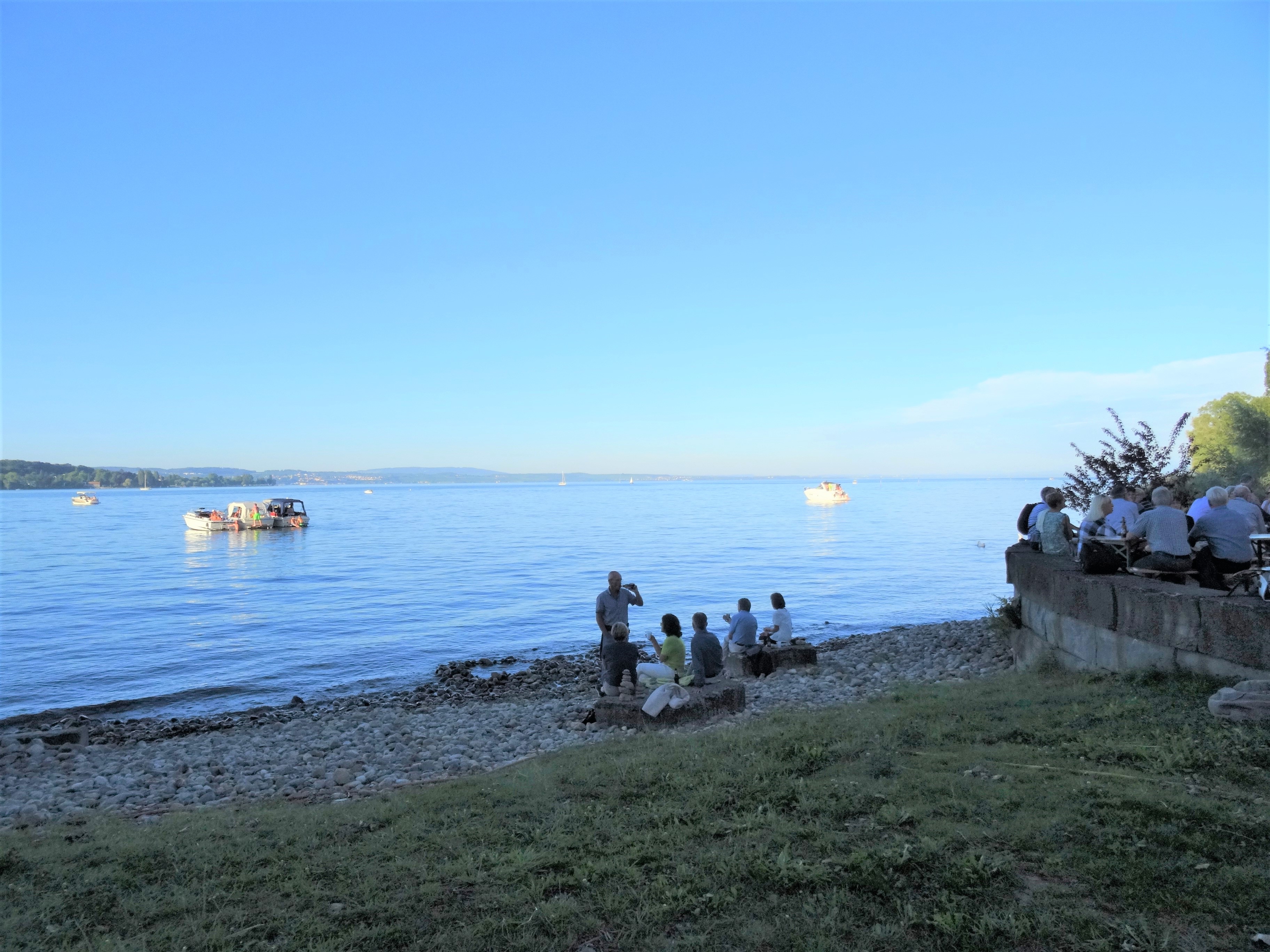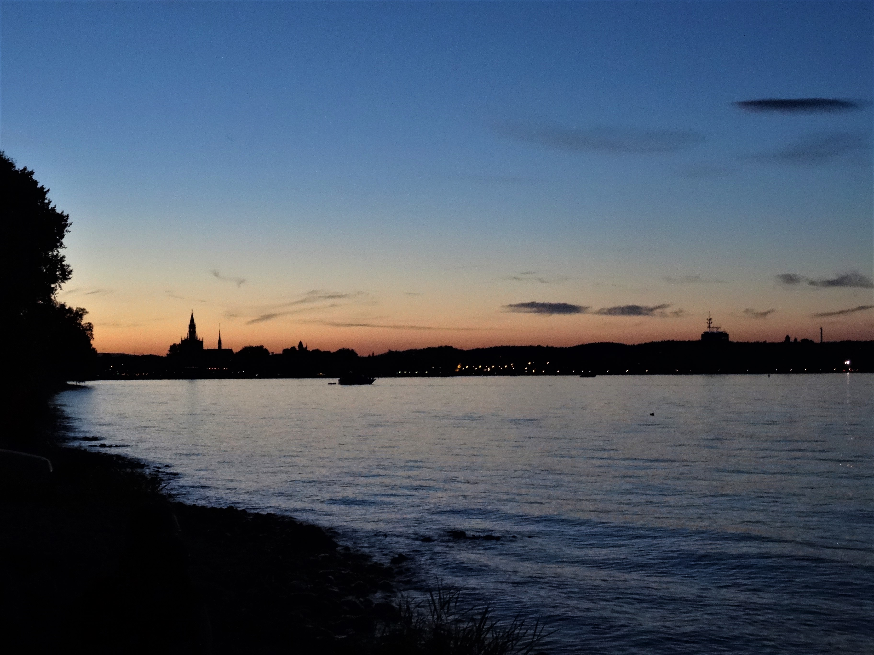 Ein Stimmungsbild in der Pause von Konstanz in der Abenddämmerung.