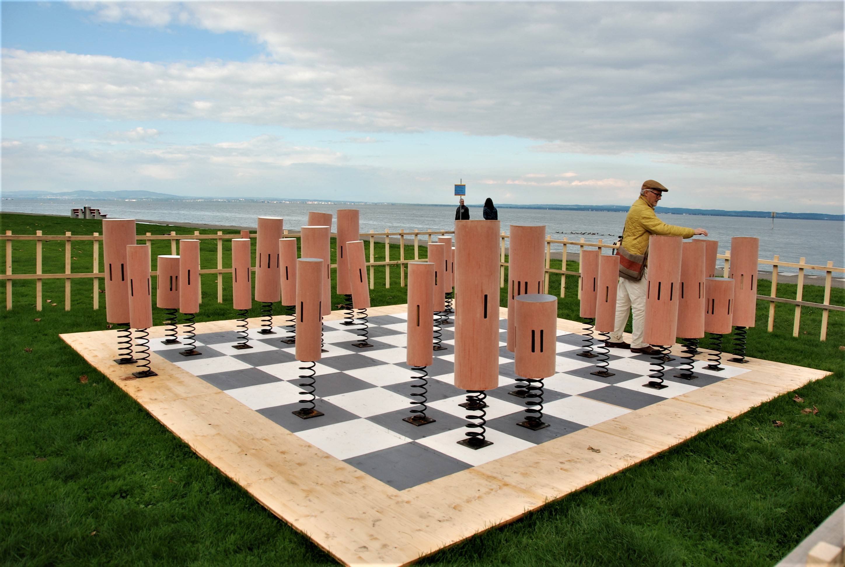 Gut war, dass die verschiedenen Klangskulpturen so weit auseinander standen. So störten die verschiedenen schleifenden, metallischen, schlagenden, pfeifenden und vibrierenden Klängen einander nicht.