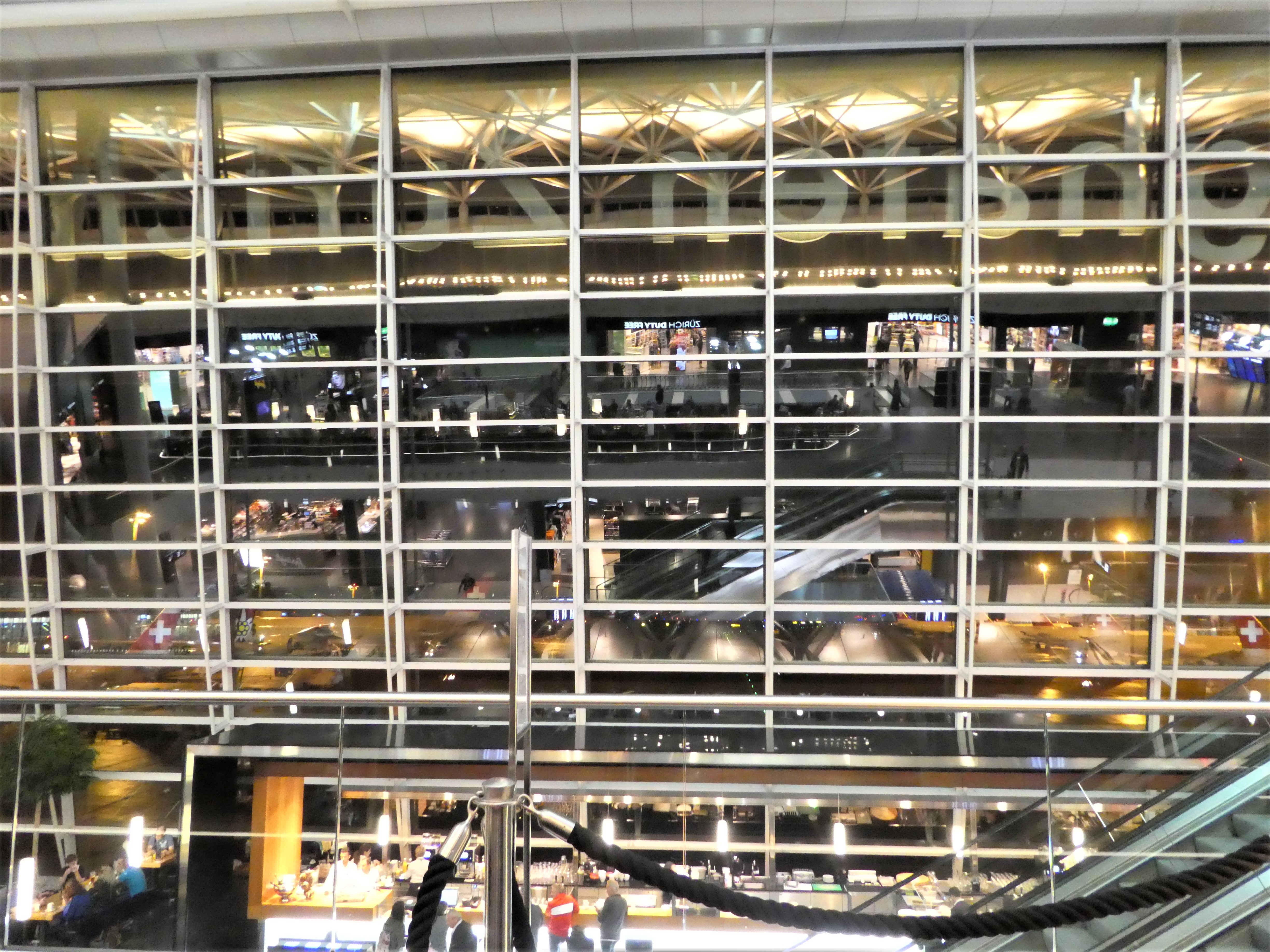 Auf den ersten Blick ist es nicht leicht zu erkennen, wo das Foto entstand. Ich nahm es im Café am Flughafen vor unserem Abflug in die Ferien auf. Eigentlich recht spektakulär die Reflektion in der Fensterfront.