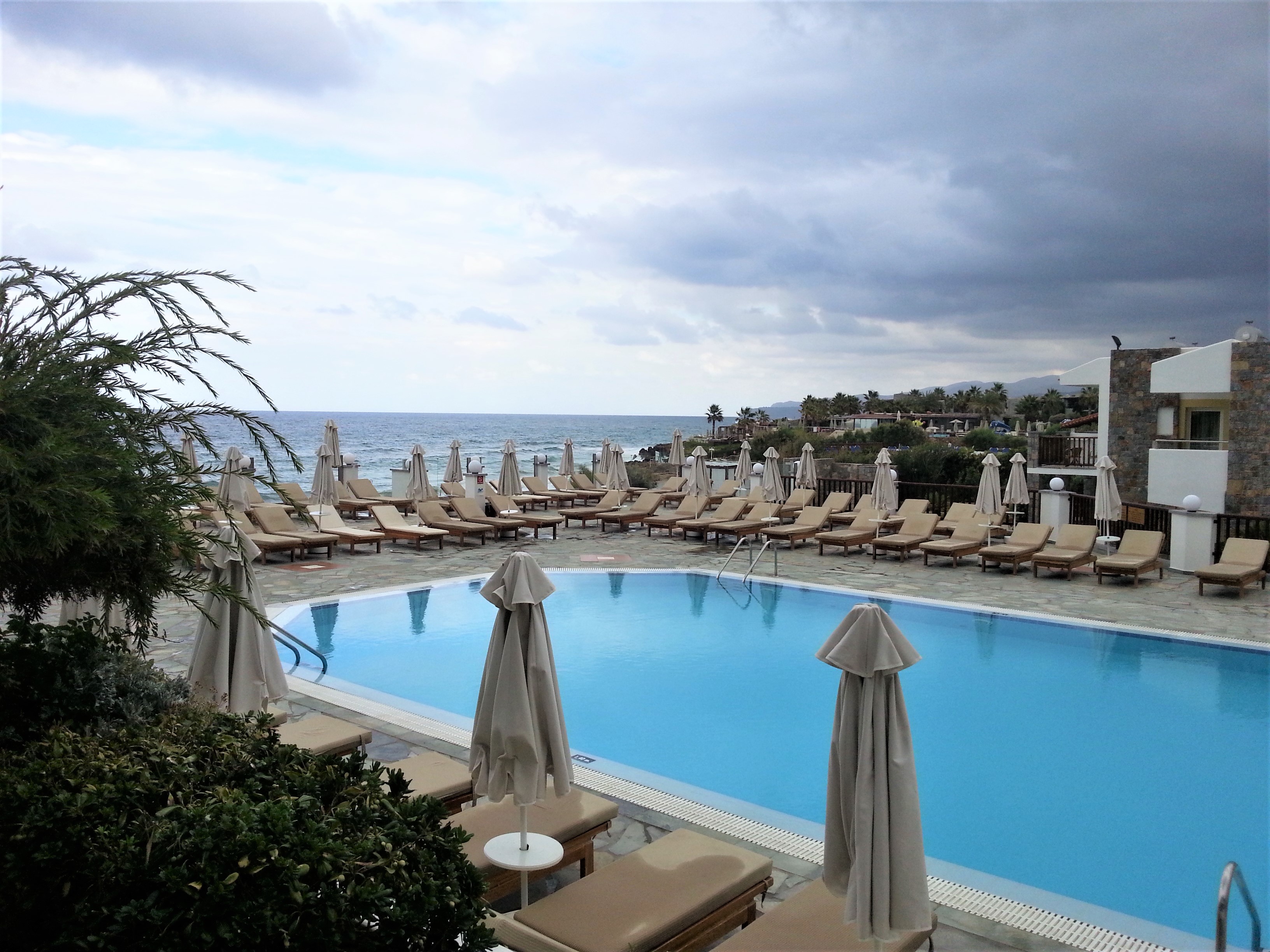 Genauso unspektakulär sieht es aus, wenn die Sonne nicht scheint und alle Liegen leer sind und niemand im Pool vor dem Zimmer am Schwimmen ist.