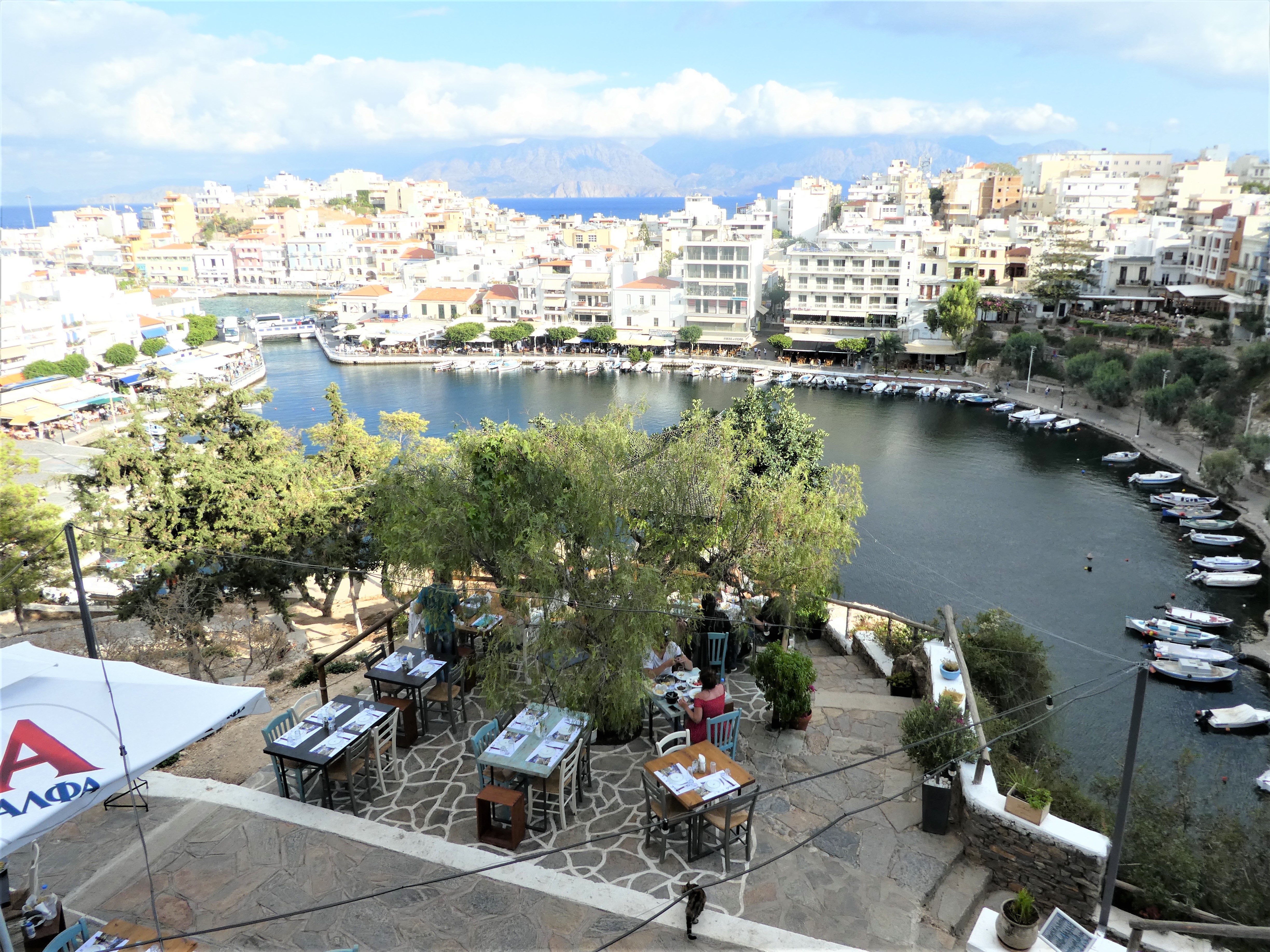 Nur eine halbe Stunde von unserem Hotel entfernt, liegt die Hafenstadt Agios Nikolaos. Perfekt um am frühen Abend hinzufahren und die unzähligen Restaurants und Cafés rund um den Süsswassersee zu inspizieren. Vom Hügel direkt am See hatte man einen wunderschönen Ausblick.