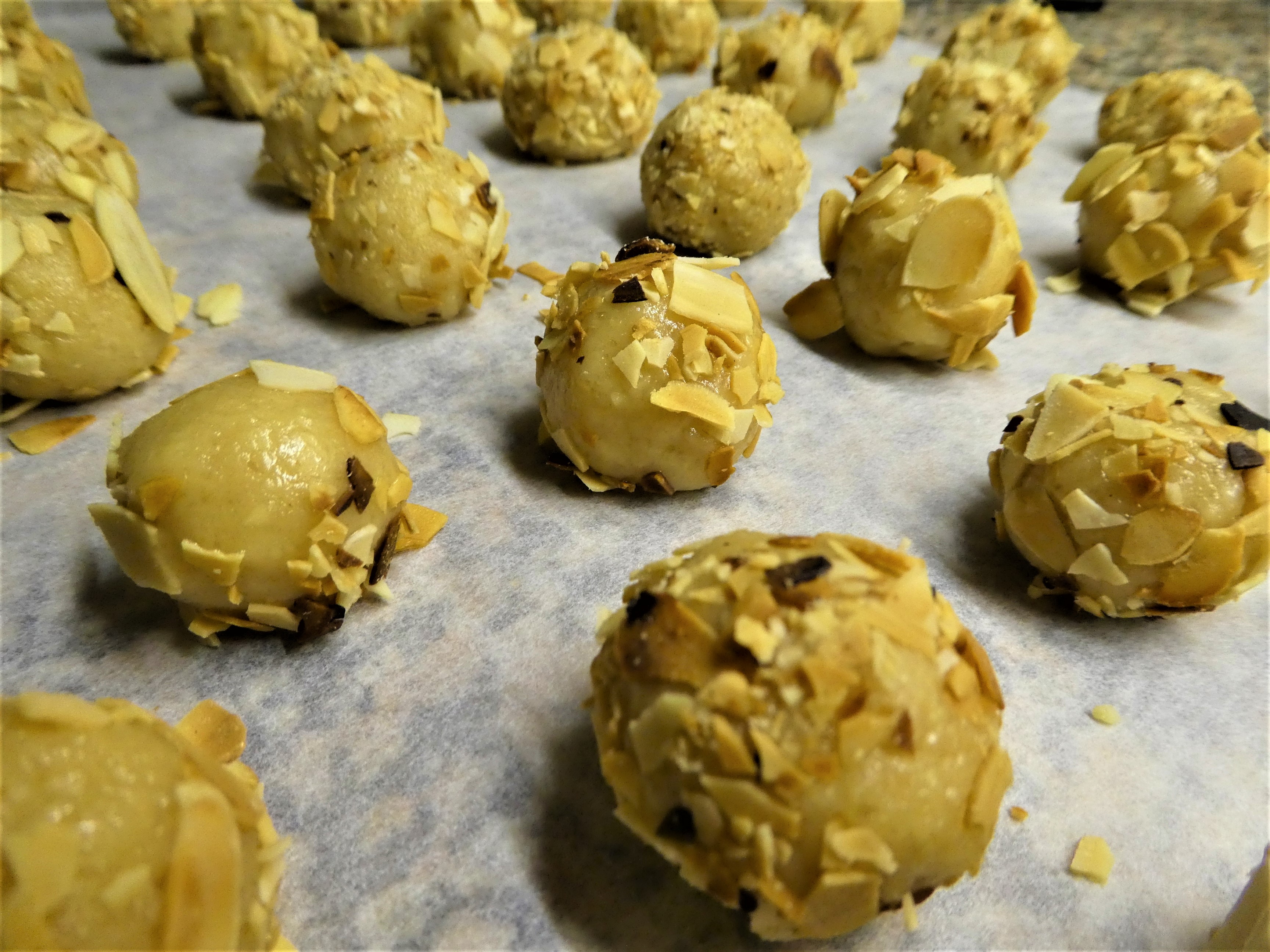 Für meinen Teil der Guetzli lief die Küchenmaschine diese Woche heiss. Ich probiere jedes Jahr gerne neue Sorten aus. Die Mandelkugeln habe ich bei Martina entdeckt. Ich wusste bereits beim Lesen der Zutaten, dass die lecker sind.