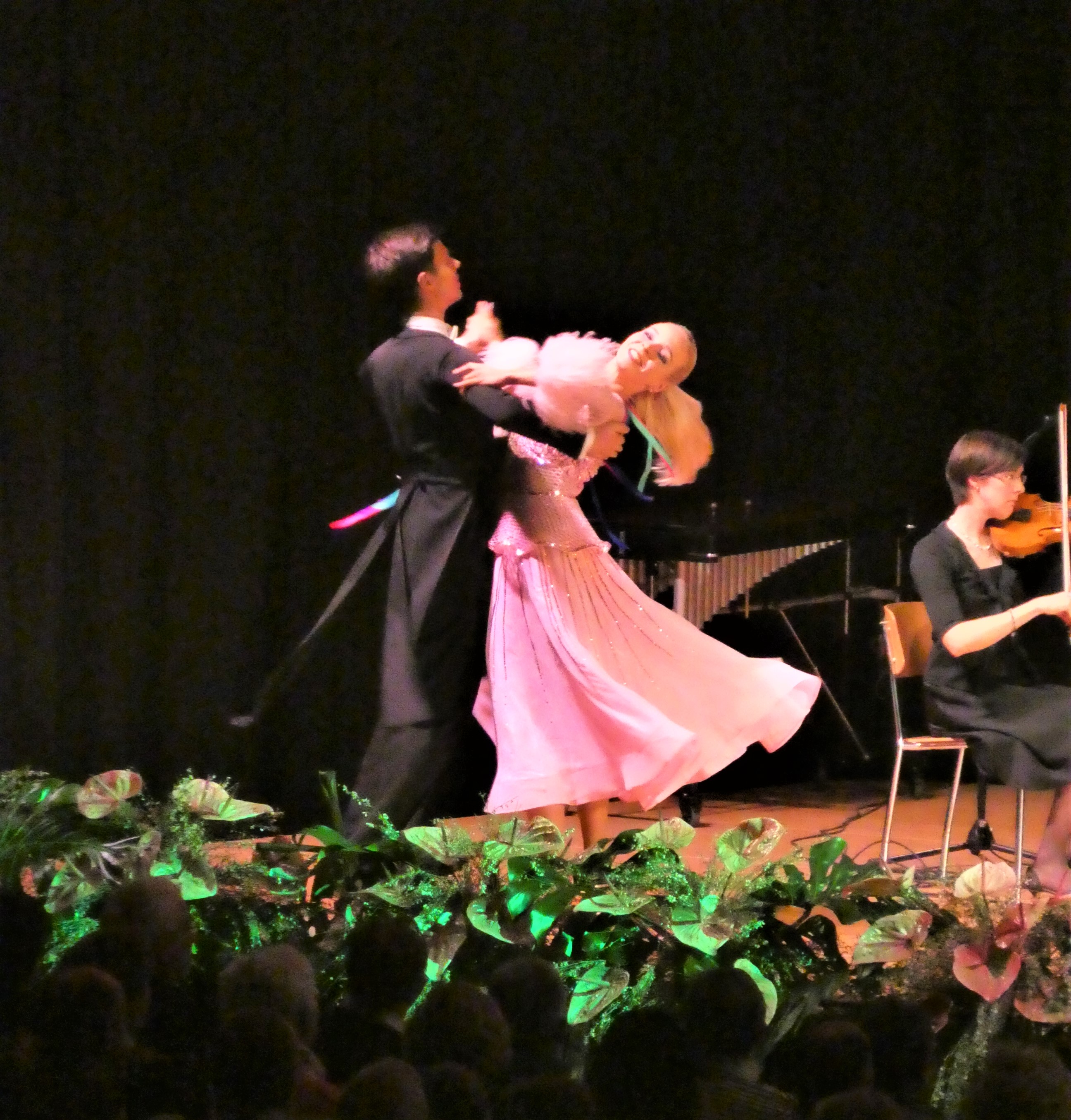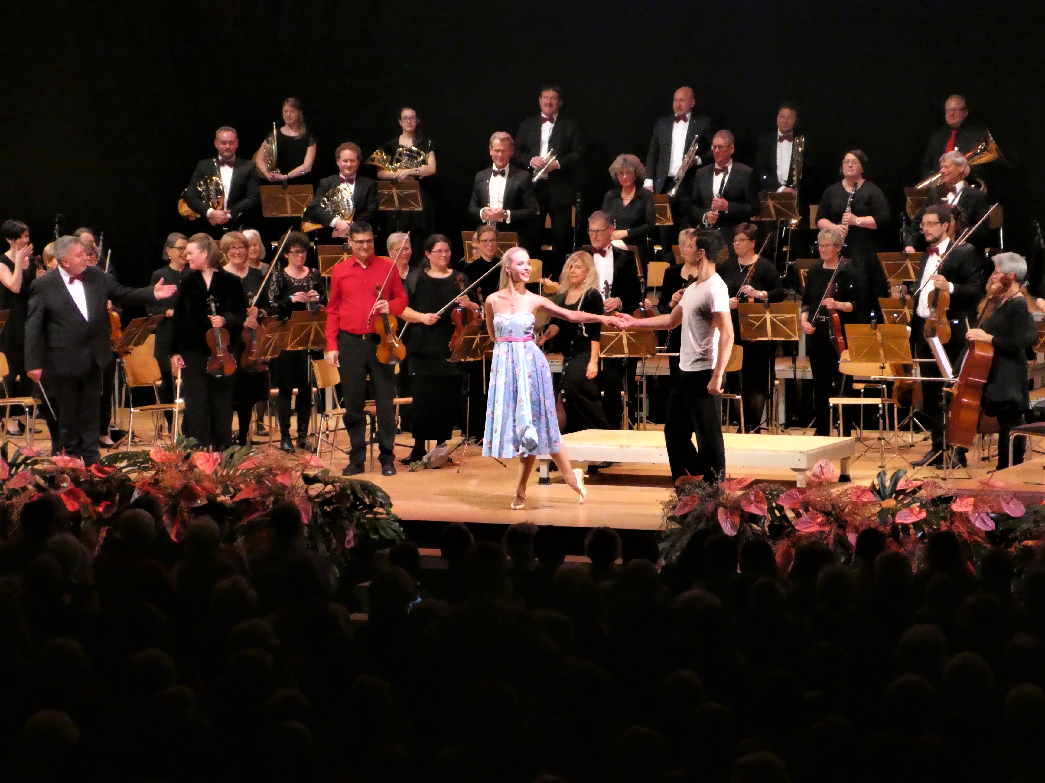 Akustisch und optisch ging es weiter mit dem «Donauwellen Walzer». Eine glanzvolle Note erhielt das Stück durch den Auftritt von Yulia Dreier, der mehrfachen und aktuellen Schweizermeisterin im Standardtanz, mit ihrem Partner Vova Kasilov.