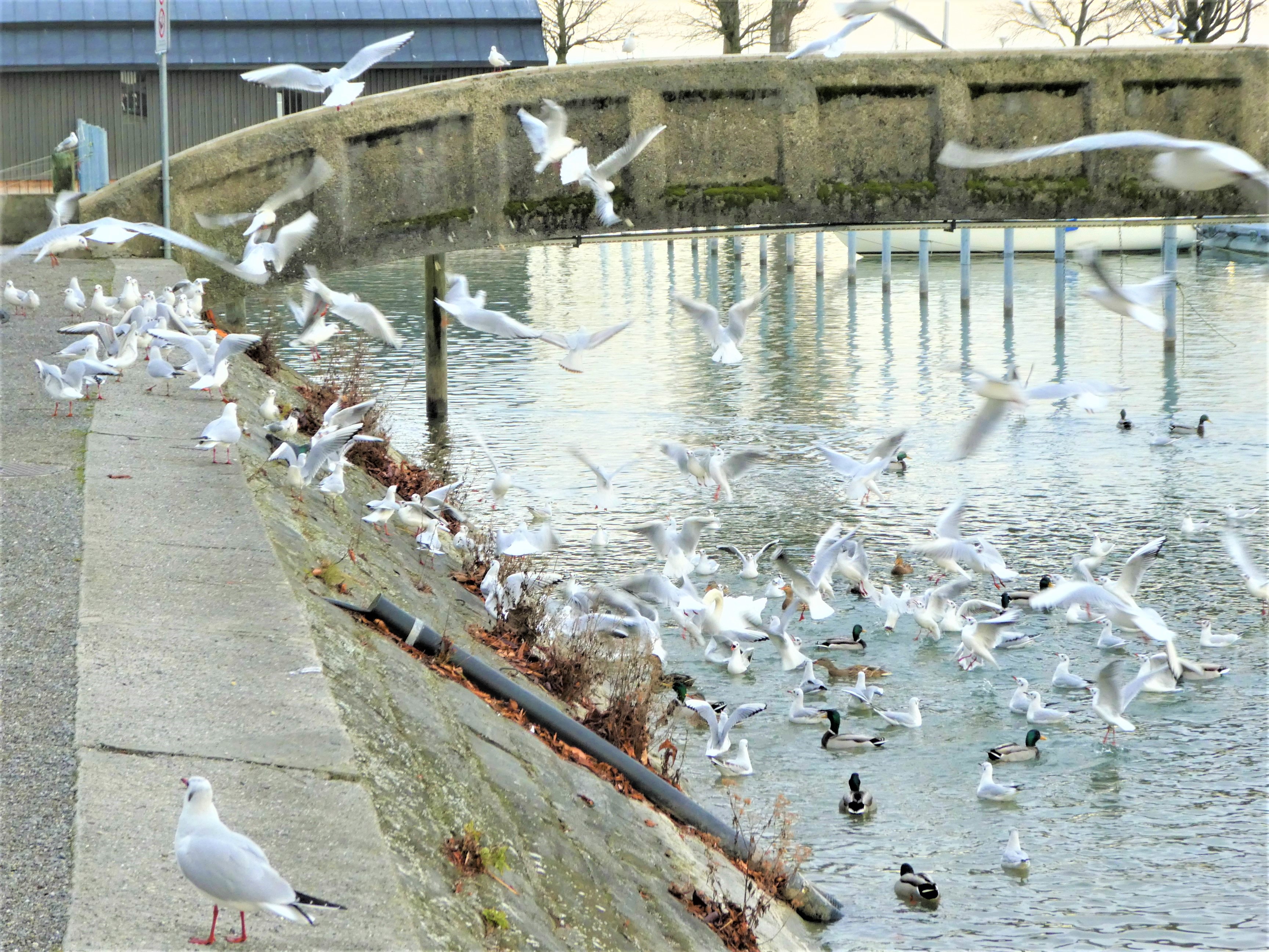 Ein schönes Schauspiel wenn ganze Gruppen im, am und auf dem Wasser wild durcheinander fliegen.
