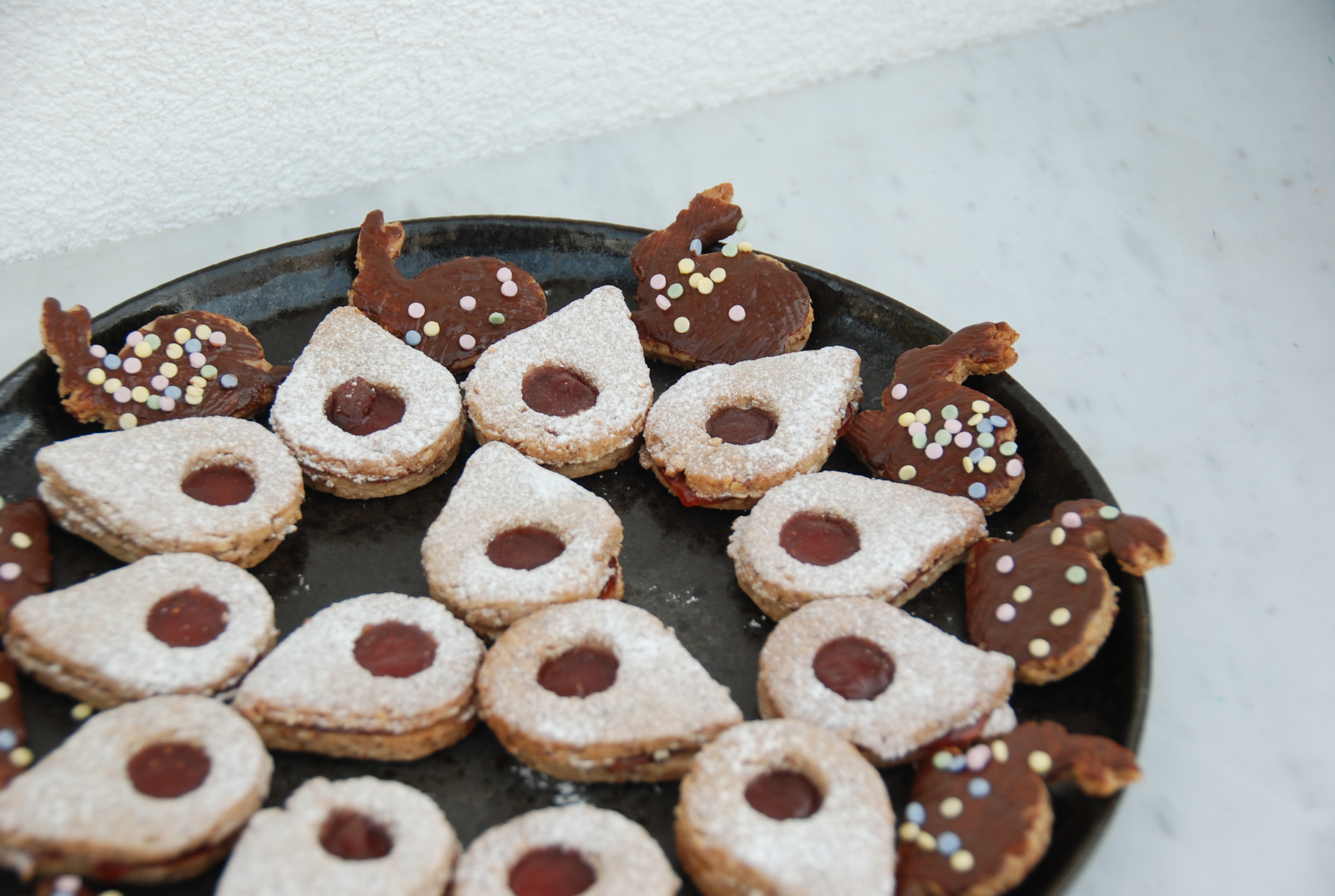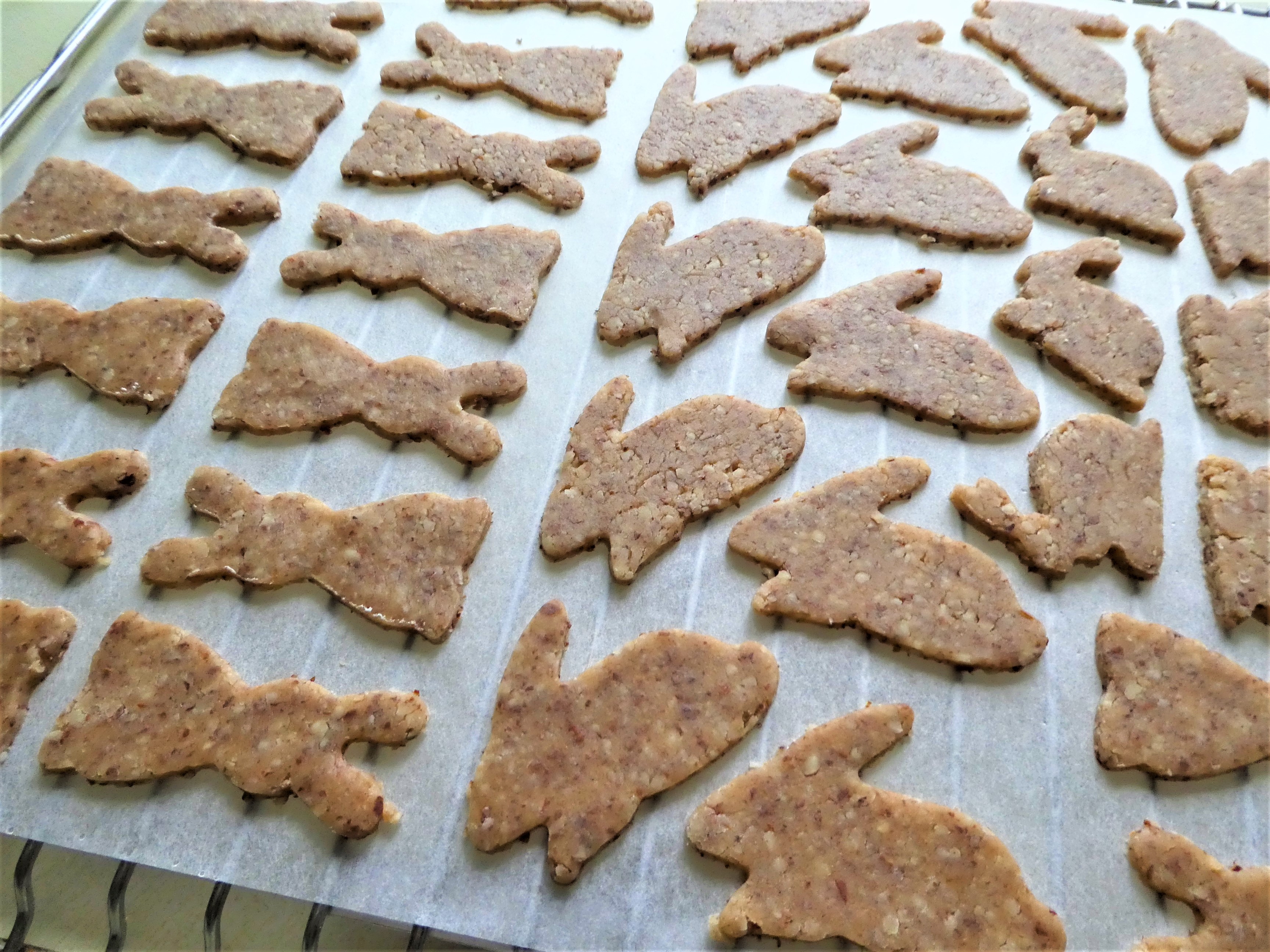 Inspiriert hat mich der Linzerteig, der schnell gemacht ist. Mit den kleinen Formen stoch ich Hasen aus, und stellt diese kurz kühl.
