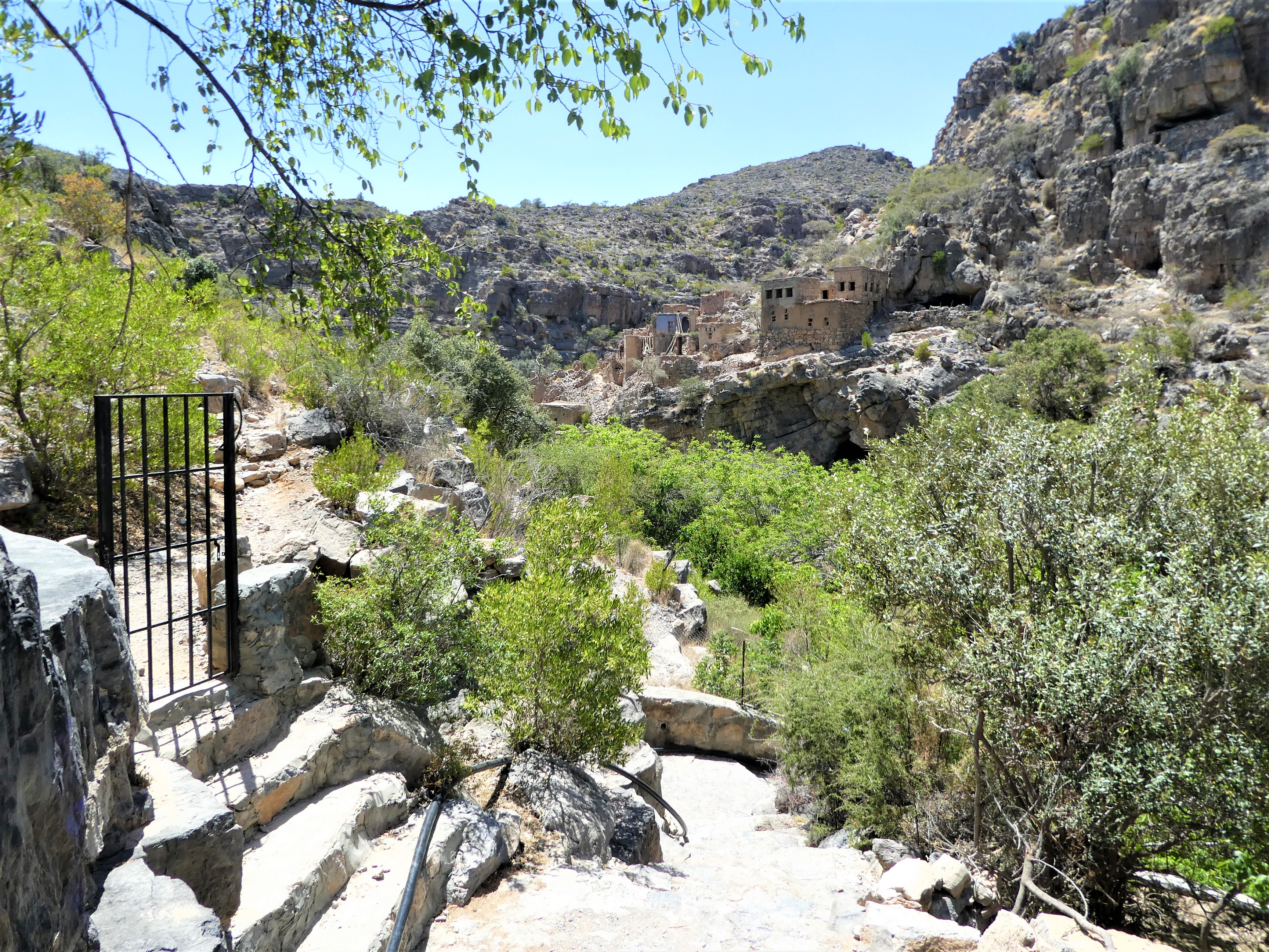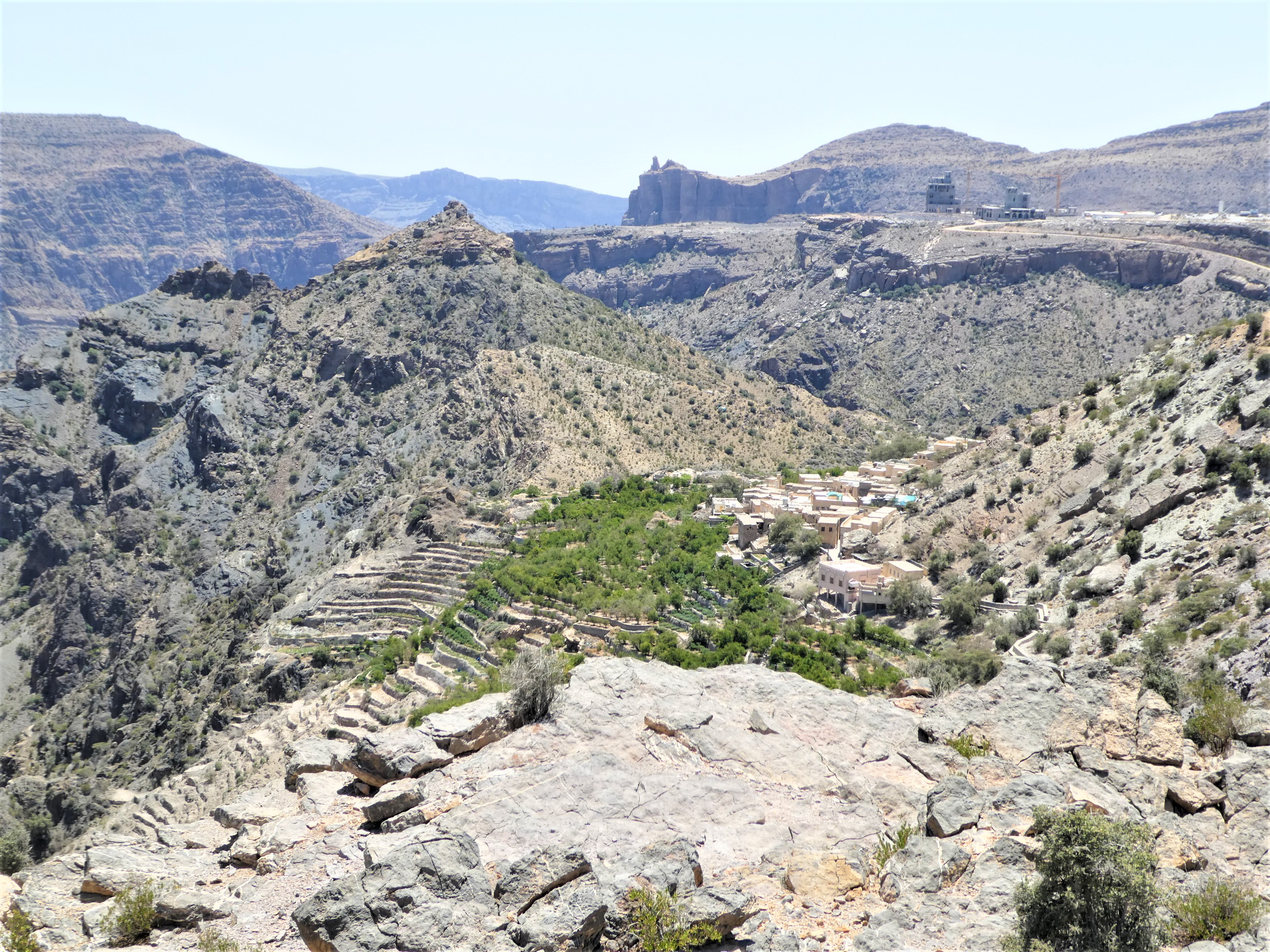 Auf dem Weg nach Al Hamra machten wir noch einen Abstecher zum Wadi Bani Habib, Jabal Akhdarm auf fast 3’000 Meter Höhe. Hier war es noch angenehme 30° Grad warm.