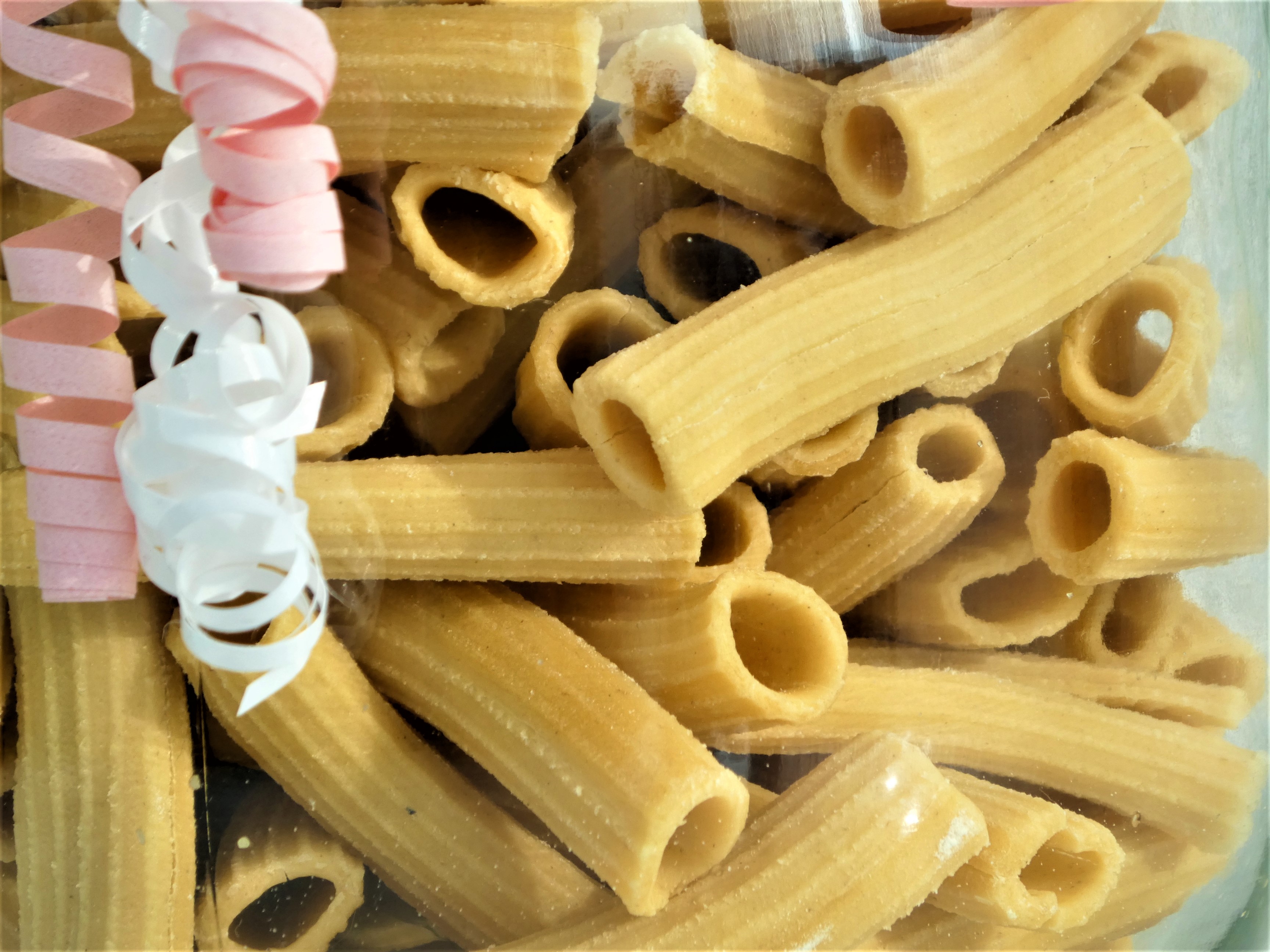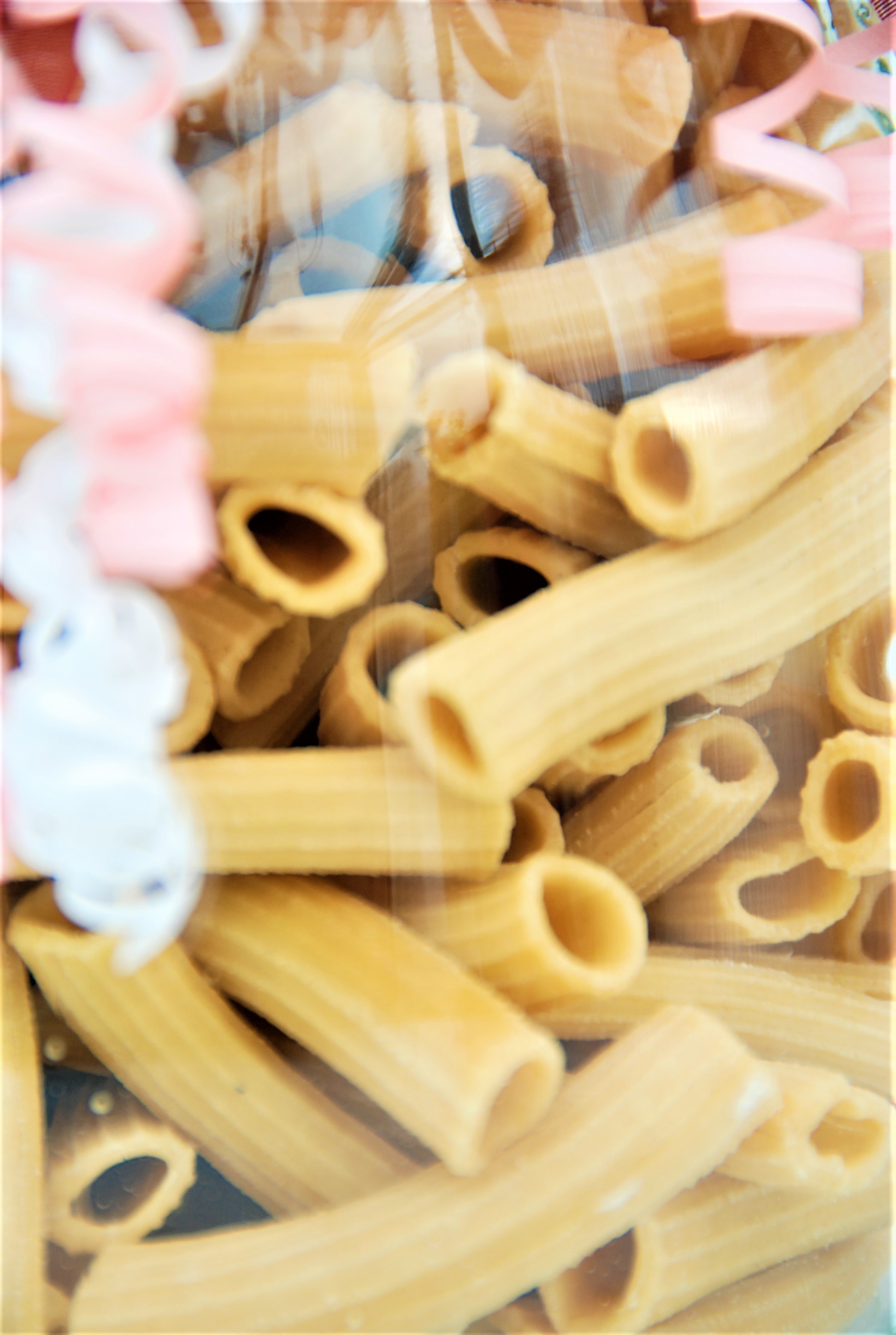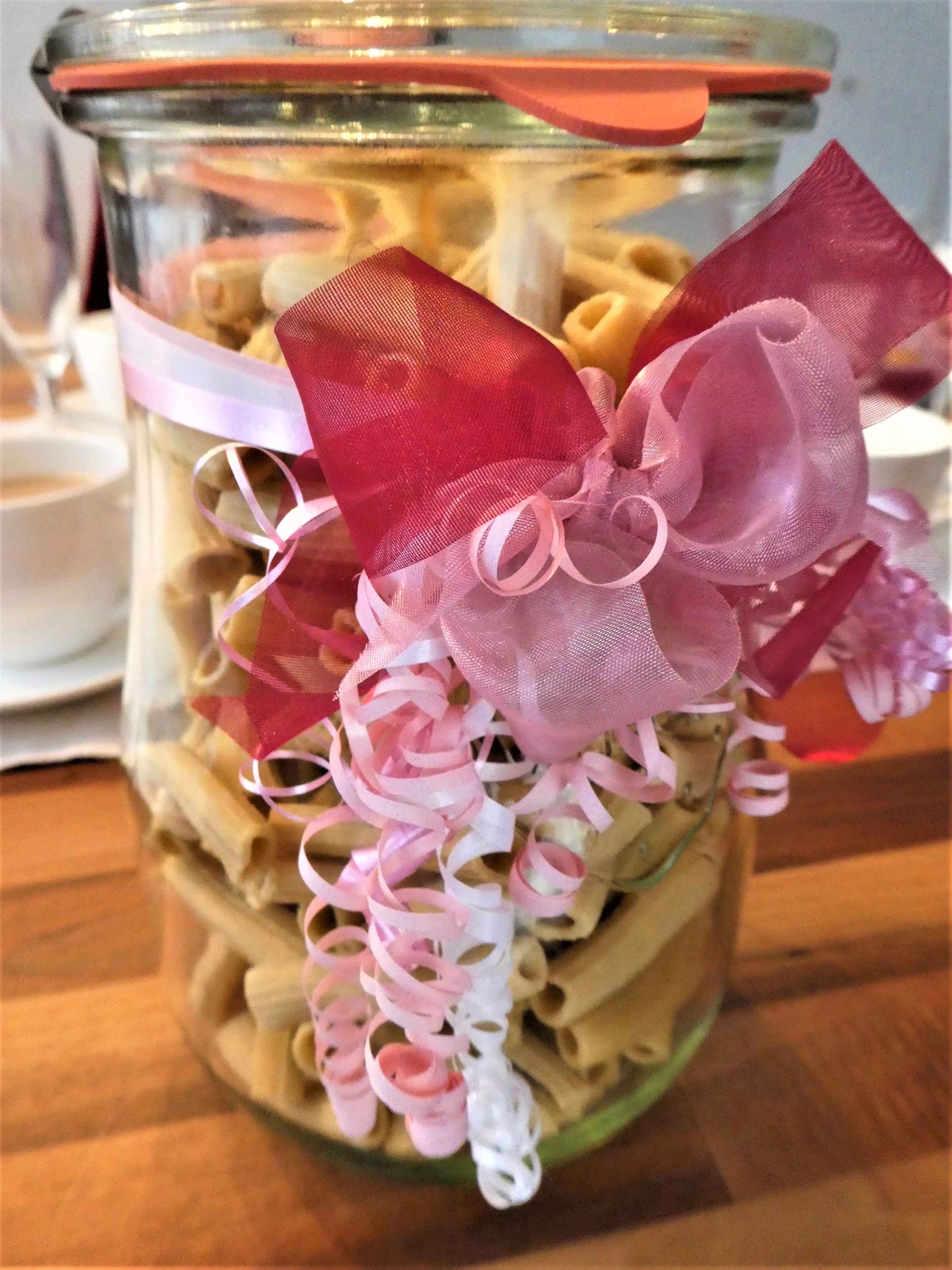 Wie gut, dass mein Schwiegersohn für seine KitchenAid den Pastaaufsatz geschenkt bekam. Das richtige Mehl für die Zubereitung der Rigatoni hat er im Pastaland im Urlaub gekauft und als Hobbykoch auch gleich ausprobiert. Wie liebevoll von ihm, dass er an meine Pasta-Liebe dachte, und mir das wunderschön dekorierte Glas voller feinster, selbstgemachter Pasta schenkte.
