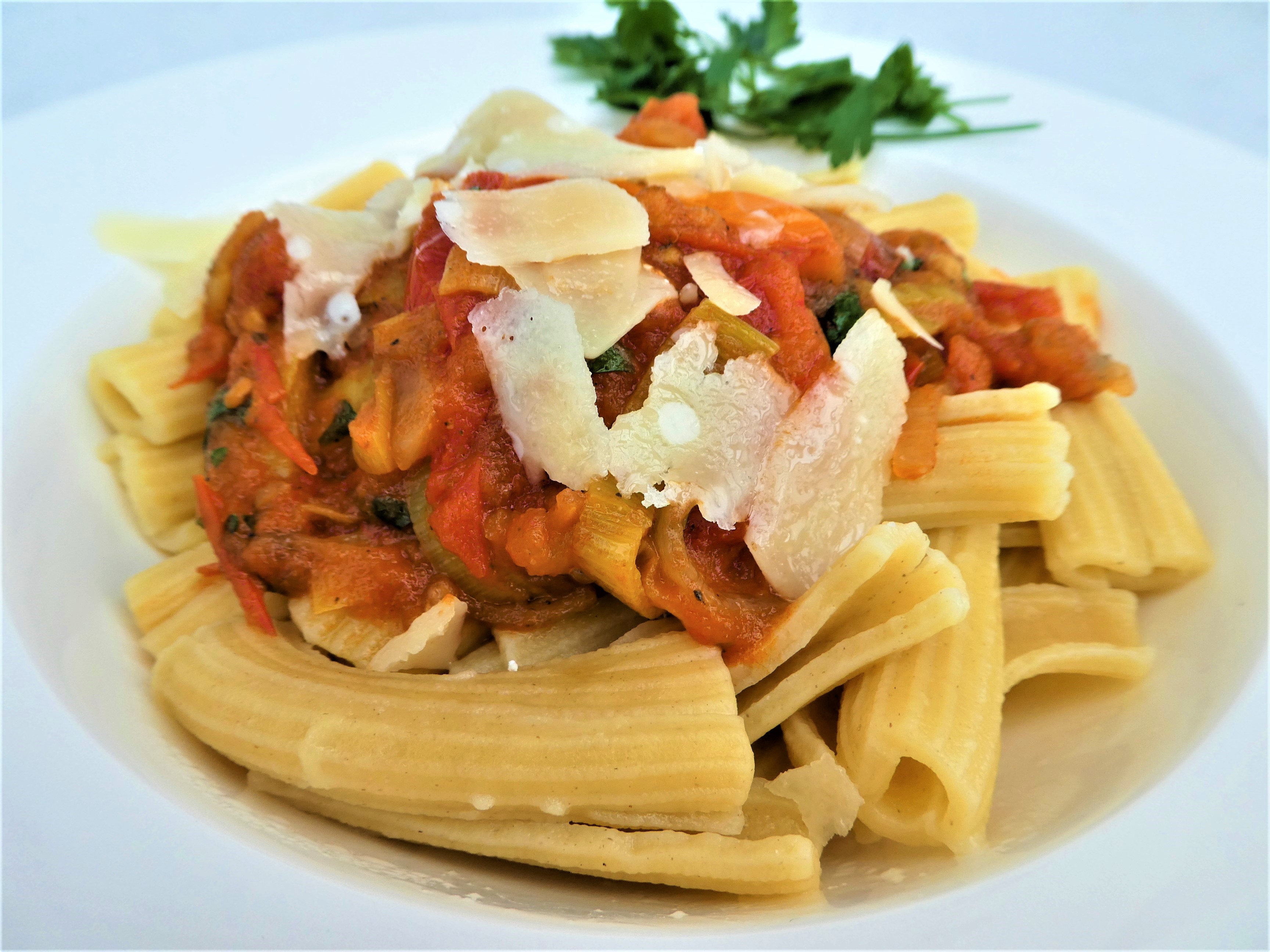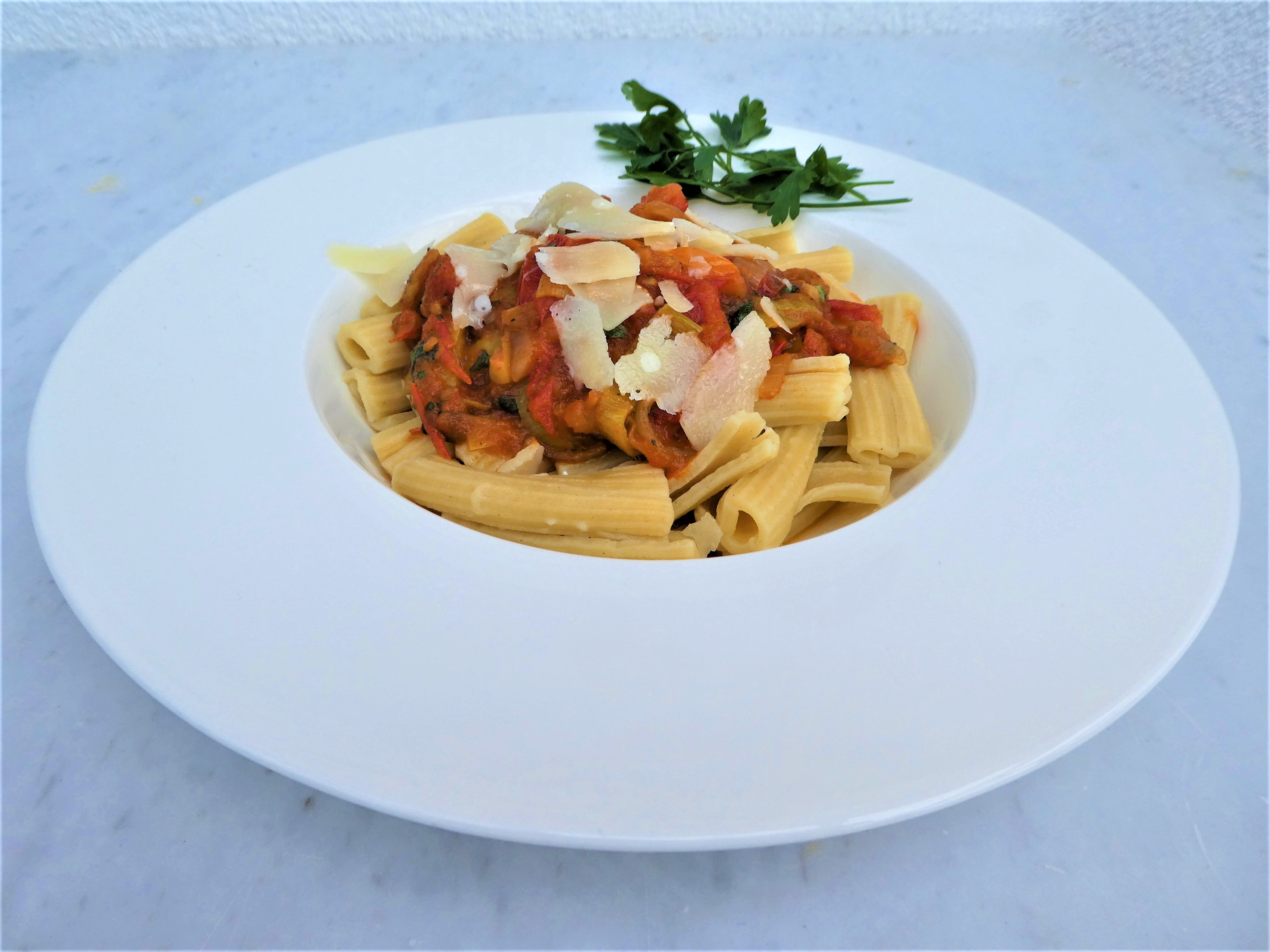 Die Rigatoni kochte ich in reichlich Salzwasser al Dente und servierte sie in vorgewärmten Tellern. Natürlich probierte ich sofort von der bissfesten, qualitativ hochstehenden Pasta.