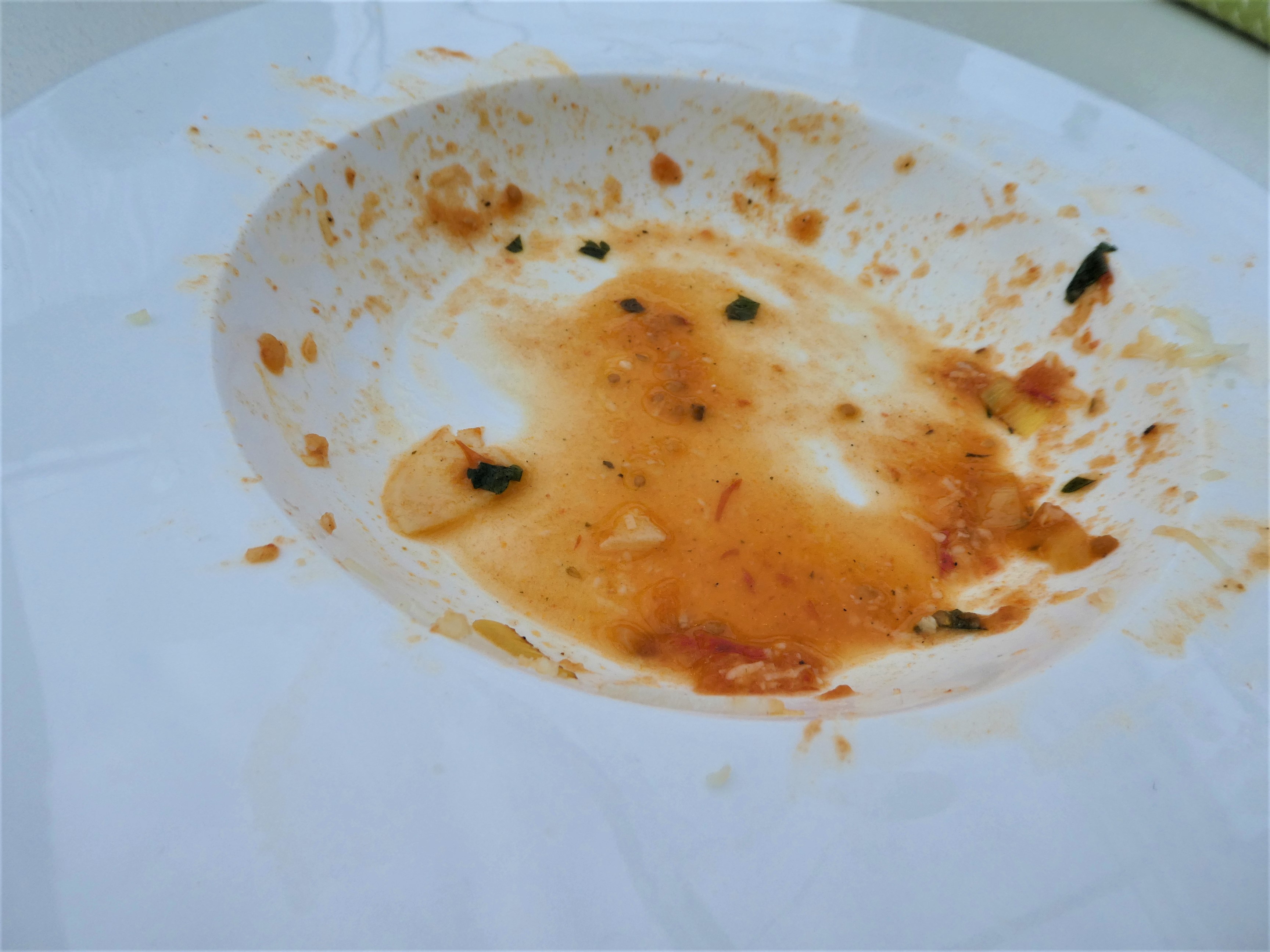 Dann kam reichlich Sauce und frisch gehobeltem Parmesan darauf. Wir schlemmten nach Herzenslust, und natürlich wie immer bei so einem Lieblingsmenü viel zu viel.