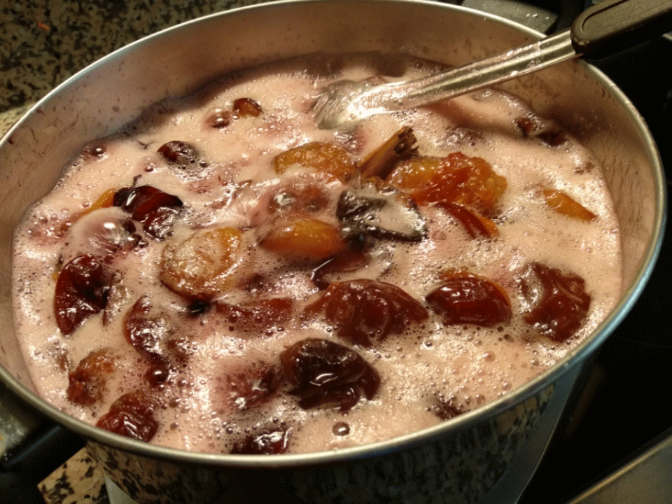 Hier in der Pfanne blubbert die Marmelade vor sich her.