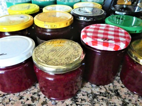 Bei den weissen Johannisbeeren, die meine liebsten sind, mische ich keine anderen Früchte dazu, weil sie ein so gutes herbes Aroma haben. Ich koche meine Beeren auch nicht mit Gelierzucker oder Geleepulver, sondern nehme immer für 1 kg Fruchtmark 800 gr Zucker. Für eine schöne Farbe und als Geschmacksverstärker gebe ich eine geschnittene Bio-Zitrone dazu, und koche ca. 10 Minuten auf hoher Stufe sprudelnd ein.