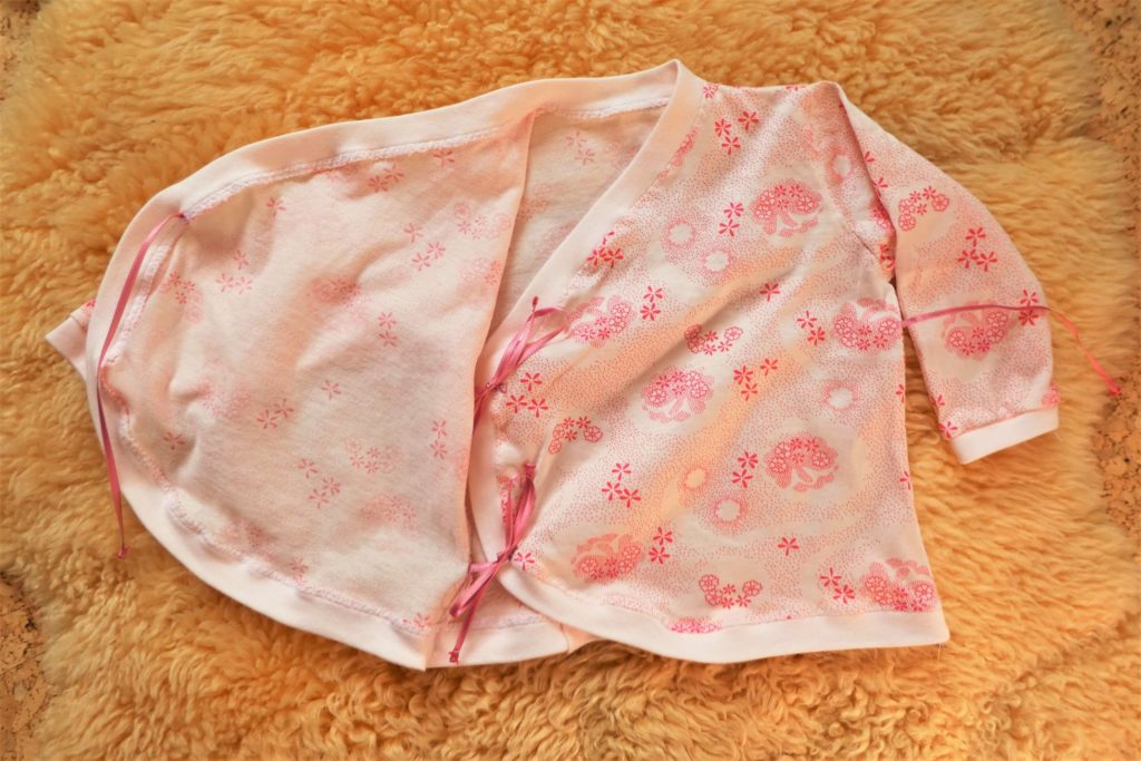 Zum Anziehen muss das Baby nicht gedreht werden, weil das Schlüttli ganz geöffnet werden kann. Und es kann bequem mit Bänder geschlossen werden. Das Schnittmuster ist aus dem Buch Nähen für Babys.