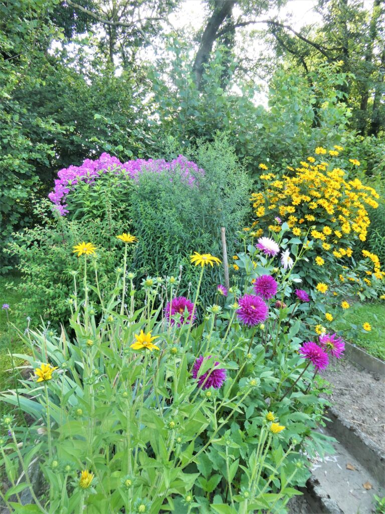 Jetzt im Spätsommer, oder Herbstanfang, sind die Farben so intensiv, da leuchten mir die verschiedenen Blumen im Garten schon von weitem entgegen. Der Morgentau lässt die Pflanzen noch frischer erscheinen.