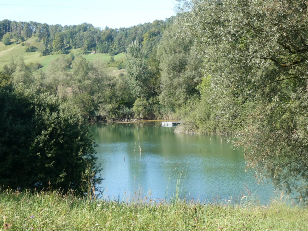 Ein beliebter Spaziergang, wenn ich ein Mal in der Woche meine Enkelin hüte, ist der Weiherrundgang. Vorbei an ökologischen Blumenwiesen, wo es immer etwas zu entdecken gibt. Die Wiesen sind jetzt wieder schön gewachsen nach dem Sommerschnitt.