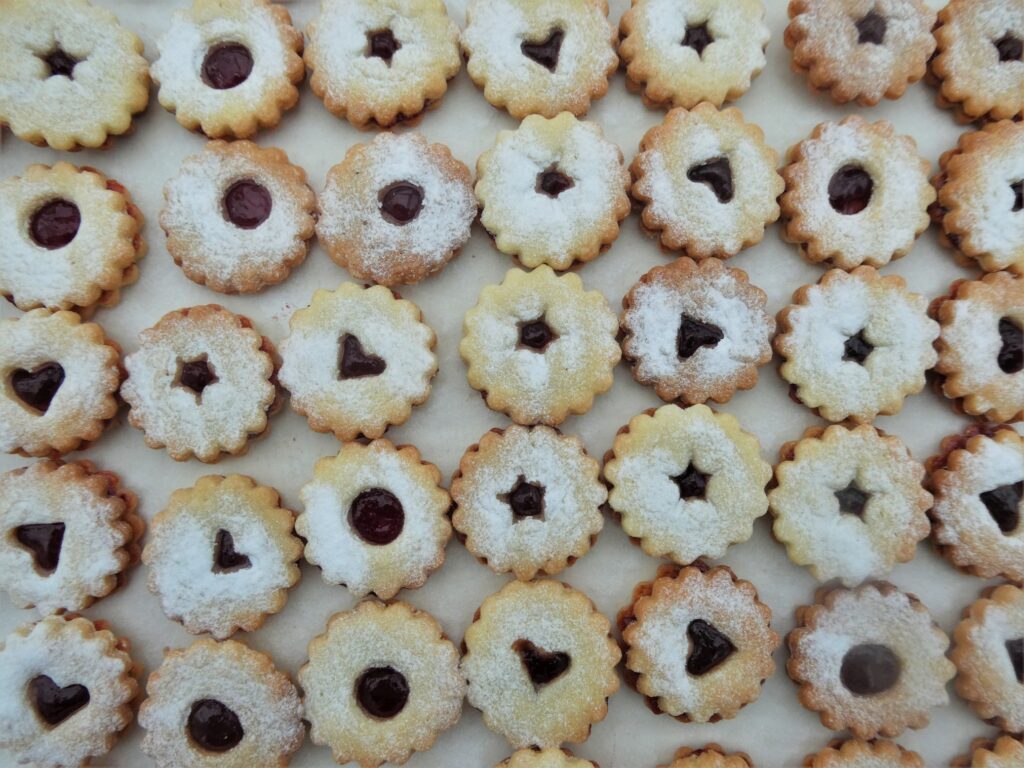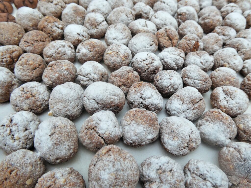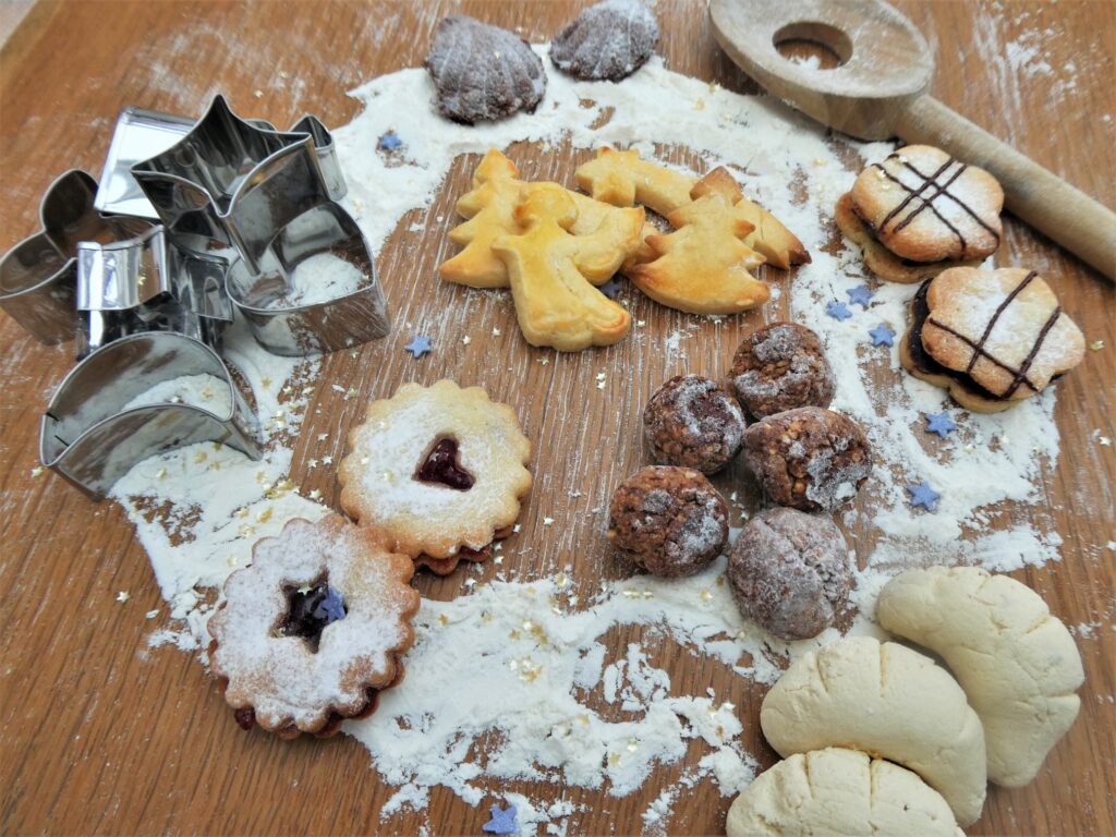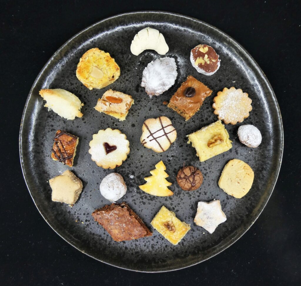 21 Sorten haben wir gemacht, Änis, Mokkawürfel, Mandeltaler, Nusskonfekt, Kokosmakronen und noch viele mehr.