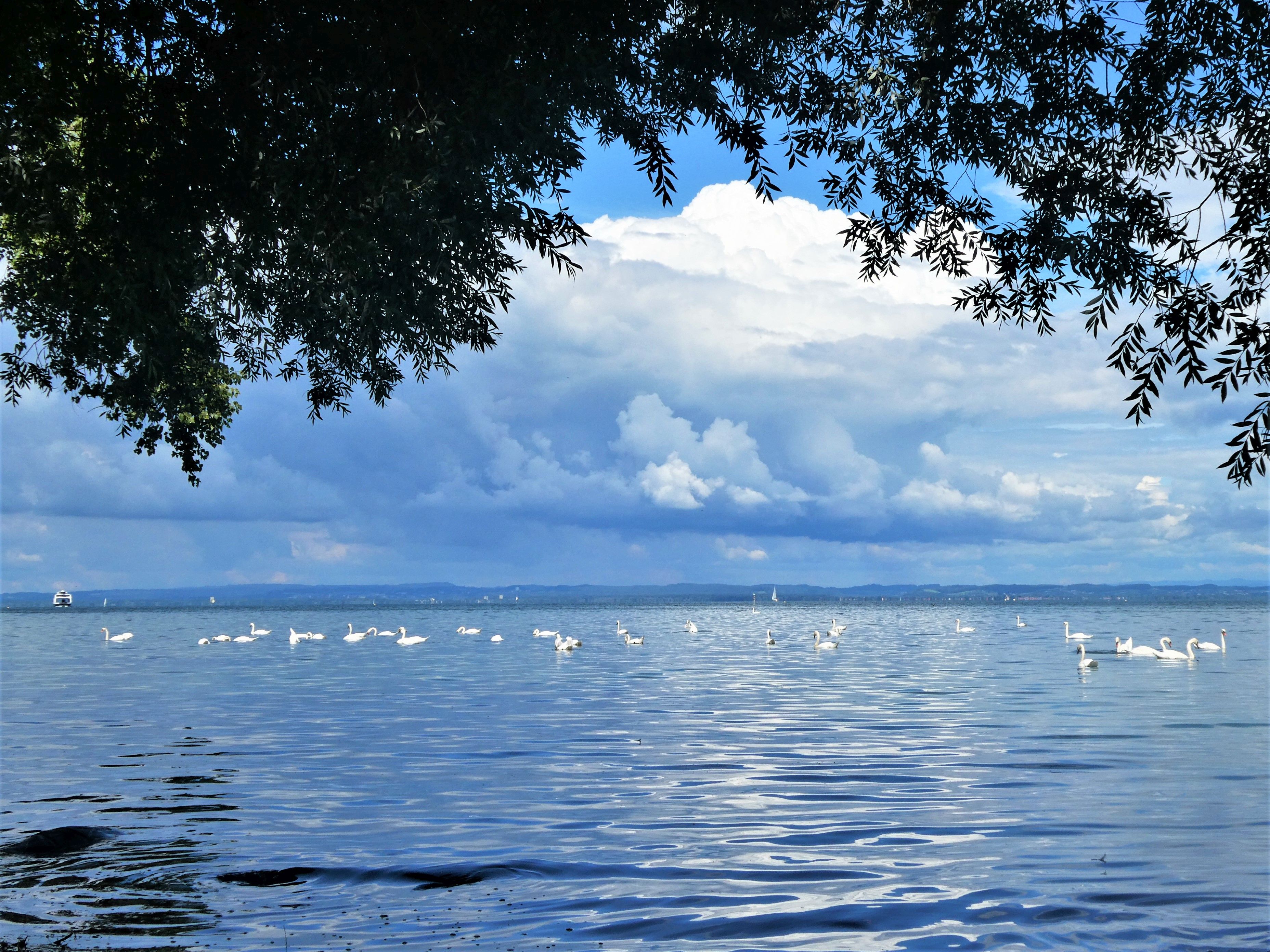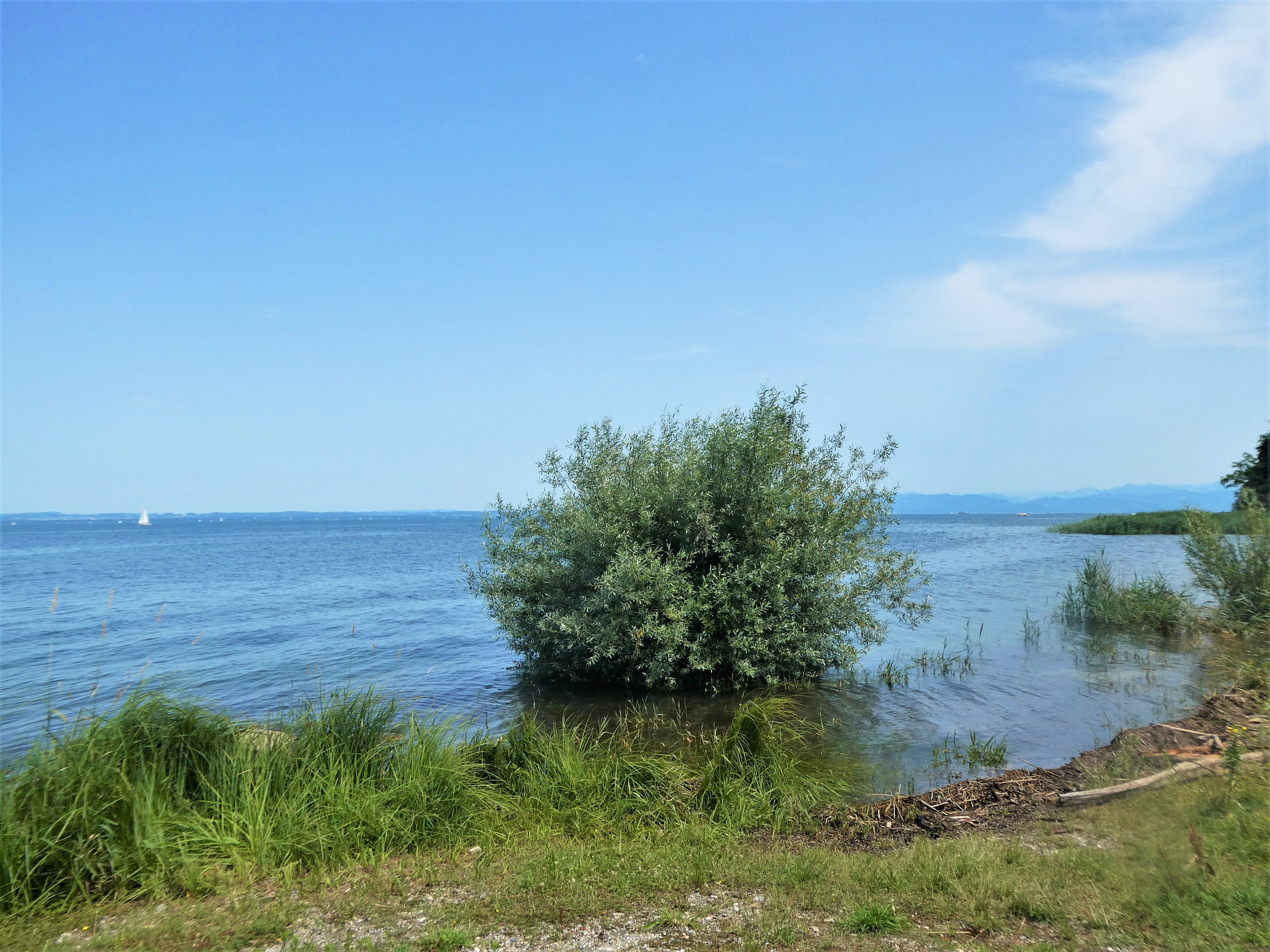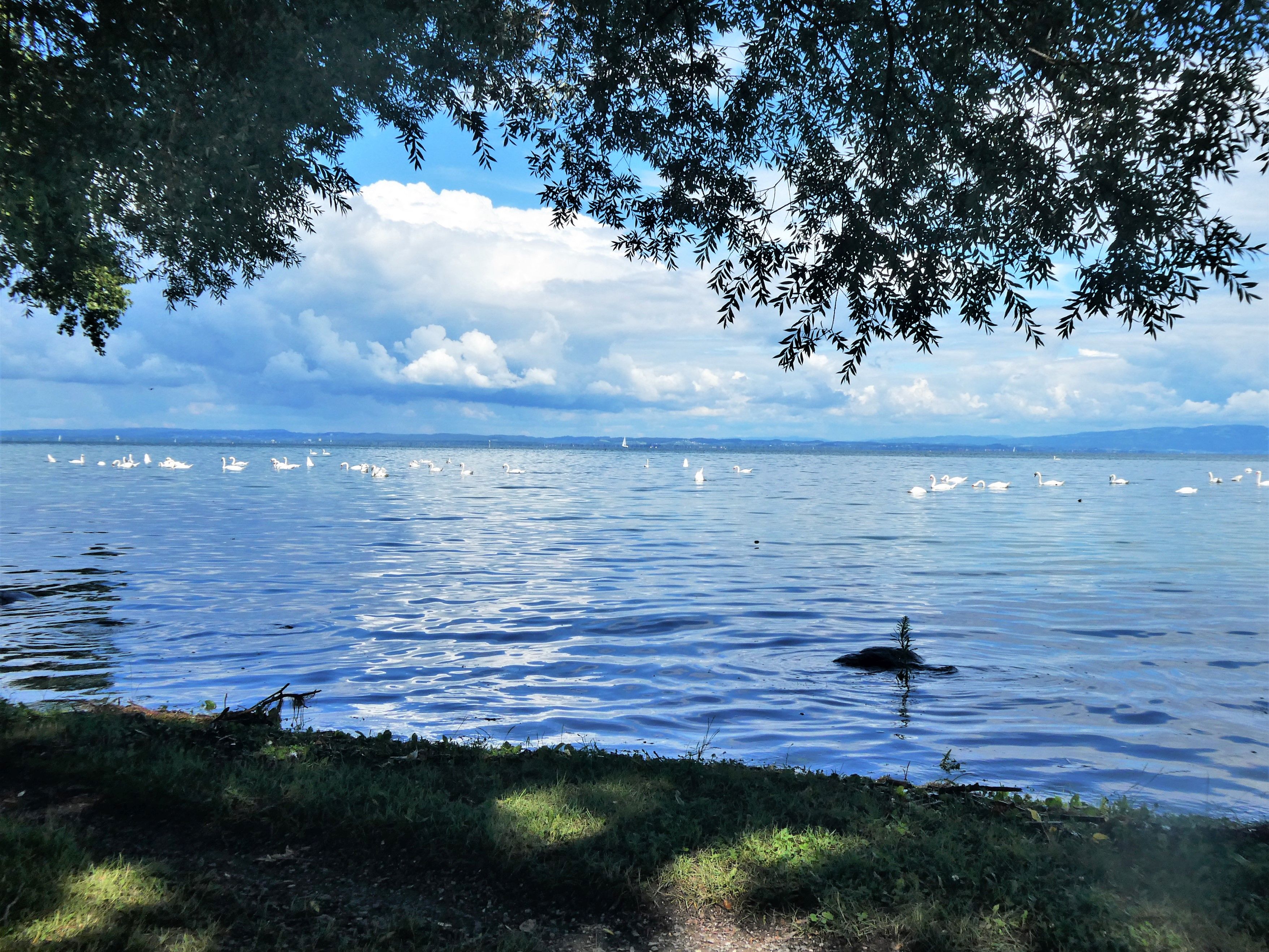 Auch der Juli war bei uns nass, aber zum Glück wurden wir von Unwetter verschont, und dazwischen gab es auch ein paar sehr angenehme Sommertage. Wenn ich bei der Enkelin bin, fährt sie momentan am liebsten mit ihrem Dreirad. Im Juli habe ich während den Regentagen viel genäht. Aus einem Lieblingshemd von ihrem Papa habe ich der Enkelin ein Röckchen genäht, das sie mit Stolz trägt. Für mich habe ich auch ein Kleid genäht und das erste Mal die Knöpfe selbst mit Stoff überzogen. Das Shirt mit passender Hose bekam ein kleiner Junge. Gespannt verfolgte ich am See den Pegelstand, trotz des vielen Regens, sind wir zum Glück verschont geblieben. Am Ufer kann man jetzt wieder nach Schwemmholz suchen. Bei uns in der Bucht habe ich bis zu 200 Schwäne gezählt, nicht zur Freude aller. Im Garten ist jetzt Erntezeit und aus den Beeren kochte ich Marmelade, fror viel Gemüse ein und pflückte üppige Blumensträusse.