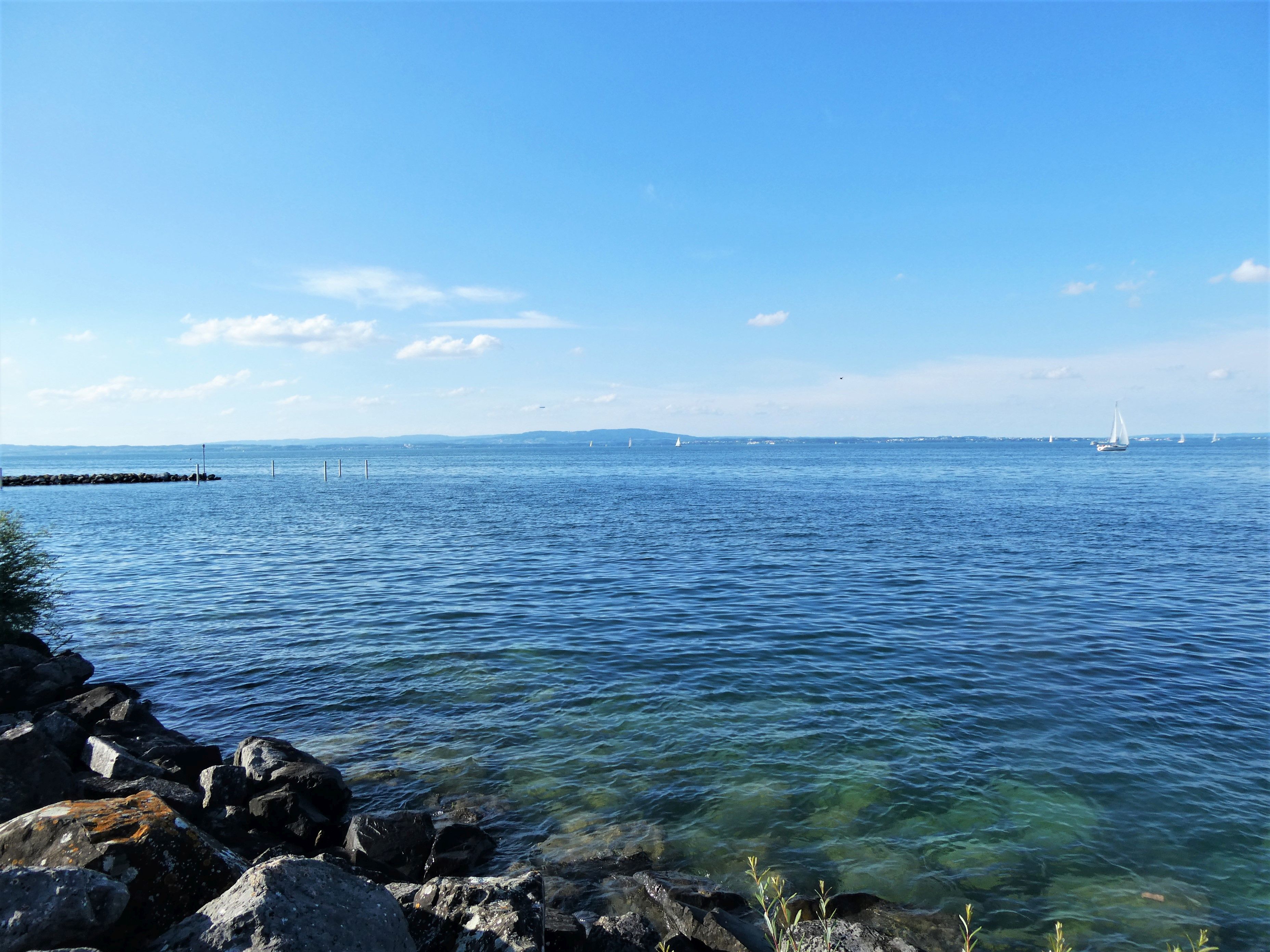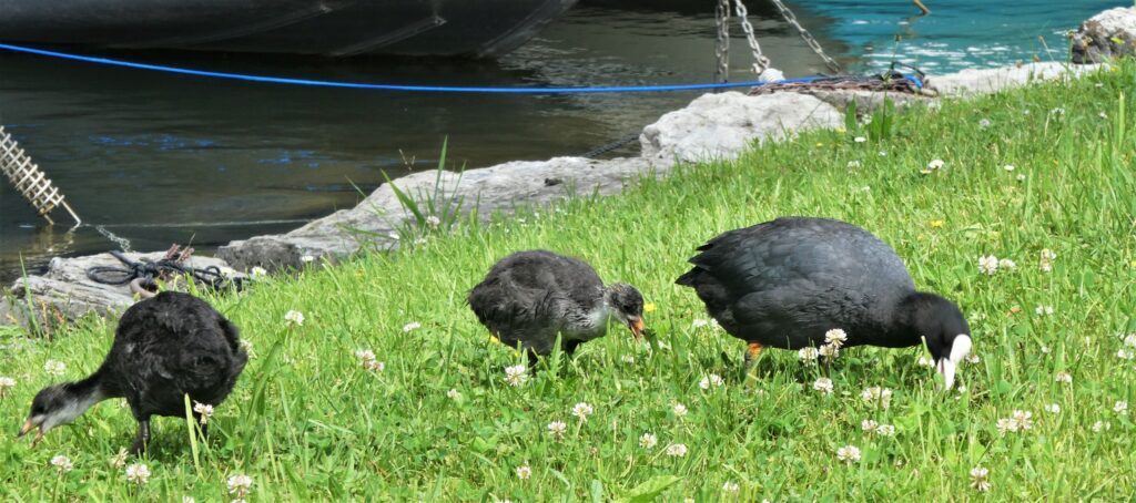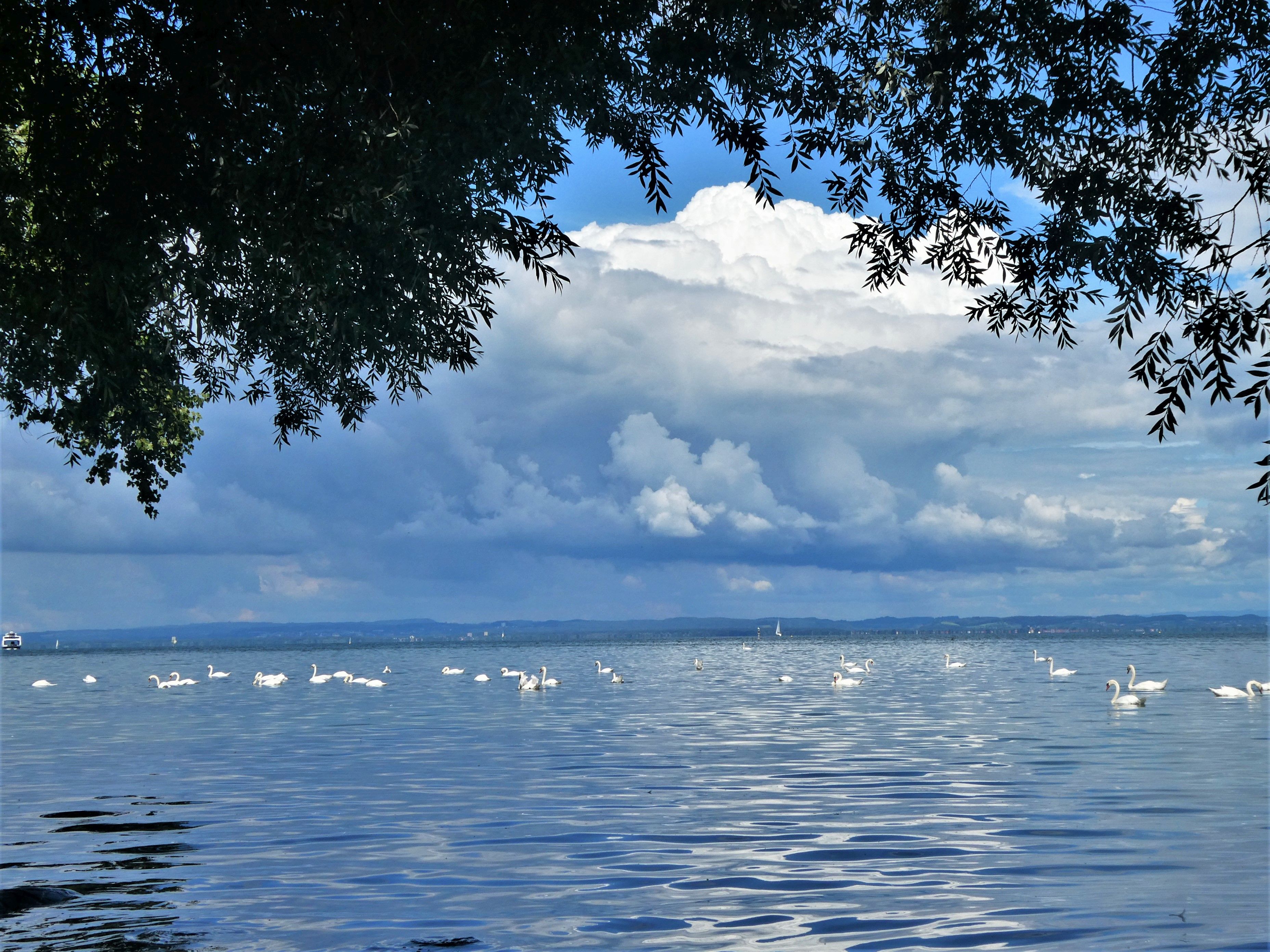 Auch der Juli war bei uns nass, aber zum Glück wurden wir von Unwetter verschont, und dazwischen gab es auch ein paar sehr angenehme Sommertage. Wenn ich bei der Enkelin bin, fährt sie momentan am liebsten mit ihrem Dreirad. Im Juli habe ich während den Regentagen viel genäht. Aus einem Lieblingshemd von ihrem Papa habe ich der Enkelin ein Röckchen genäht, das sie mit Stolz trägt. Für mich habe ich auch ein Kleid genäht und das erste Mal die Knöpfe selbst mit Stoff überzogen. Das Shirt mit passender Hose bekam ein kleiner Junge. Gespannt verfolgte ich am See den Pegelstand, trotz des vielen Regens, sind wir zum Glück verschont geblieben. Am Ufer kann man jetzt wieder nach Schwemmholz suchen. Bei uns in der Bucht habe ich bis zu 200 Schwäne gezählt, nicht zur Freude aller. Im Garten ist jetzt Erntezeit und aus den Beeren kochte ich Marmelade, fror viel Gemüse ein und pflückte üppige Blumensträusse.
