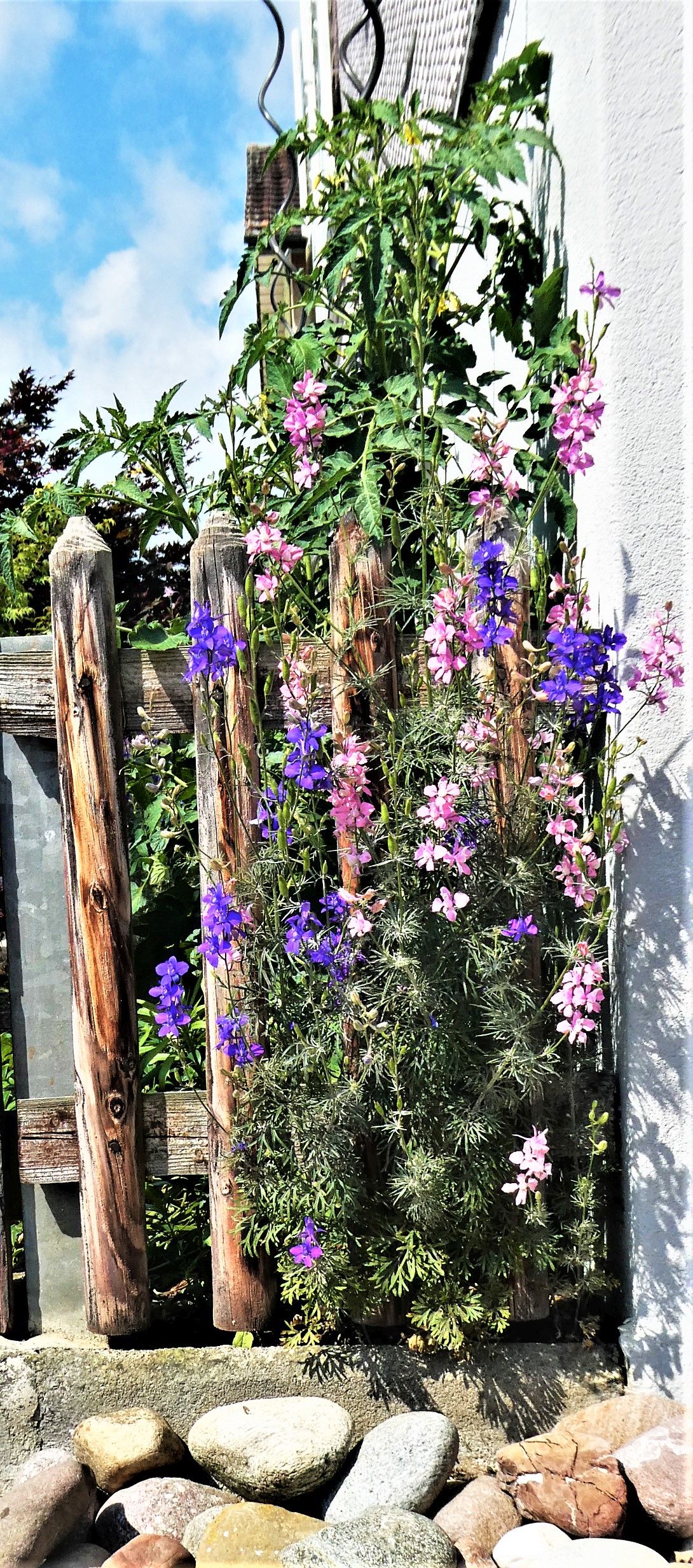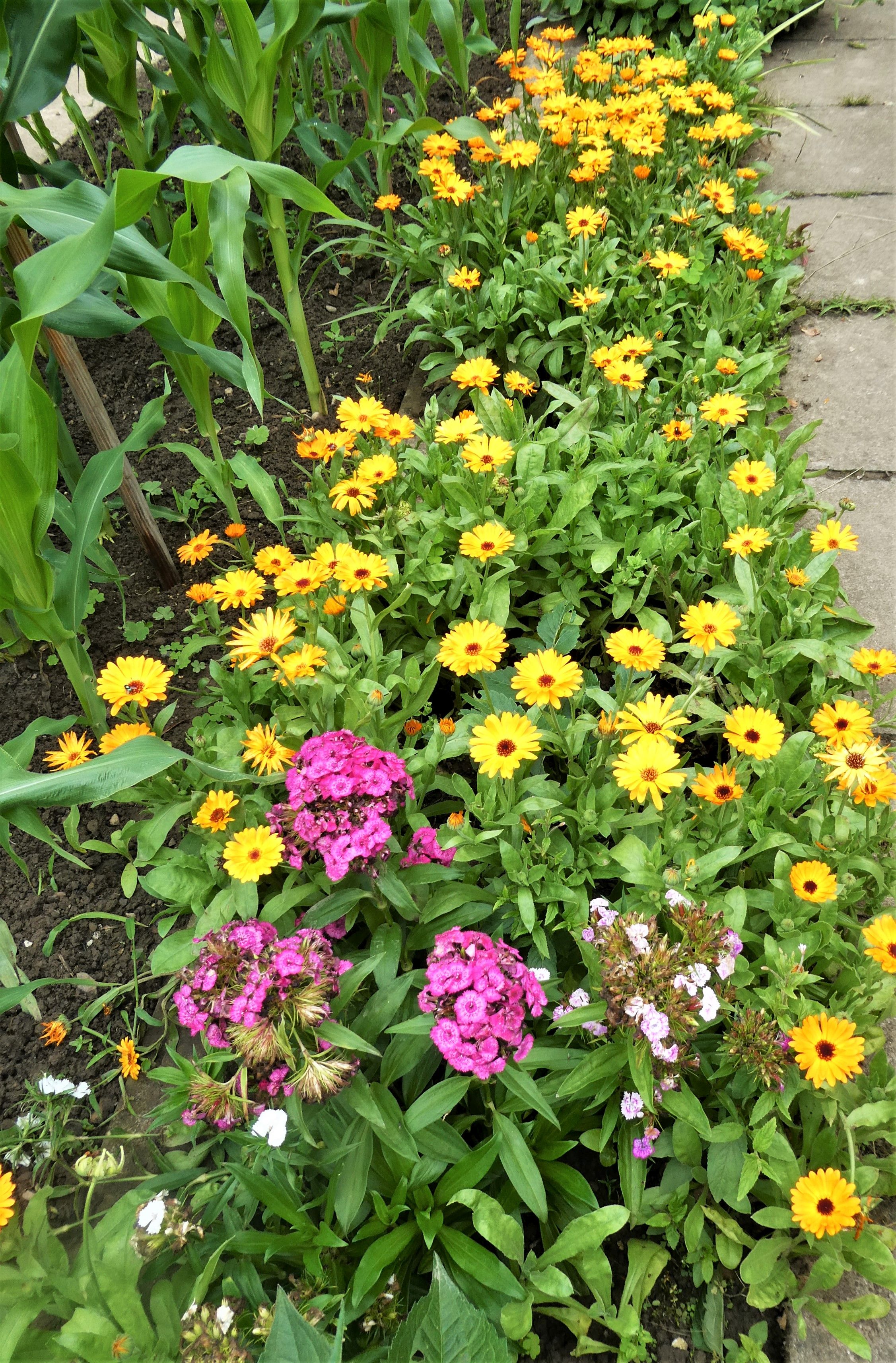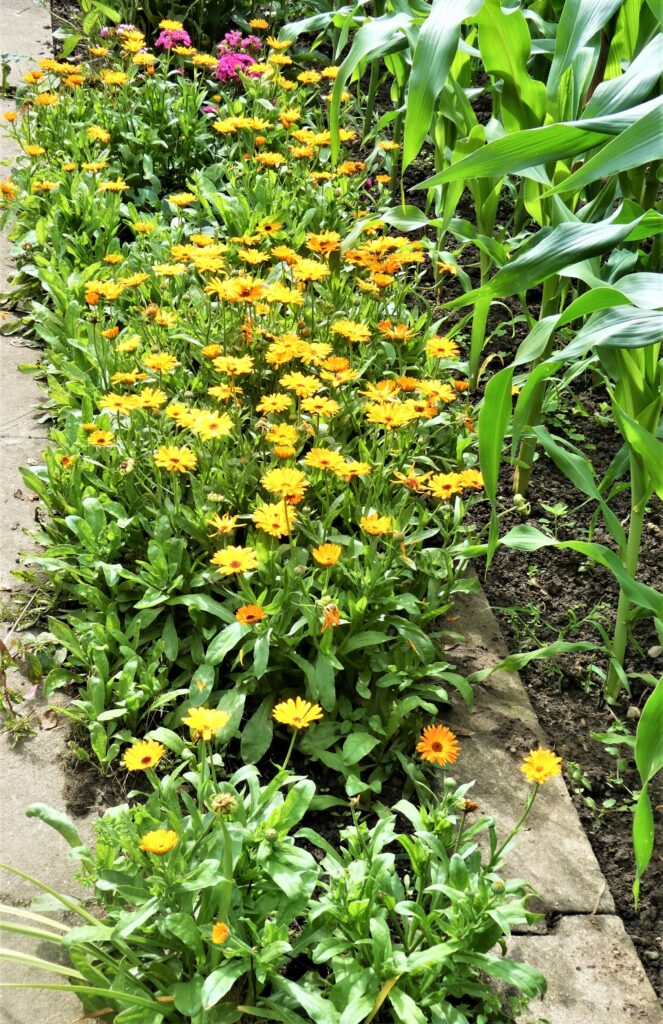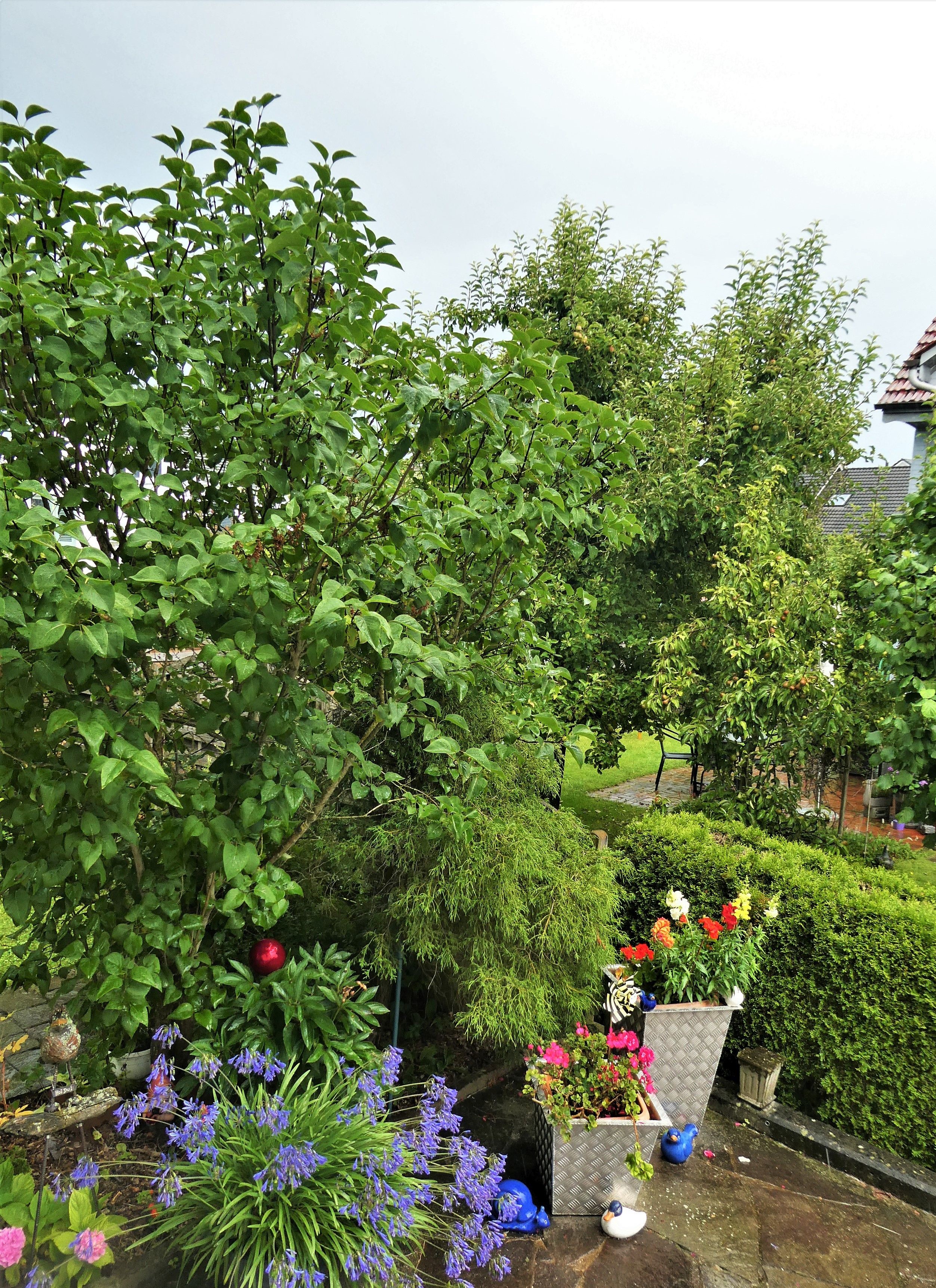 Mit wenigen Ausnahmen wurden die Pflanzen vor meinem Küchenfenster vom Petrus gegossen. Letzthin las ich einen passenden Spruch, der mich zum Schmunzeln brachte: „Was mich stört am Regen, ist die Einstellung, immer so von oben herab“. Dank des Regens ist jetzt alles schön grün und die Blumen blühen um die Wette.