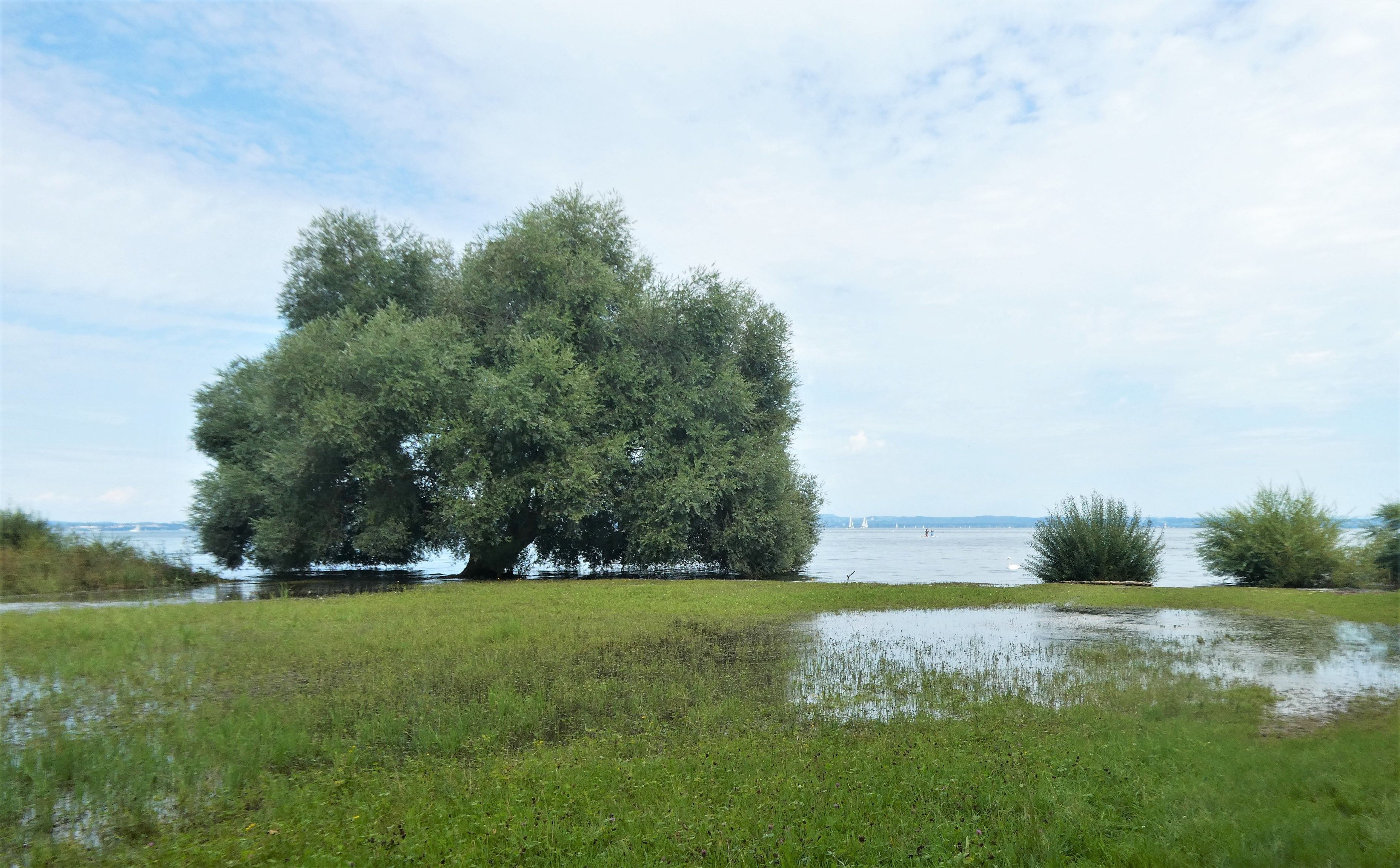 Bei meinem Lieblingsplatz, der Weide am See, war die angrenzende Wiese auch überschwemmt,
