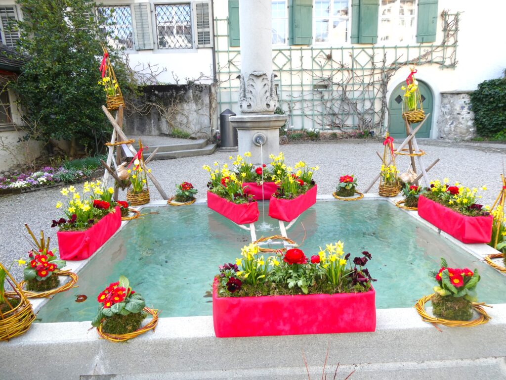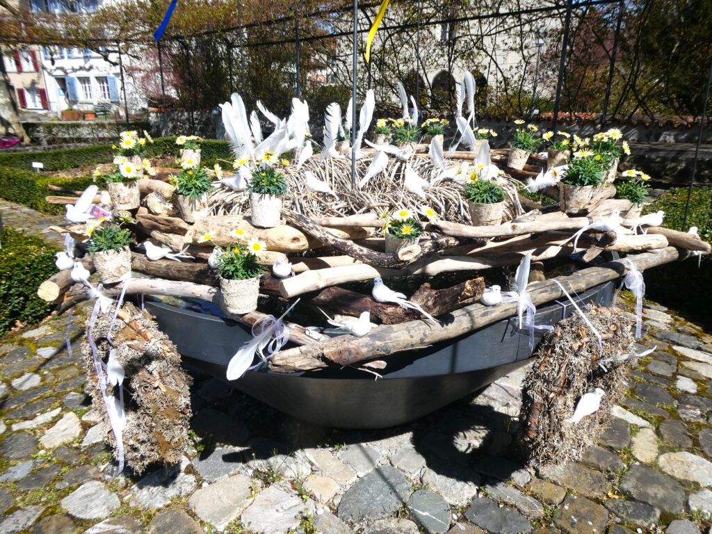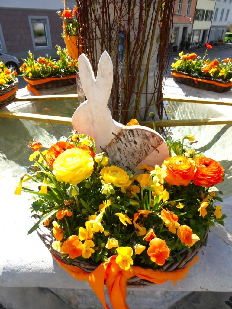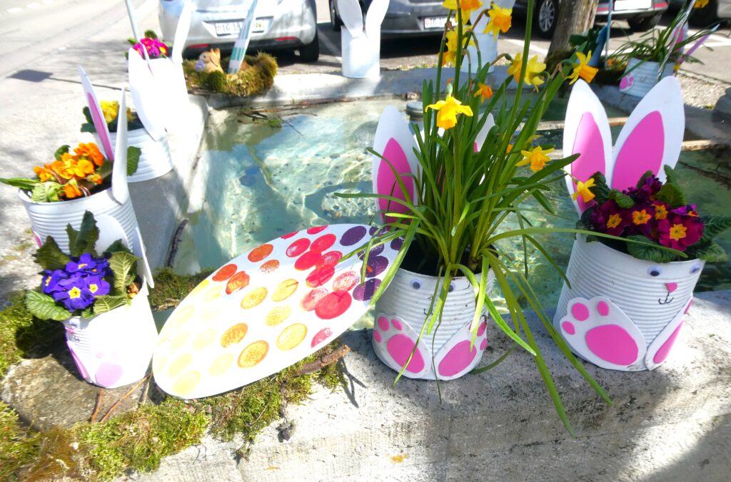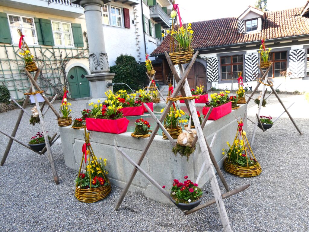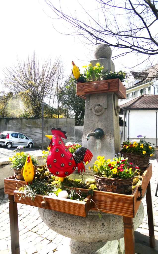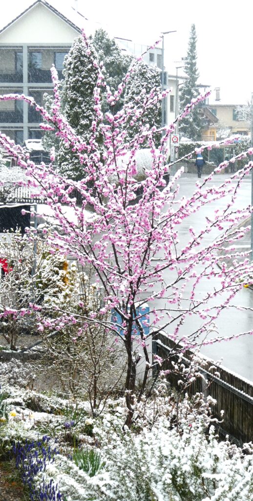 Genau wie das Sprichwort verhielt sich der April. Anfang Monat waren die Blüten noch mit Schnee bedeckt. Lange mussten wir auf den Regen warten, der viele Nordwind hat ihn fast immer verblasen. Trotzdem ist die Natur erwacht. Die Birnbäume blühten bei herrlichem Sonnenschein und die kalten Nächte richteten hoffentlich nicht zu viel Schaden an. Die Ernte im Herbst wird es zeigen. Immer wieder spazierte ich an den See, um zu sehen, wie tief der Pegelstand noch sinkt und was alles auf dem Seegrund zum Vorschein kommt. Die Graurheier sind in der Balz und ihr Geschrei ist von weitem zu hören. Eine Abwechslung war der Besuch bei den Osterbrunnen, die mit viel Liebe jedes Jahr dekoriert werden. Auch wenn auf dem Säntis noch viel Schnee liegt, sieht es bei uns im Garten schön farbig aus mit den vielen Vergissmeinnicht und Tulpen. Der Osterhase konnte die Geschenke draussen verstecken. Jetzt bin ich gespannt, was der Wonnemonat alles bringen wird.
