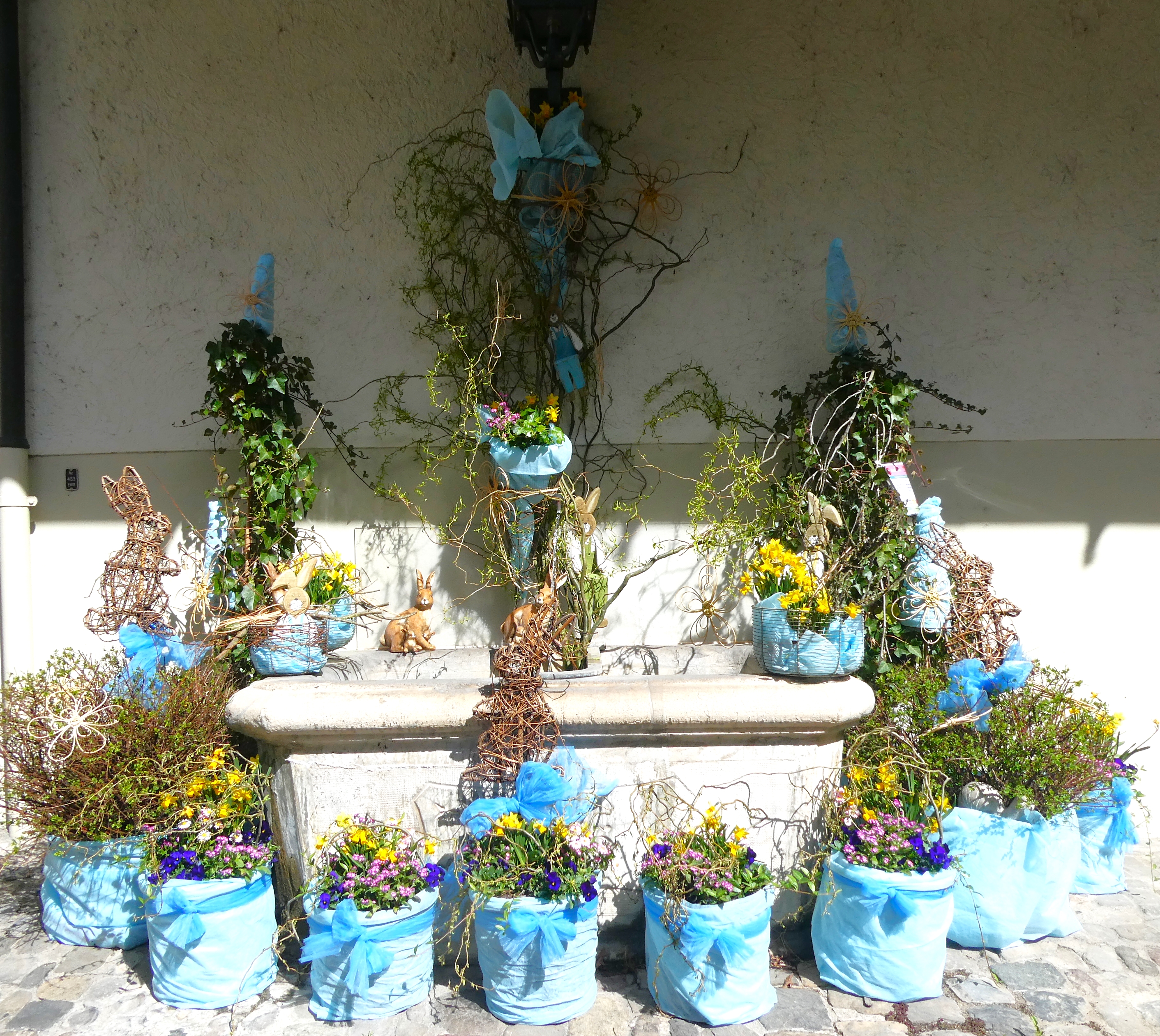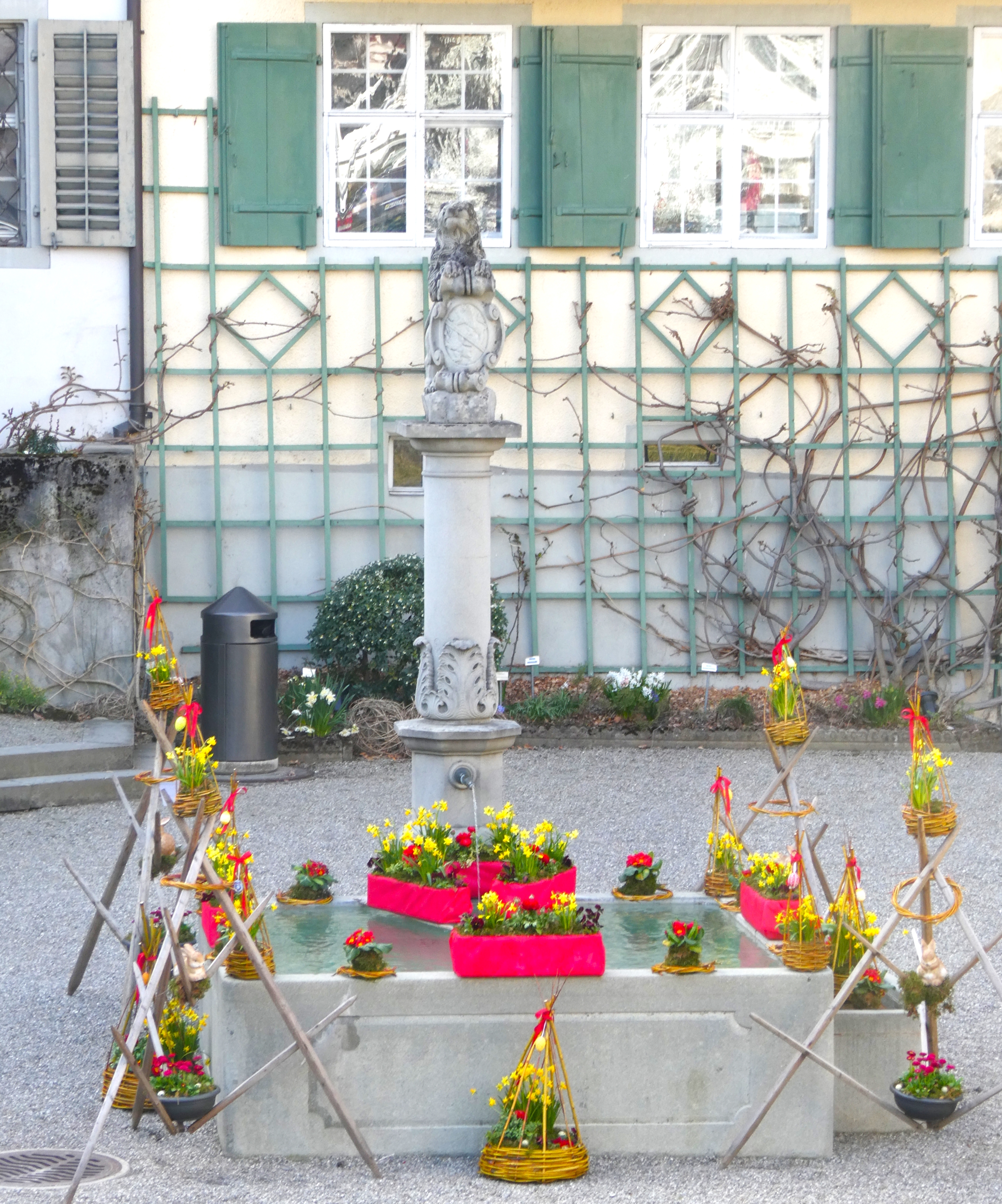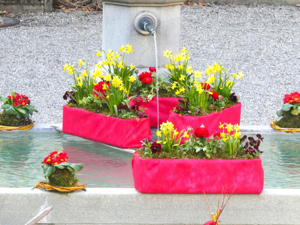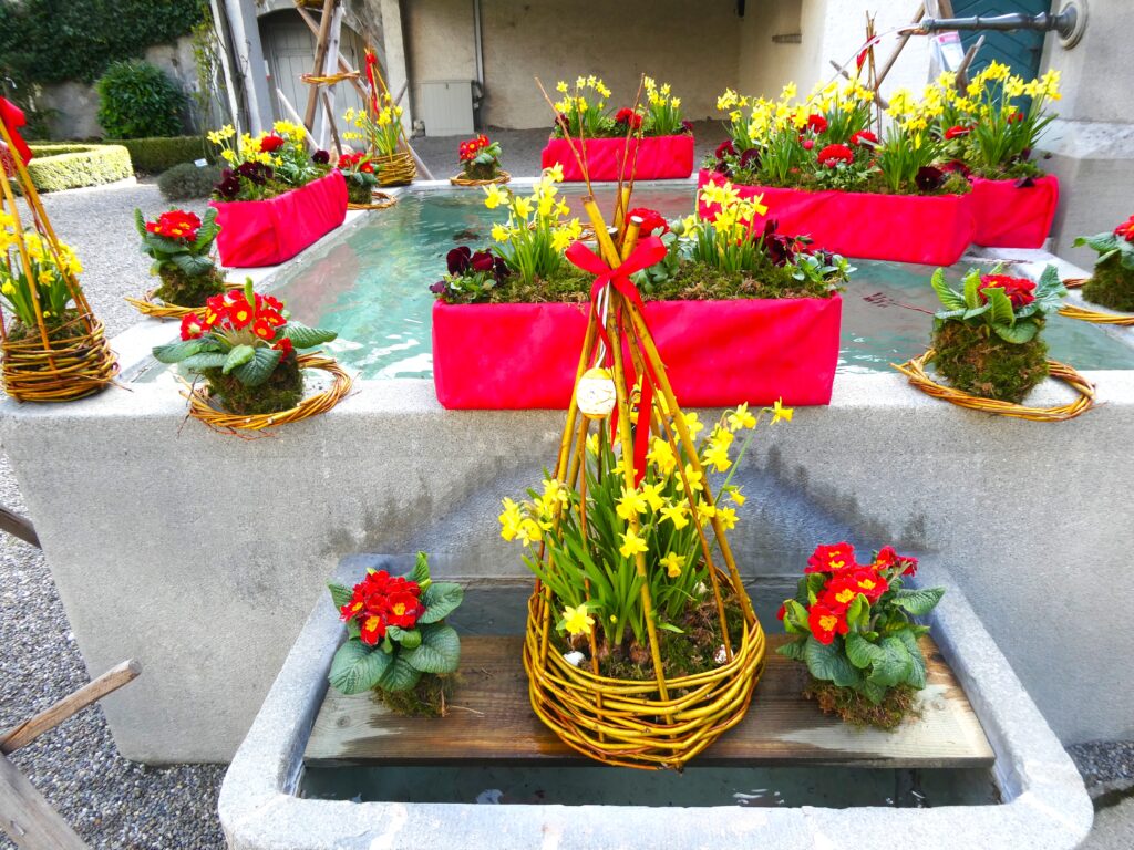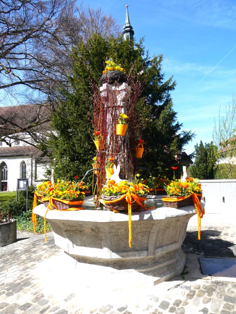 Genau wie das Sprichwort verhielt sich der April. Anfang Monat waren die Blüten noch mit Schnee bedeckt. Lange mussten wir auf den Regen warten, der viele Nordwind hat ihn fast immer verblasen. Trotzdem ist die Natur erwacht. Die Birnbäume blühten bei herrlichem Sonnenschein und die kalten Nächte richteten hoffentlich nicht zu viel Schaden an. Die Ernte im Herbst wird es zeigen. Immer wieder spazierte ich an den See, um zu sehen, wie tief der Pegelstand noch sinkt und was alles auf dem Seegrund zum Vorschein kommt. Die Graurheier sind in der Balz und ihr Geschrei ist von weitem zu hören. Eine Abwechslung war der Besuch bei den Osterbrunnen, die mit viel Liebe jedes Jahr dekoriert werden. Auch wenn auf dem Säntis noch viel Schnee liegt, sieht es bei uns im Garten schön farbig aus mit den vielen Vergissmeinnicht und Tulpen. Der Osterhase konnte die Geschenke draussen verstecken. Jetzt bin ich gespannt, was der Wonnemonat alles bringen wird.