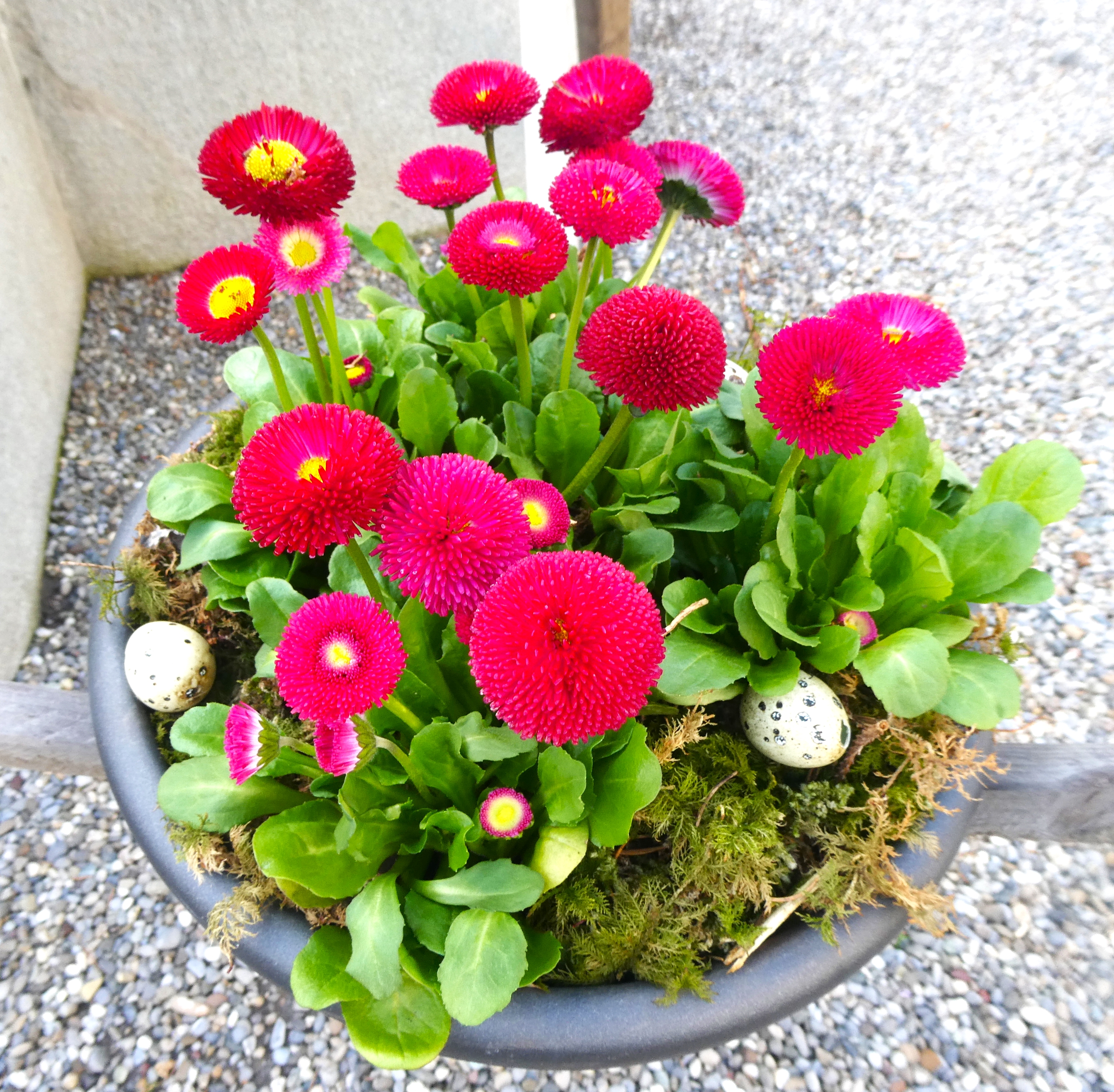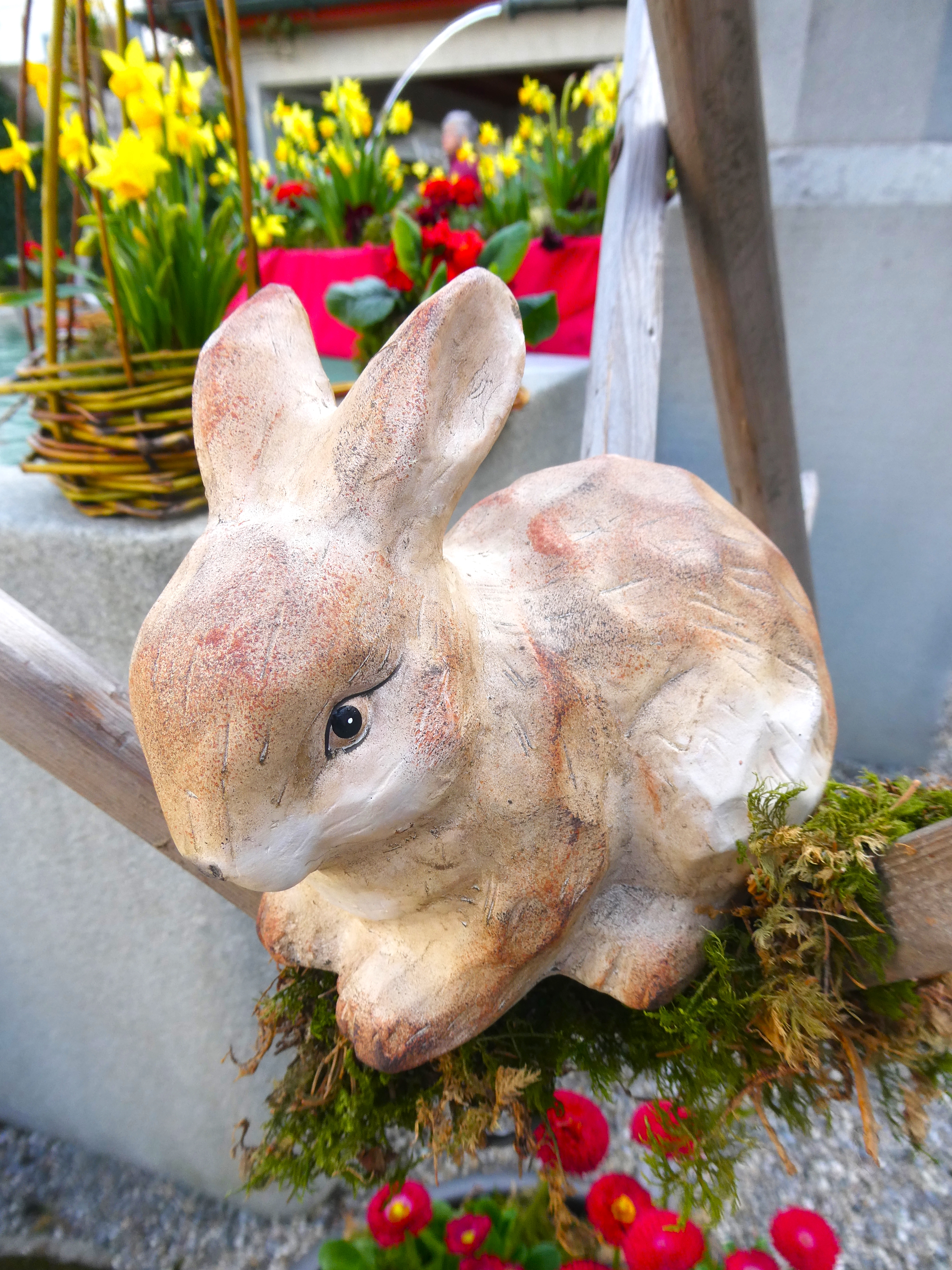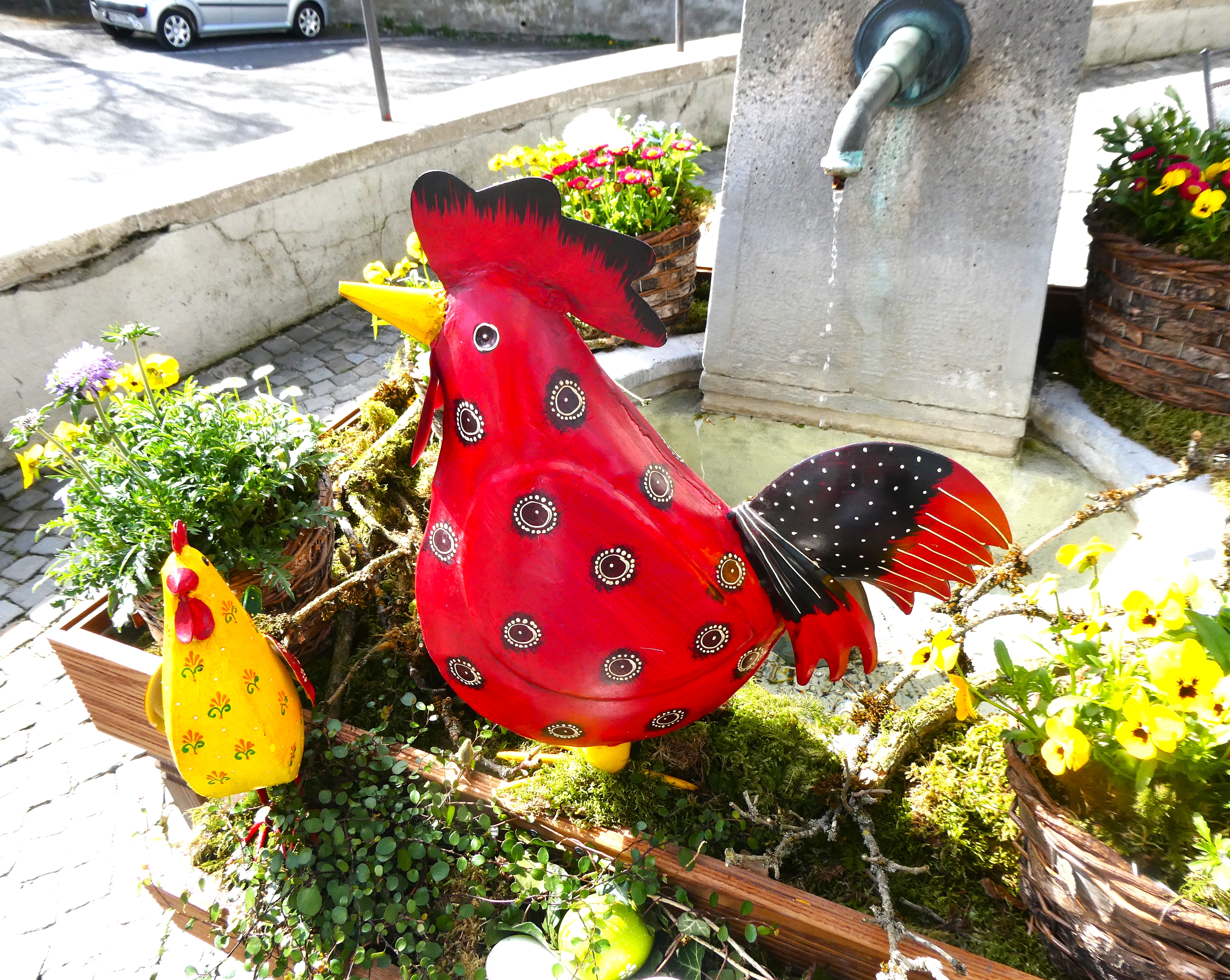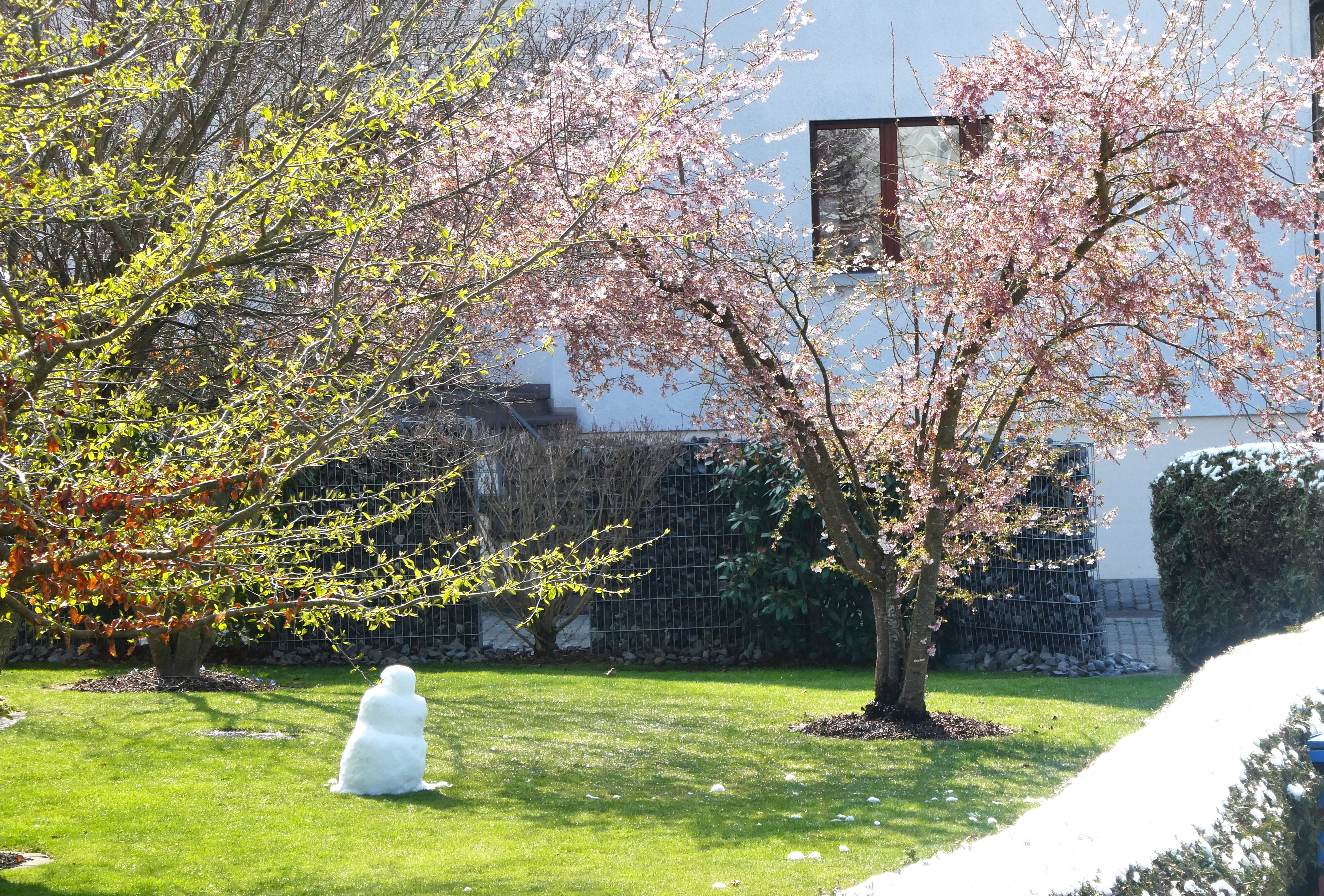 Genau wie das Sprichwort verhielt sich der April. Anfang Monat waren die Blüten noch mit Schnee bedeckt. Lange mussten wir auf den Regen warten, der viele Nordwind hat ihn fast immer verblasen. Trotzdem ist die Natur erwacht. Die Birnbäume blühten bei herrlichem Sonnenschein und die kalten Nächte richteten hoffentlich nicht zu viel Schaden an. Die Ernte im Herbst wird es zeigen. Immer wieder spazierte ich an den See, um zu sehen, wie tief der Pegelstand noch sinkt und was alles auf dem Seegrund zum Vorschein kommt. Die Graurheier sind in der Balz und ihr Geschrei ist von weitem zu hören. Eine Abwechslung war der Besuch bei den Osterbrunnen, die mit viel Liebe jedes Jahr dekoriert werden. Auch wenn auf dem Säntis noch viel Schnee liegt, sieht es bei uns im Garten schön farbig aus mit den vielen Vergissmeinnicht und Tulpen. Der Osterhase konnte die Geschenke draussen verstecken. Jetzt bin ich gespannt, was der Wonnemonat alles bringen wird.