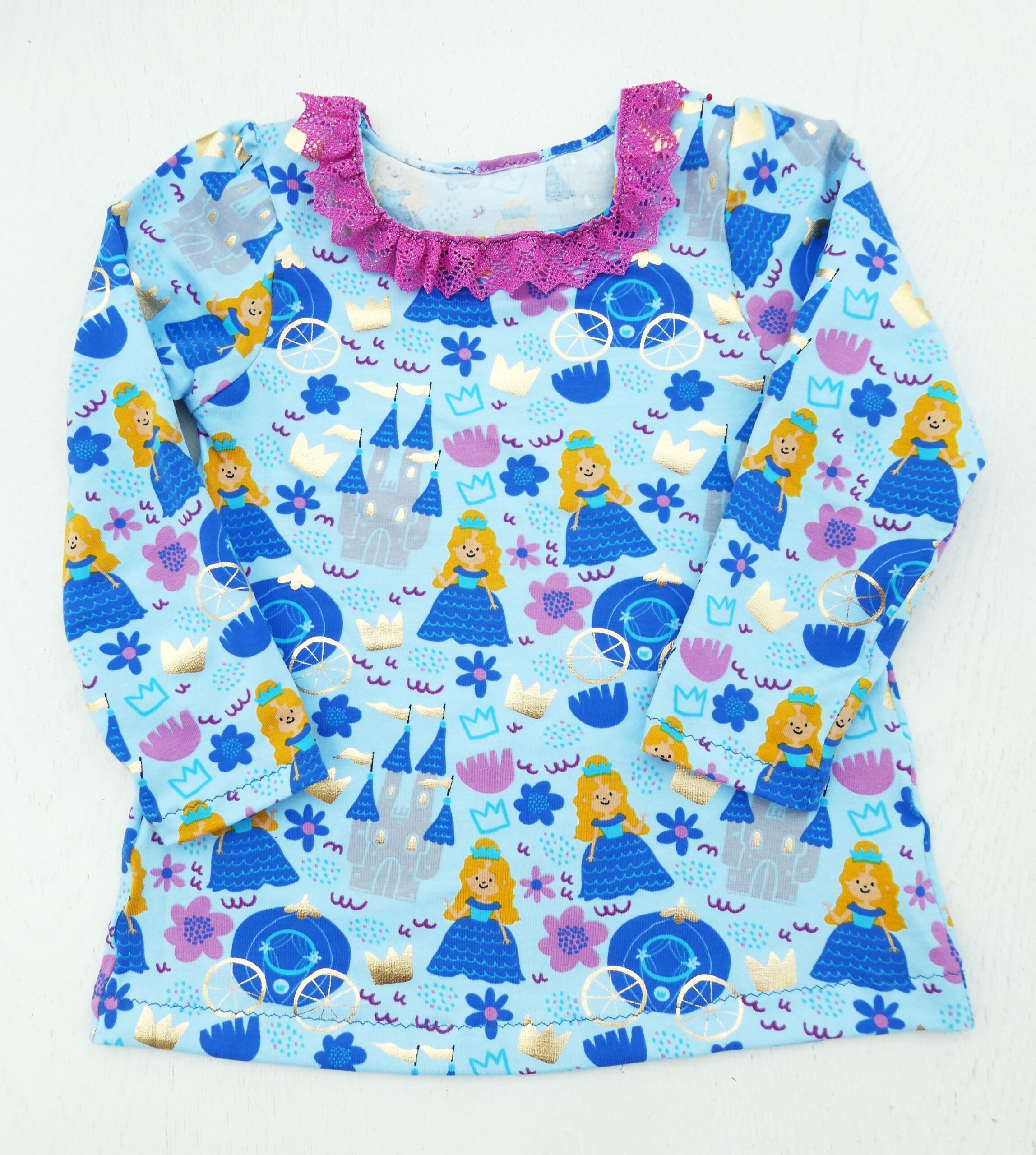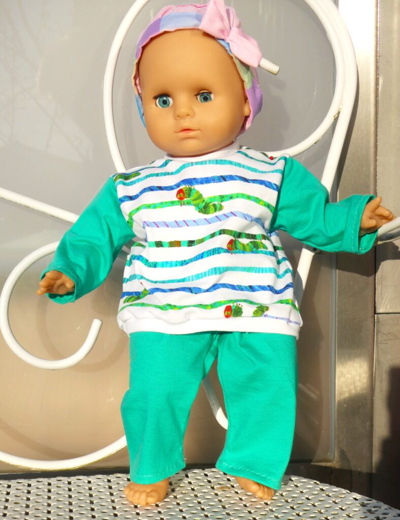 Im April nähte ich viel, darum gibt es eine separate Collage. Das meiste nähte ich für die Enkelin, sie ist aber auch eine sehr dankbare Abnehmerin und wenn ihrer Puppe einen Pullover aus dem gleichen Stoff hat wie sie, dann freut sie sich ganz besonders. Es entstanden Pyjamas mit langen Reissverschlüssen, was immer eine besondere Herausforderung ist für mich. Das erste Shirt mit dem Raupe Nimmersatt-Stoff war zu gross, darum habe ich noch ein zweites genäht. Leggins sind schnell zu kurz bei ihrem Wachstum, da ist Nachschub nötig. Das Shirt mit den lachsfarbigen Ärmeln ist aus UV-Magic-Stoff, der sich an der Sonne farbig wird. Der Stoff war schwierig zu fotografieren, weil man das Gelbe auf den Bildern fast nicht sieht. Auch auf dem Prinzessinenshirt sieht man die goldig glänzenden Kronen nicht gut. Die Collage habe ich hauptsächlich für mich gemacht, damit ich nachschauen kann, was ich aus welchem Stoff genäht habe.