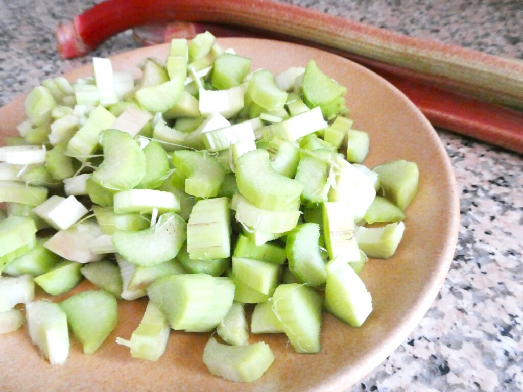 300 gr gerüsteter Rhabarber in kleine Stücke geschnitten