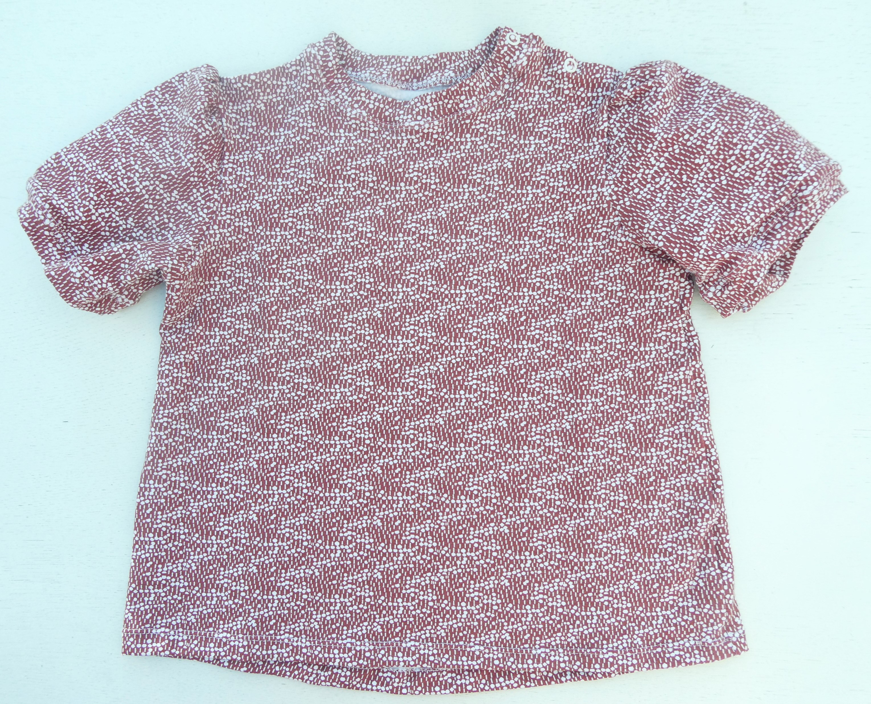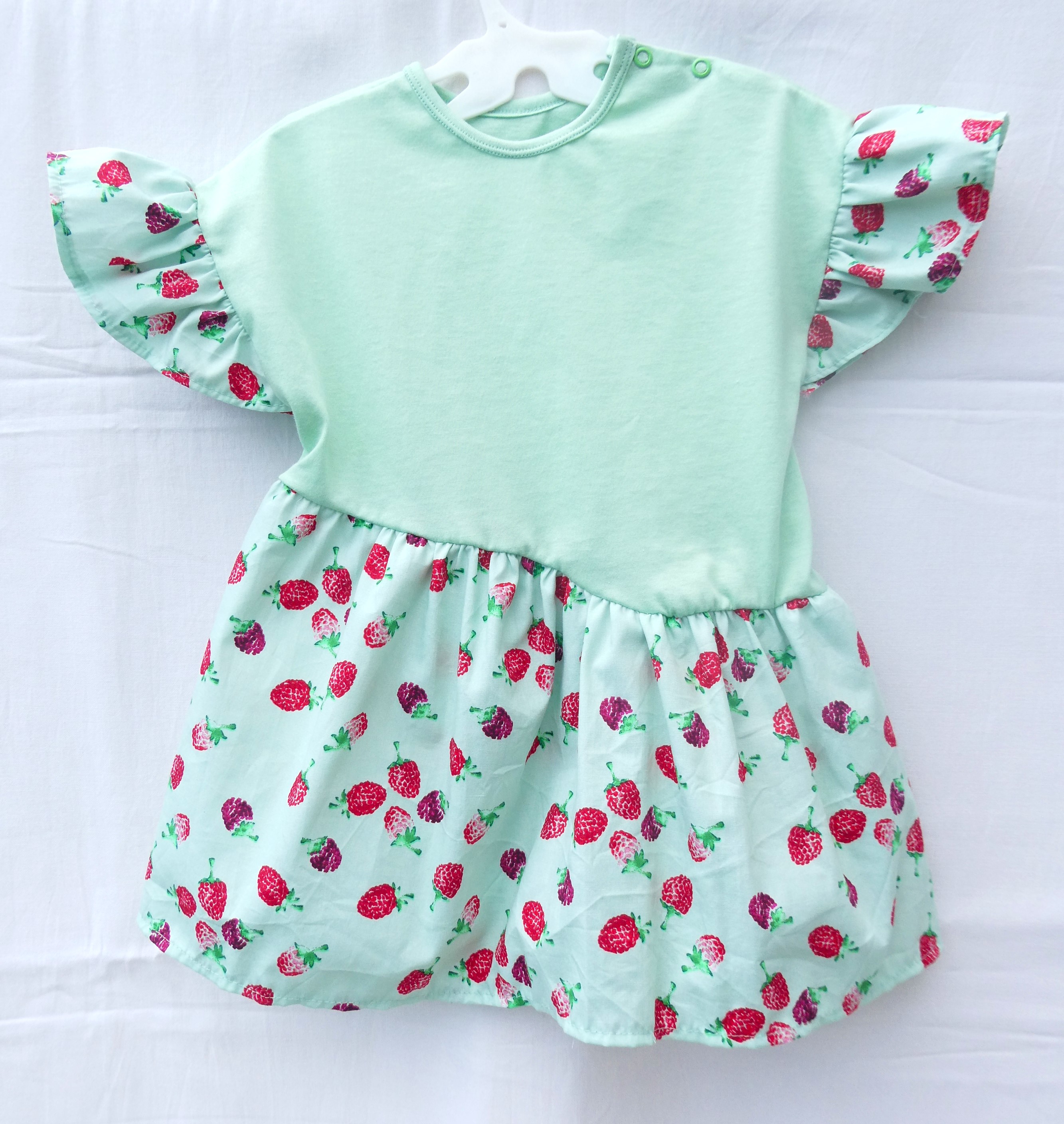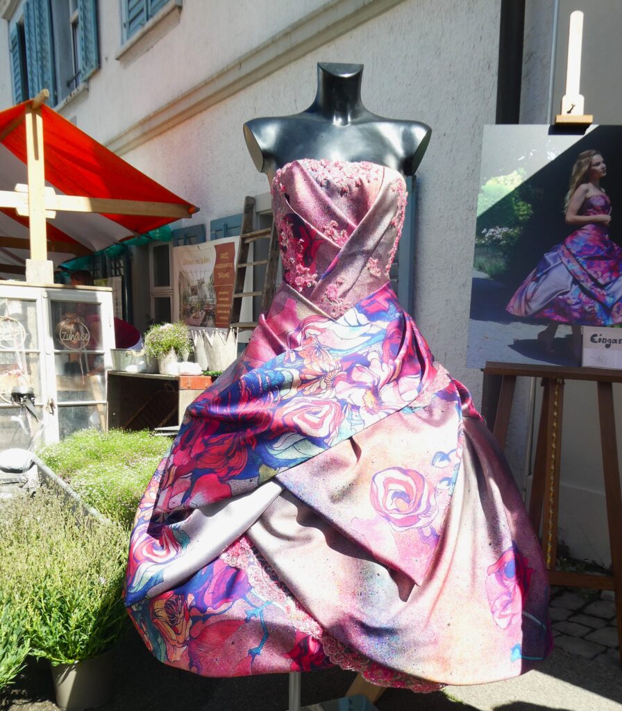 Das T-Shirt auf dem ersten Foto ist aus festerem Jersey. Weil es am Morgen doch noch recht frisch war, nähte ich für die Enkelin eine leichte Sommerjacke. Die praktischen Kängurutaschen sind gross genug, dass die kleine ihr geliebtes Kuscheltier immer mitnehmen kann. Das Bolero nähte ich, weil es mir so gut gefällt. Leider trägt die Enkelin momentan nicht so gerne meine selbst genähten Kleider. Wenn ich sie frage, ob wir eines der schönen Kleidchen anziehen sollen, gibt sie mir zur Antwort: „die sind alli Zchli“! Na ja, immerhin hatte ich Spass beim Nähen. Für mich gab es wieder ein leichtes Kimono Tree, schnell gemacht und der Schnitt hat sich für mich bewährt.