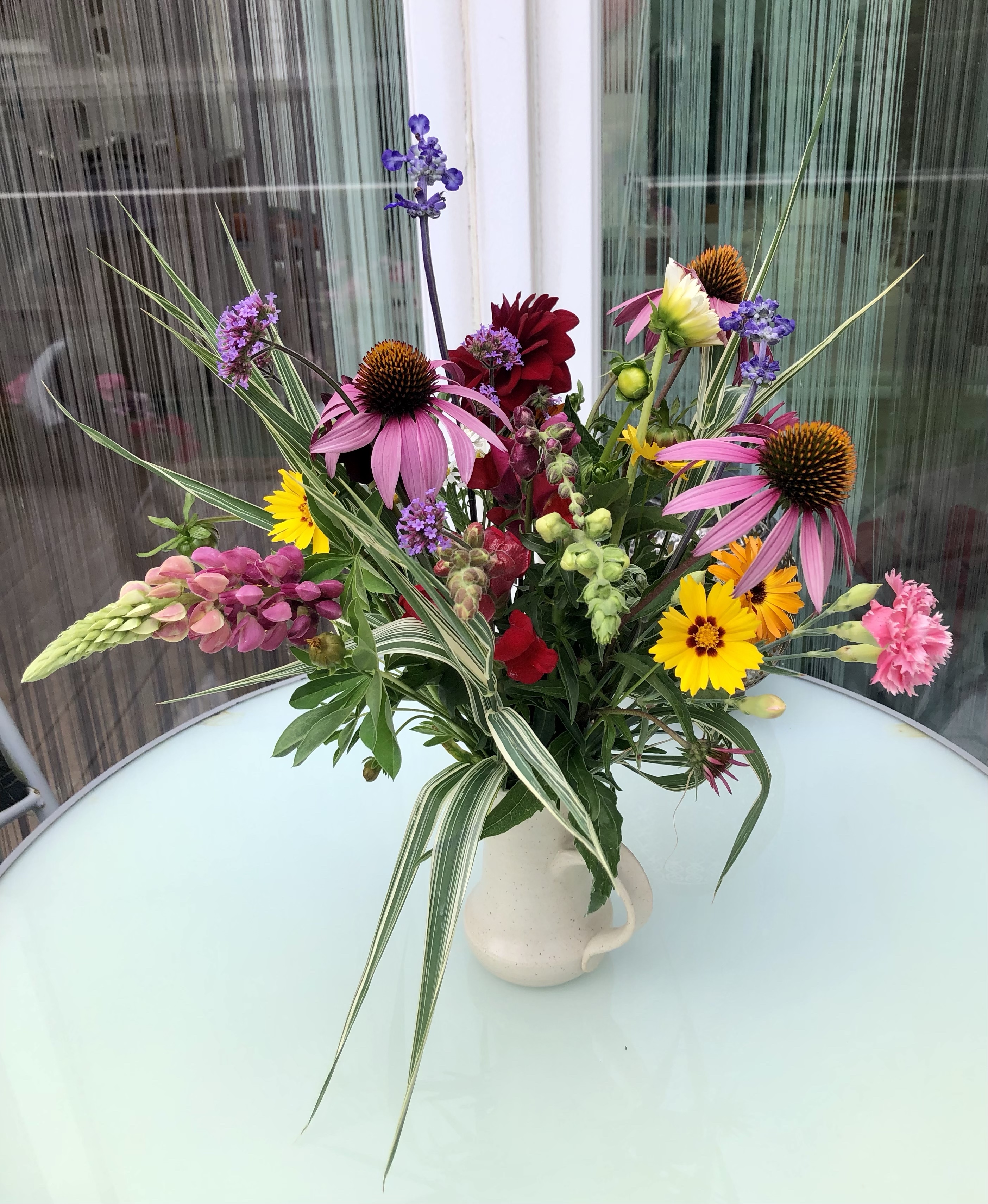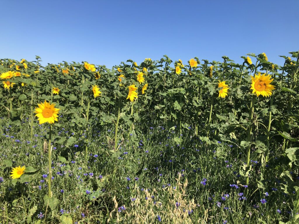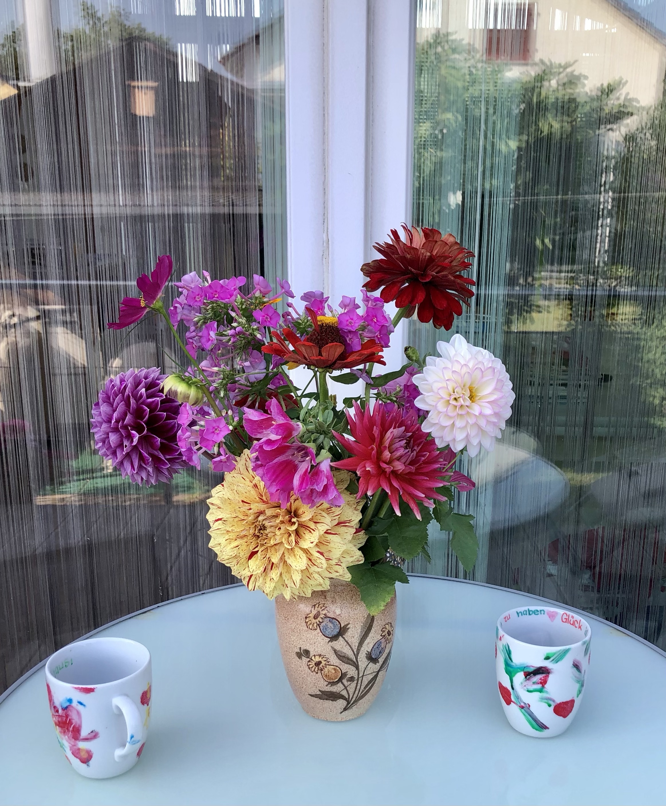 Laut Meteorologen ist es der heisseste Juli seit Messbeginn – kommt mir langsam vor, als ob ich das bald für jeden neuen Monat schreiben muss. Zum Glück gab es aber doch ein paar kühle Nächte, sodass man das Haus kühl halten konnte. Die Regenmenge war sehr gering und so musste man den Garten fleissig giessen. Ab und zu sieht man einen Schmetterling bei uns im Garten, das Taubenschwänzchen kommt sogar regelmässig vorbei. Ich besuchte die Tanzaufführung „Amazonia“ meiner Tochter. Zu den eindrücklichen Fotografien des Amazonasgebiet von Sebastião Salgado und den eigens für diese Aufführung komponiert Flötenklängen von Andreas Stahel tanzten die Schüler eine sehr unterhaltsame, eindrückliche und sehr stimmige Aufführung, die mir sehr gut gefallen hat. Wenn man jetzt mit dem Velo unterwegs ist, kann man an wunderschönen Blumenwiesen und Sonnenblumenfelder vorbeifahren. Inspiriert von Nanni, habe ich versucht Zucchini, von denen es zurzeit mehr als genug gibt, zu fermentieren. Von dem Resultat bin ich noch nicht so überzeugt. An den warmen Tagen mache ich vorwiegend sommerliche Salate mit frischen Zutaten aus dem eigenen Garten, denn zum Kochen ist es einfach zu heiss. Einen wunderbaren Sommerstrauss habe ich von meiner Tochter erhalten, und einen zweiten von meinem Mann aus dem Garten. Der Sturm hat nicht nur unseren Ampelschirm geknickt, sondern auch einige schöne Blumen. Das Sonnenuntergansfoto ist von einer Abendfahrt auf dem See.