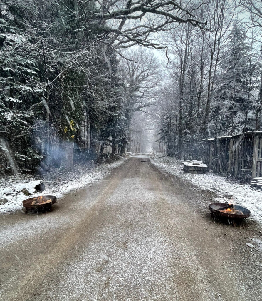Am Abend vor unserem Sonntagsspaziergang war ein Teil der Waldwege mit Feuerschalen am Wegrand markiert und zeigte den Besuchern den Sternenweg zur Waldweihnacht.