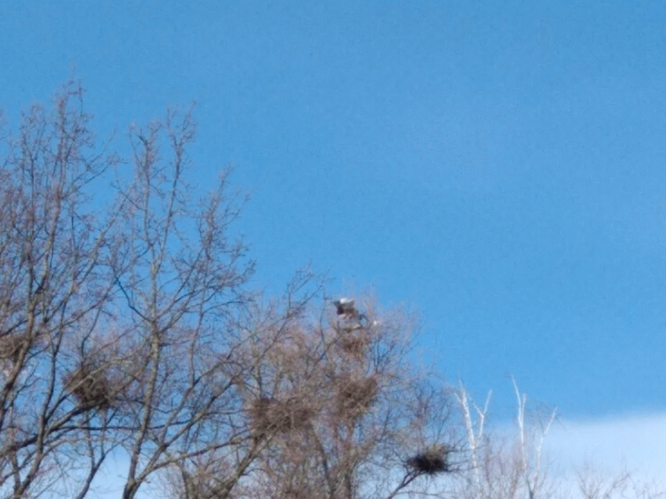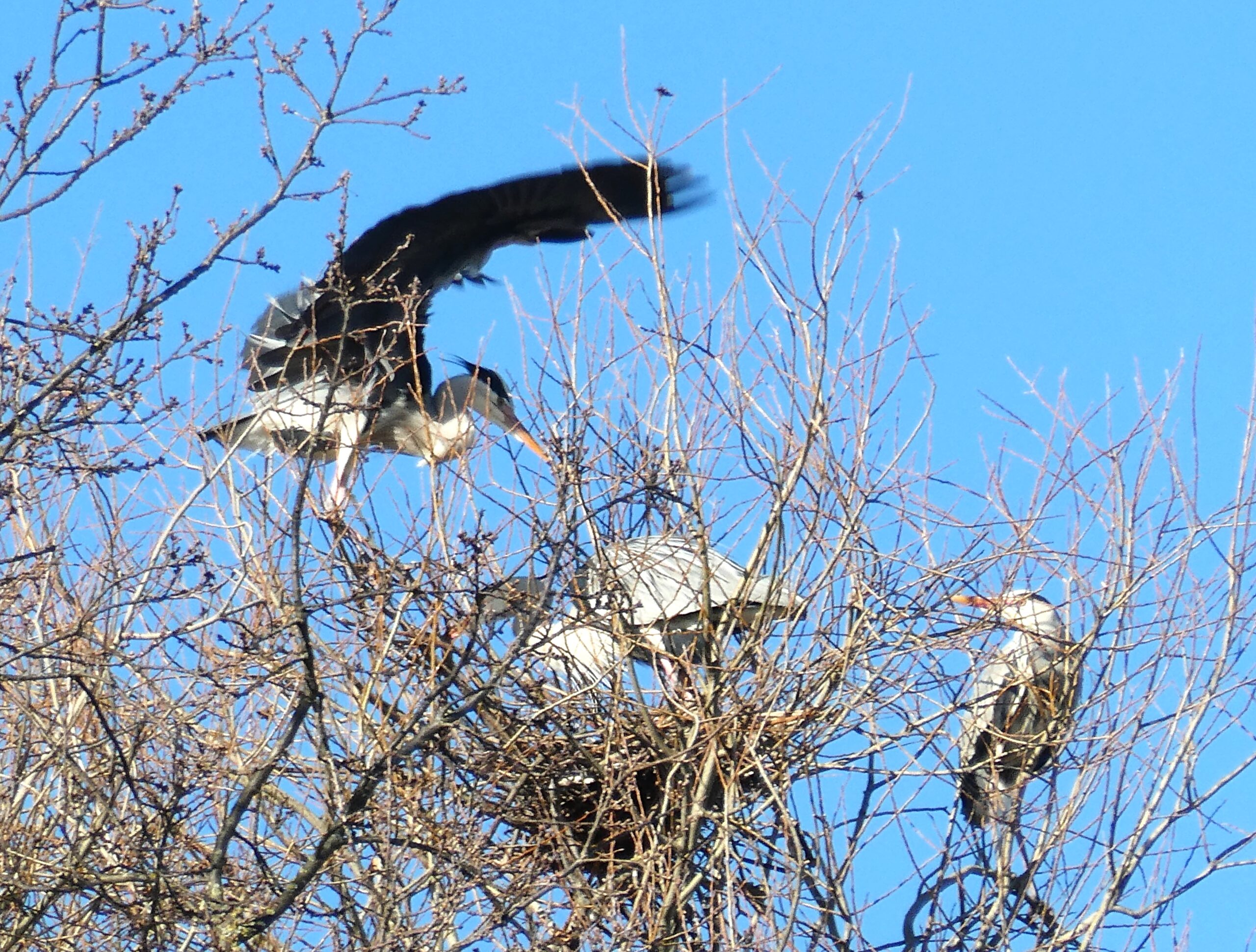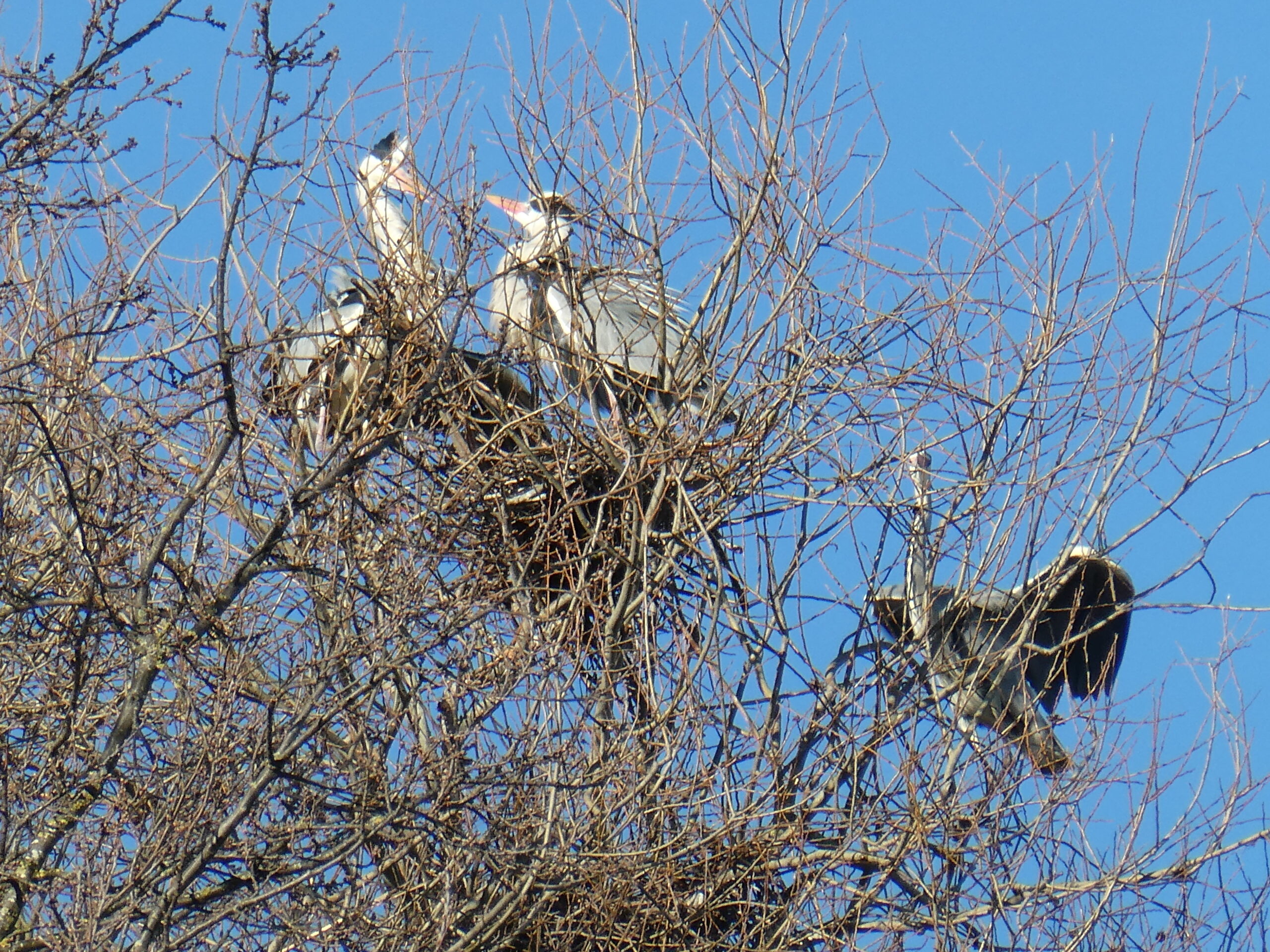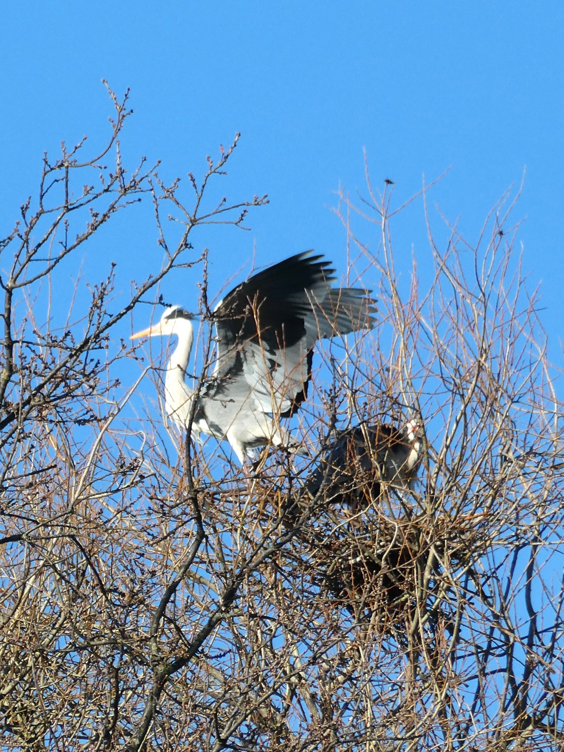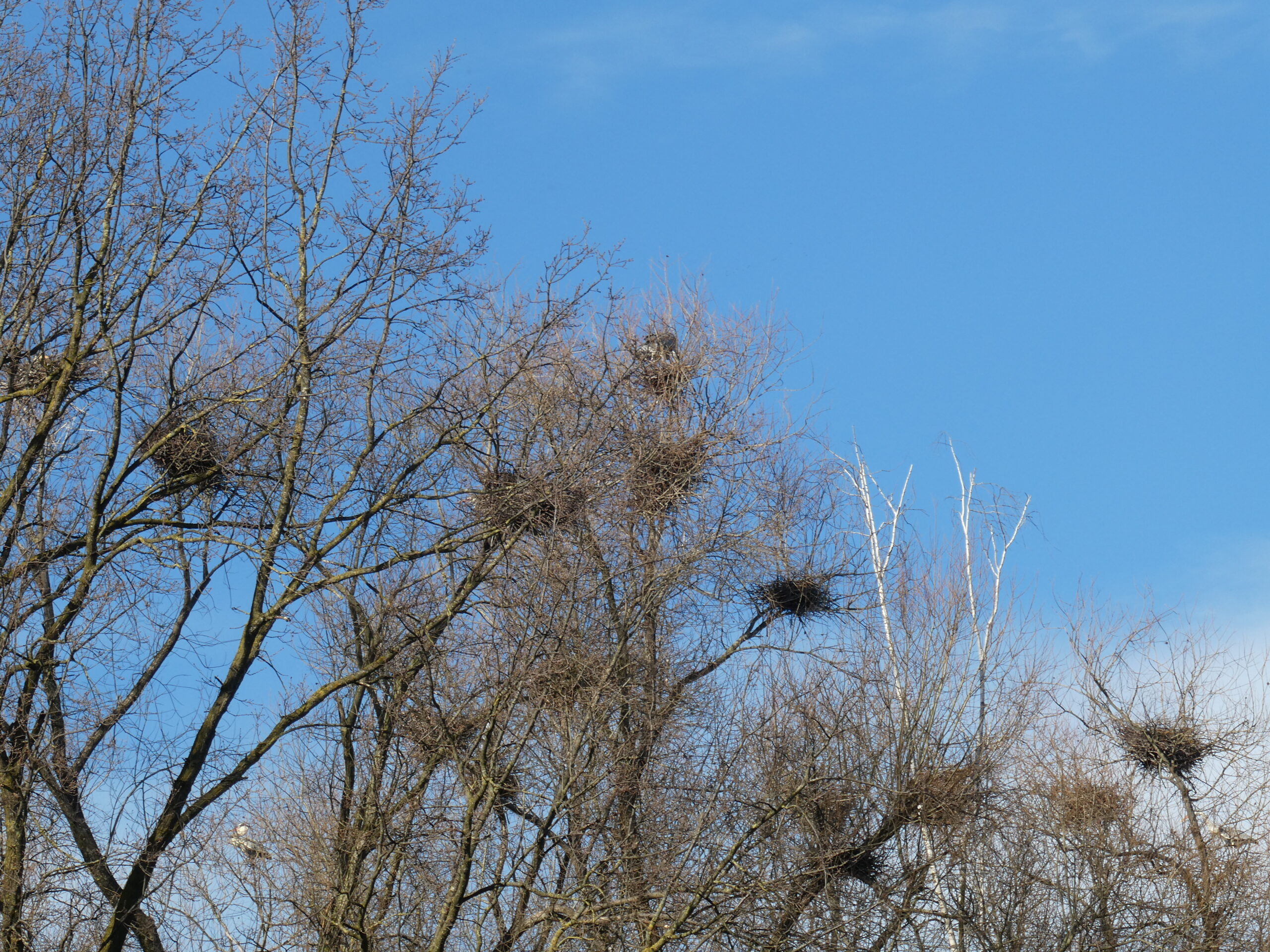 Die vielen schwarzen Punkte auf dem angrenzenden Baum sind alles Kormorane, die auf Beute aus dem See warten, nicht zur Freude der Fischer.