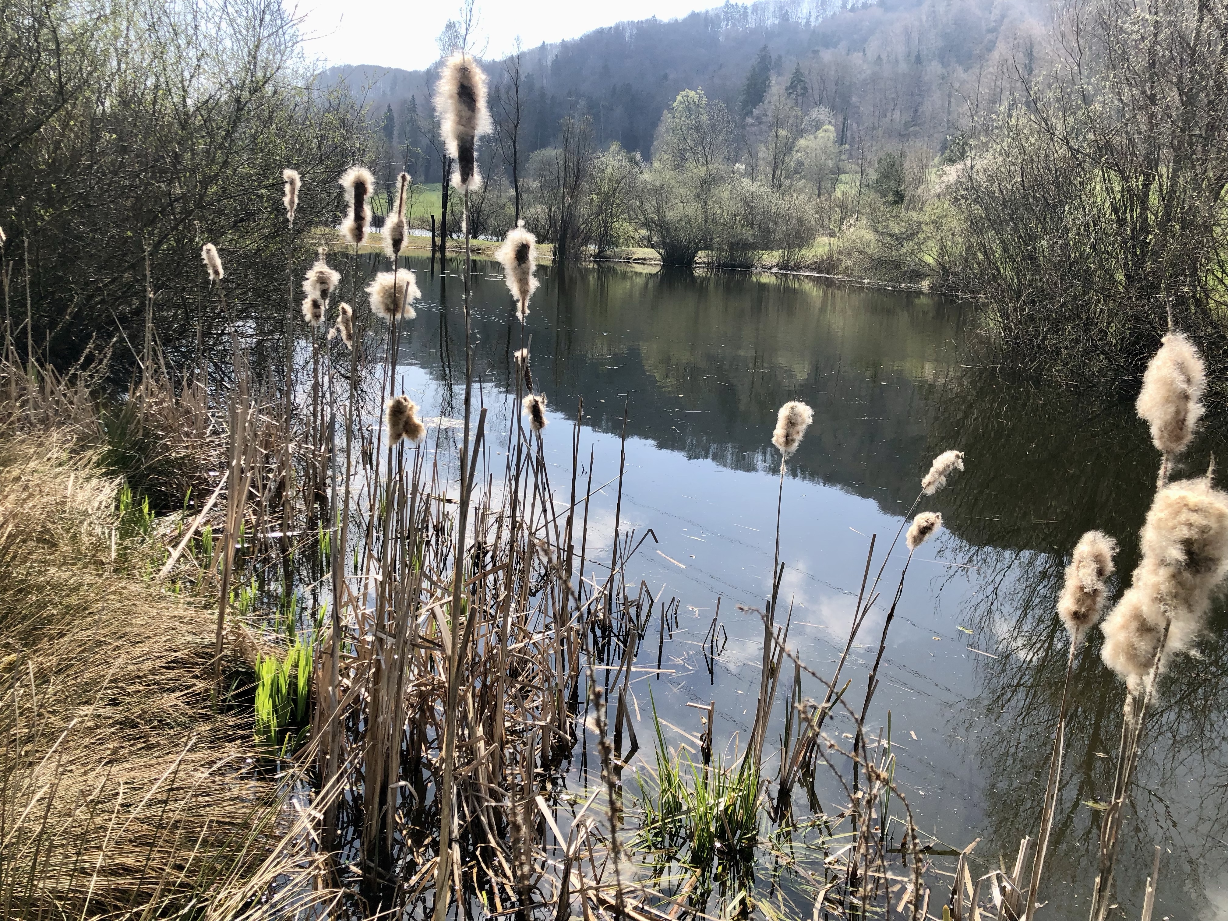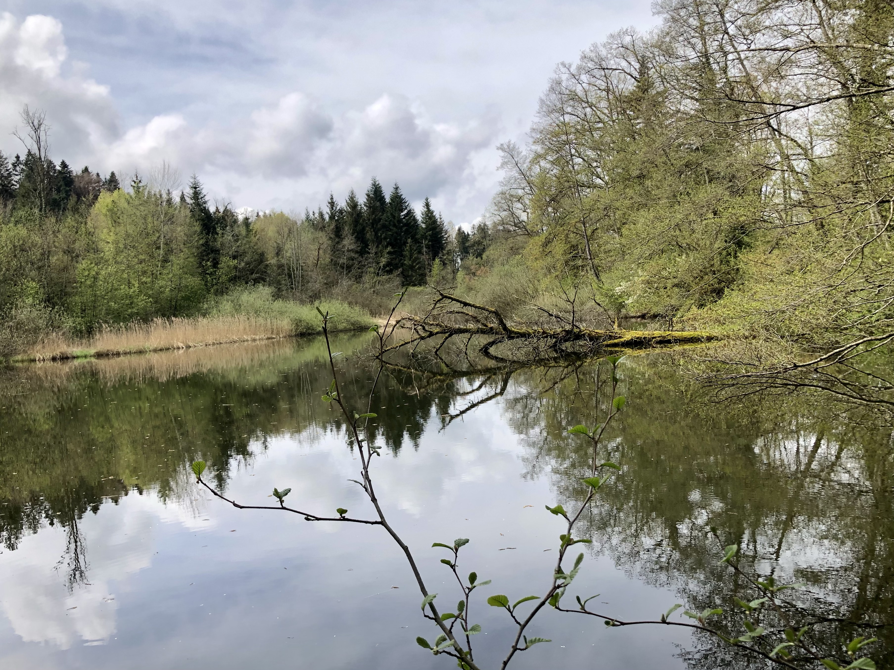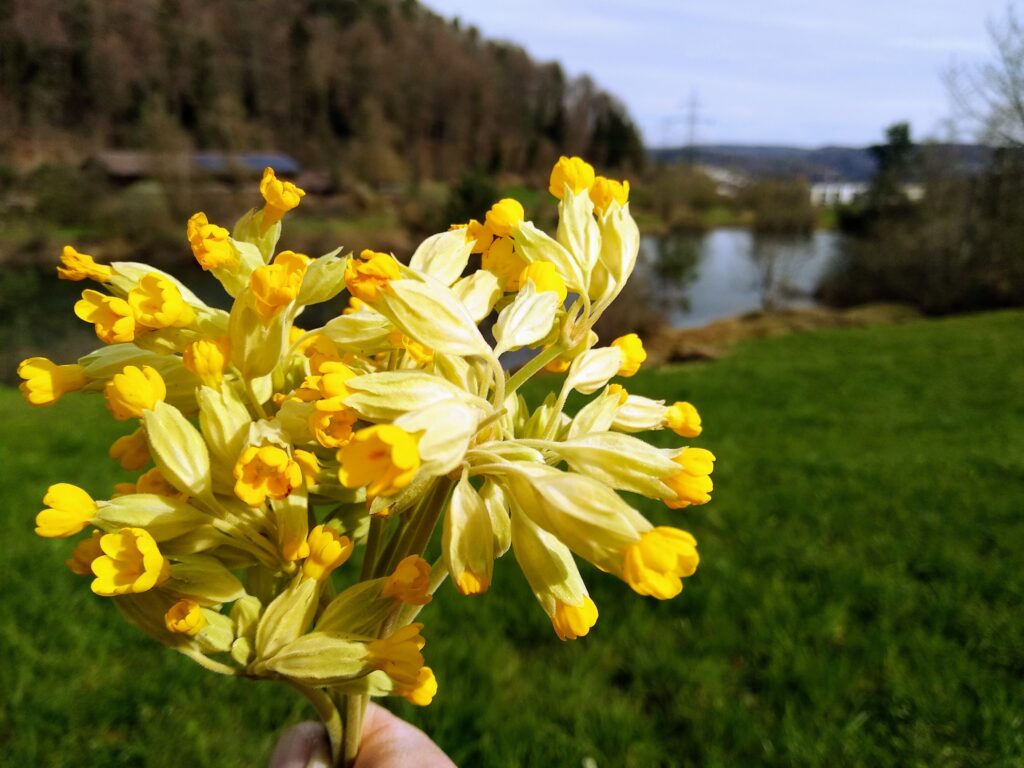 Das Sprichwort, dass der April macht, was er will, trifft bei uns zu. Das Gute daran ist, dass es endlich genug geregnet hat und die Böden getränkt sind zum Anbauen. Das unstetige Wetter machte die Planung schwierig, so auch an Ostern. Lange war nicht klar, ob die Osternester draussen oder drinnen versteckt werden mussten. Jetzt trägt die Enkelin das „Chrättli“ aus Weiden, das mein Vater für all seine Grosskinder machte, also auch der Mama unseres Schatzes. Wir hatten Glück und sogar die Sonne zeigte sich, nur ein wenig kalt war es. Eigentlich ist es schon den ganzen Monat zu kalt für mein Befinden. Das wechselhafte Wetter zauberte viel schöne Himmelsbilder. Früh übt sich, die Blumen, welche die Enkelin ausgesät hat, wachsen schon ganz schön. Immer wieder bin ich diesen Monat um den Weiher spaziert, abwechslungsweise mit einer der beiden Enkelinnen. Wenn man jetzt mit dem Fahrrad unterwegs ist, gibt es viel zu entdecken, sei das die blühenden Obstbäume oder das Erwachen der Natur mit ihren schönen Farben. Der Aprikosenbaum hat die kalten Nächte nicht gut überstanden, Aprikosen muss ich dieses Jahr wohl kaufen. Ob das schöne neue Vogelhaus, das mein Mann vom Schwiegersohn geschenkt bekam, dieses Jahr wohl bewohnt wird? Wir sind gespannt. Das blaue Band aus Vergissmeinnicht erfreut mich jedes Mal, wenn ich aus dem Haus komme aufs neue.