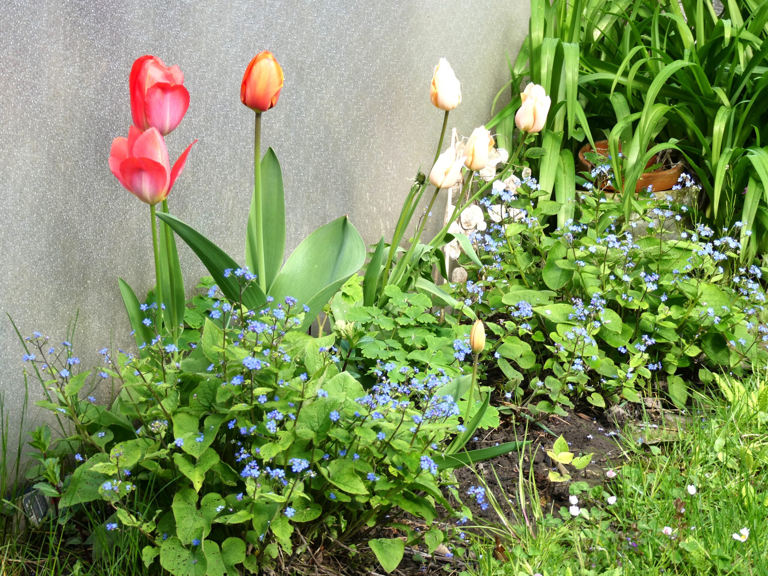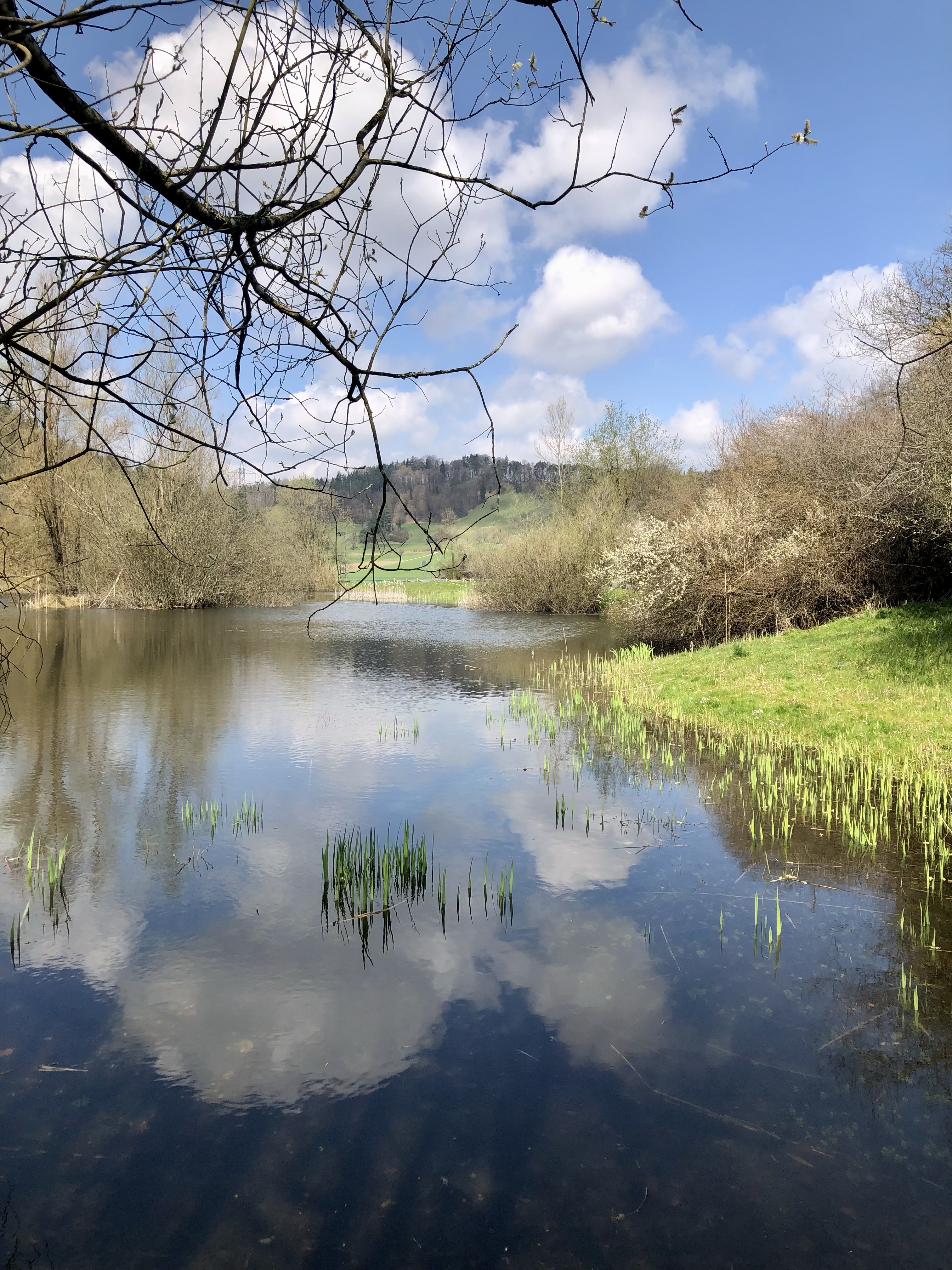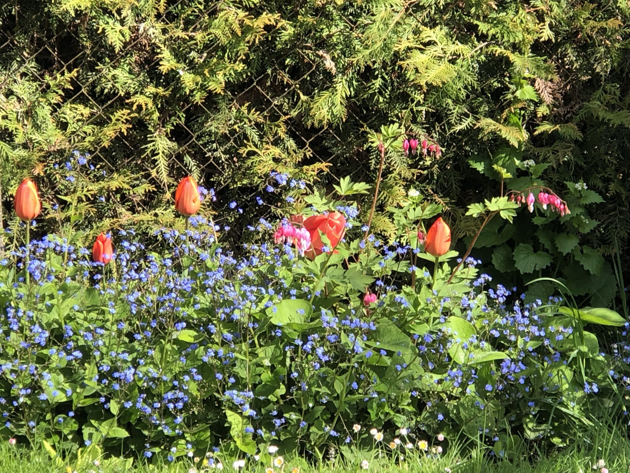 Das Sprichwort, dass der April macht, was er will, trifft bei uns zu. Das Gute daran ist, dass es endlich genug geregnet hat und die Böden getränkt sind zum Anbauen. Das unstetige Wetter machte die Planung schwierig, so auch an Ostern. Lange war nicht klar, ob die Osternester draussen oder drinnen versteckt werden mussten. Jetzt trägt die Enkelin das „Chrättli“ aus Weiden, das mein Vater für all seine Grosskinder machte, also auch der Mama unseres Schatzes. Wir hatten Glück und sogar die Sonne zeigte sich, nur ein wenig kalt war es. Eigentlich ist es schon den ganzen Monat zu kalt für mein Befinden. Das wechselhafte Wetter zauberte viel schöne Himmelsbilder. Früh übt sich, die Blumen, welche die Enkelin ausgesät hat, wachsen schon ganz schön. Immer wieder bin ich diesen Monat um den Weiher spaziert, abwechslungsweise mit einer der beiden Enkelinnen. Wenn man jetzt mit dem Fahrrad unterwegs ist, gibt es viel zu entdecken, sei das die blühenden Obstbäume oder das Erwachen der Natur mit ihren schönen Farben. Der Aprikosenbaum hat die kalten Nächte nicht gut überstanden, Aprikosen muss ich dieses Jahr wohl kaufen. Ob das schöne neue Vogelhaus, das mein Mann vom Schwiegersohn geschenkt bekam, dieses Jahr wohl bewohnt wird? Wir sind gespannt. Das blaue Band aus Vergissmeinnicht erfreut mich jedes Mal, wenn ich aus dem Haus komme aufs neue.