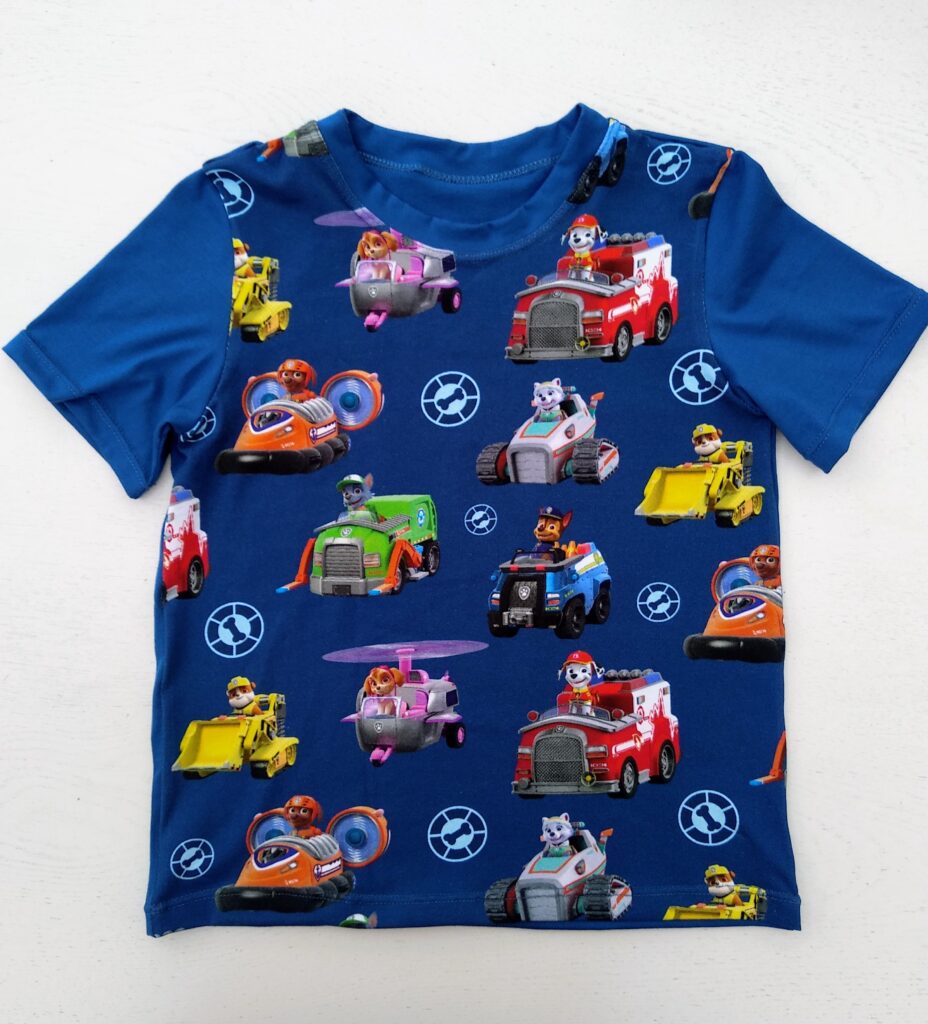Eine freudenstrahlende Enkelin kam mir entgegen als sie das T-Shirt mit ihren Lieblingsfiguren drauf entdeckte. Sofort wollte sie die Leggins und das T-Shirt anziehen und zog es nicht mehr aus. Das ist ein super Kompliment und ich freute mich mit ihr. Genau für solche Glücksmomente nähe ich so gerne für die Kleinen. Es entstanden dieses Frühjahr noch weitere Shirts und Hosen. Ich bin noch am Ausprobieren, welcher Schnitt am vorteilhaftesten ist für kurze Hosen. Ich hoffe doch sehr, dass es bald wärmer wird. Für mich nähte ich auch ein neues T-Shirt in Frühlingsfarben. Für den Patensohn der Tochter, der die gleichen Figuren wie unsere Enkelin liebt, nähte ich ein T-Shirt für den Sommer. Es sind alles Schnitte aus verschiedenen Ottobre Hefte.