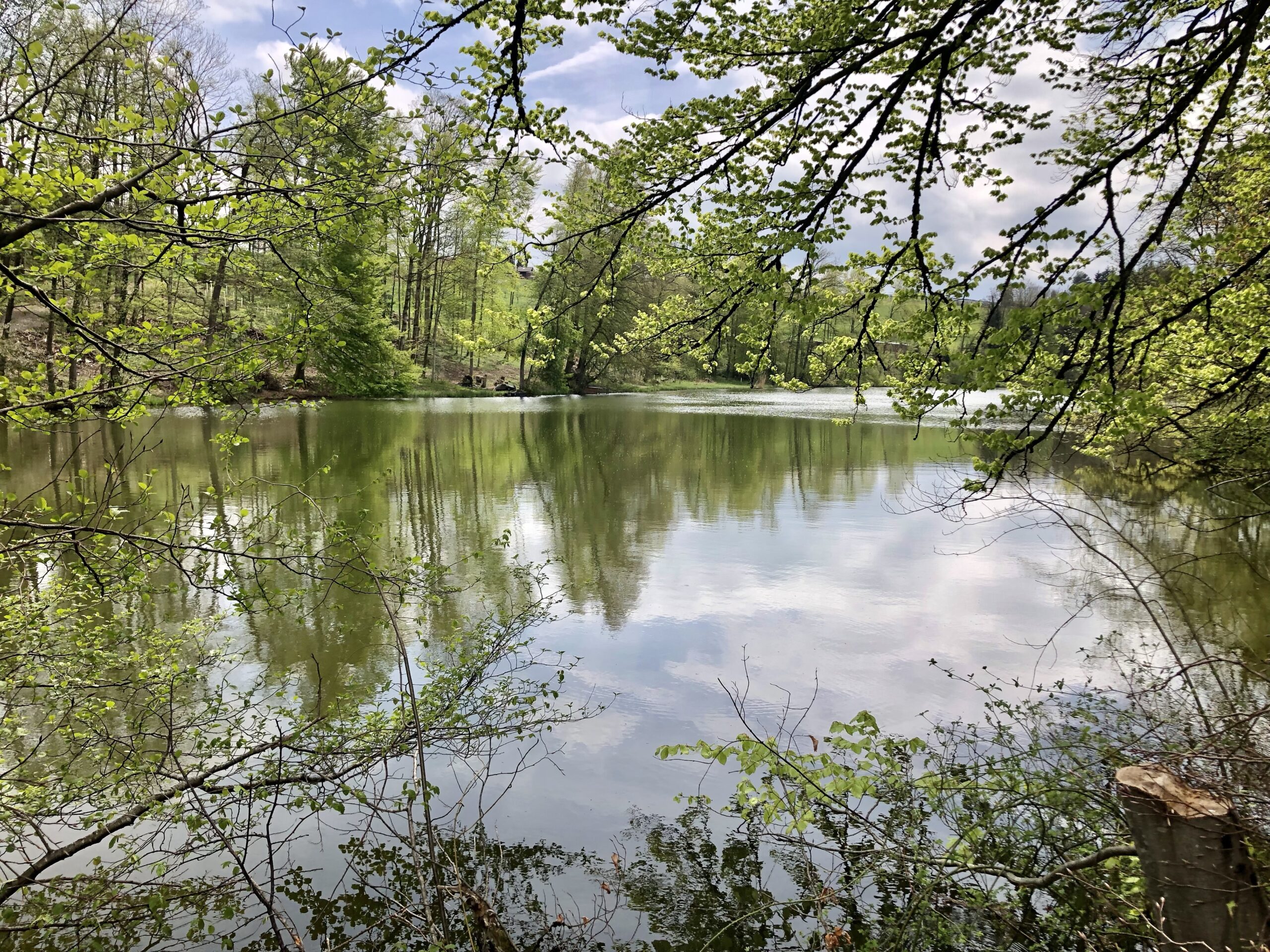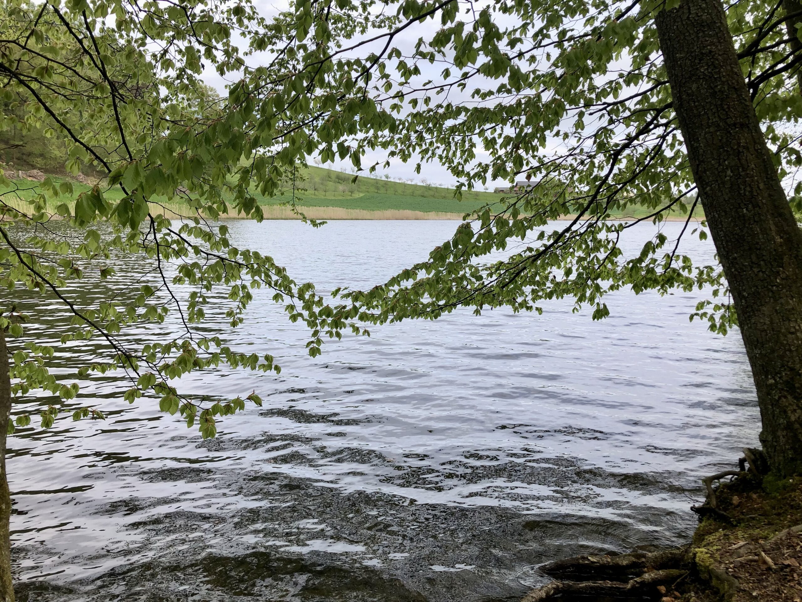 Der Himmel war zwar bedeckt, aber die Stimmung um die Weiher war so schön, mit dem kräuselnden Wasser und dem schönen Frühlingsgrün am Ufer.